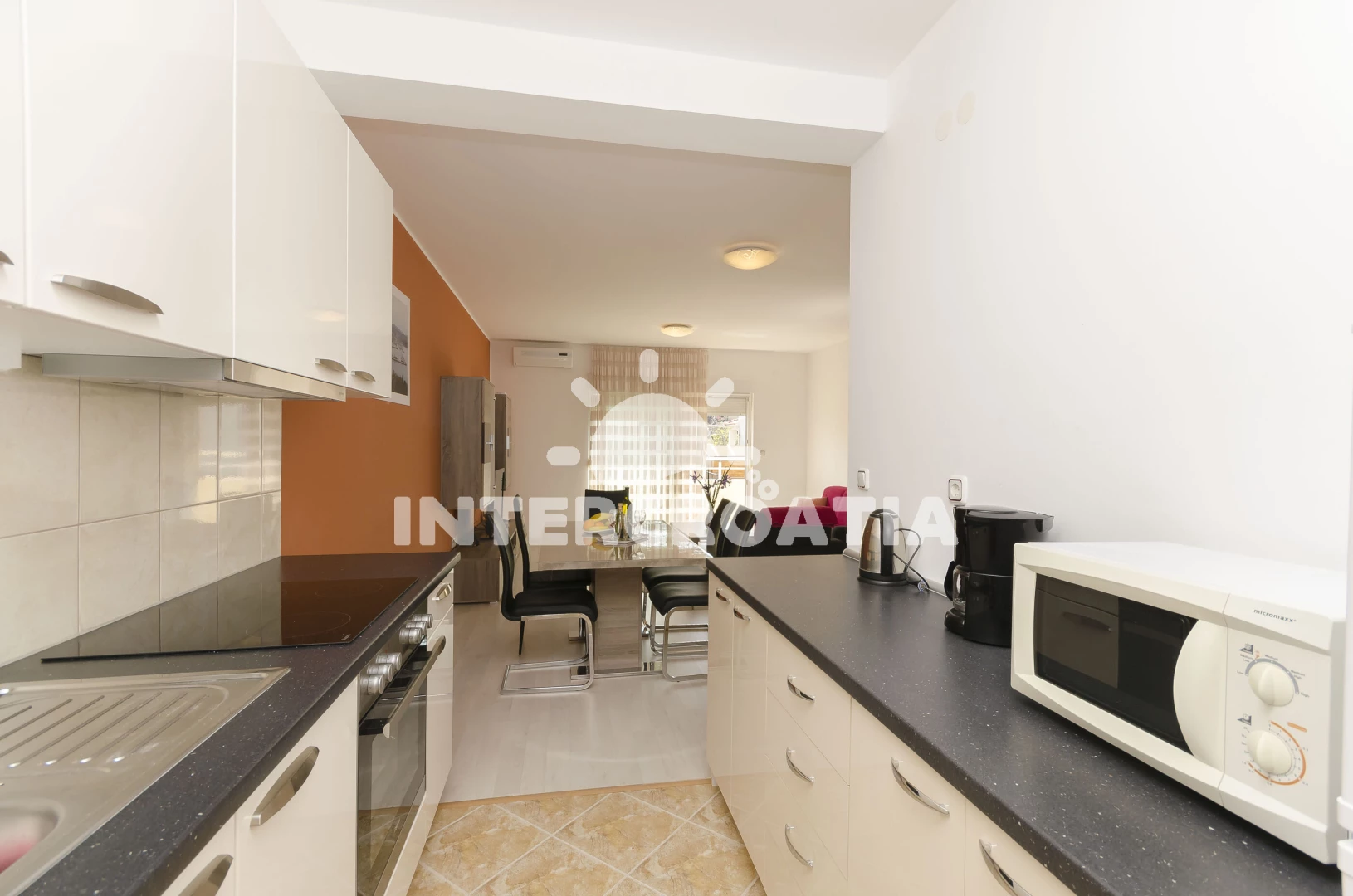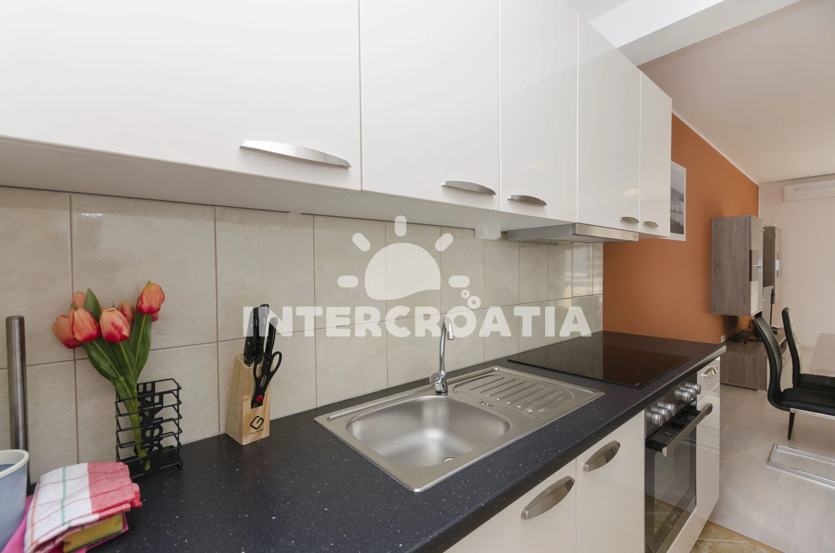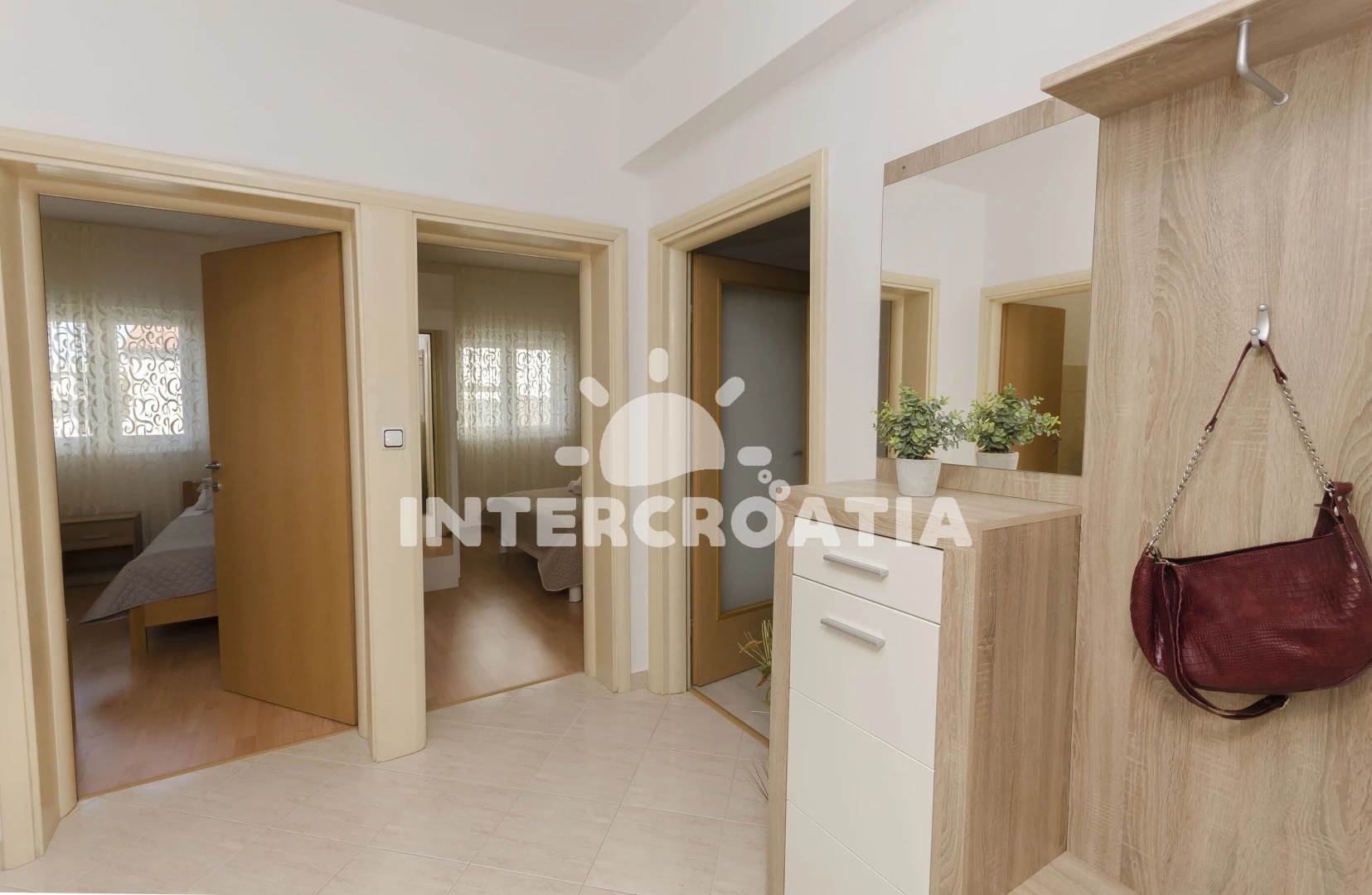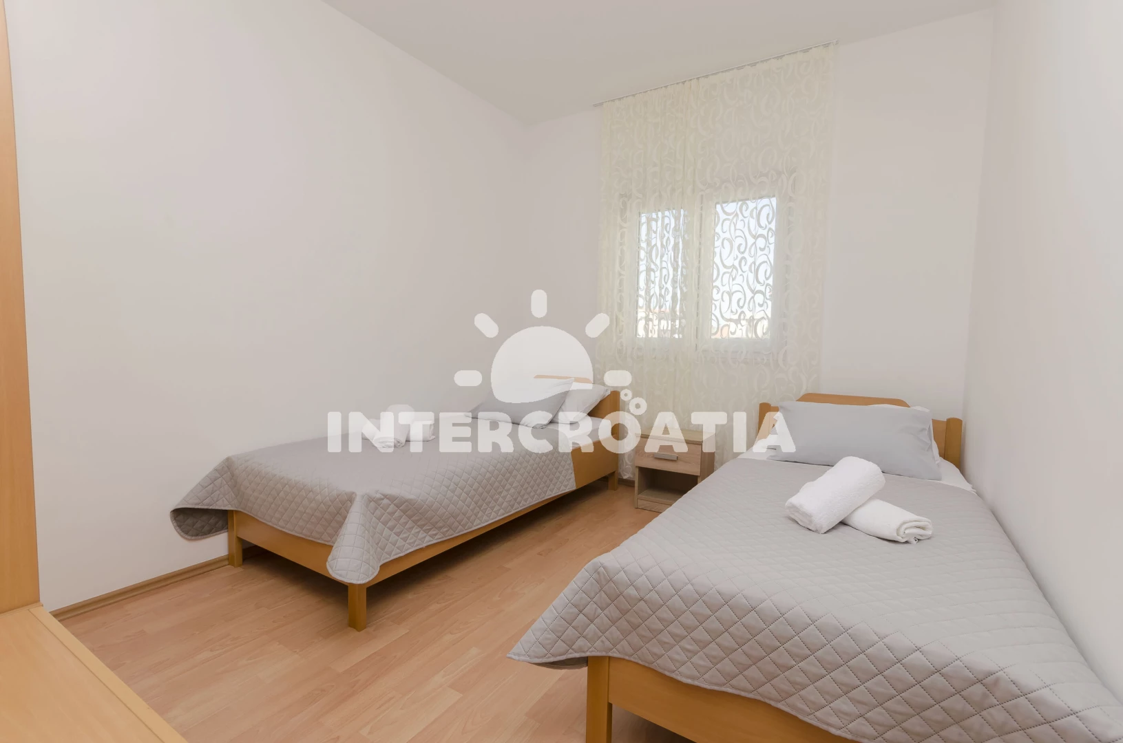 Vzdálenosti: Moře 800 m, pláž 900 m (oblázková a betonové desky), restaurace 300 m, lékárna 600 m, supermarket 600 m, centrum 700 m, bar 750 m, pošta 780 m, ambulance 800 m, banka 800 m, marina 990 m, čerpací stanice 1,2 km, park Plitvice 25 km, letiště (Zadar) 65 km, trajekt (Split) 85 km,