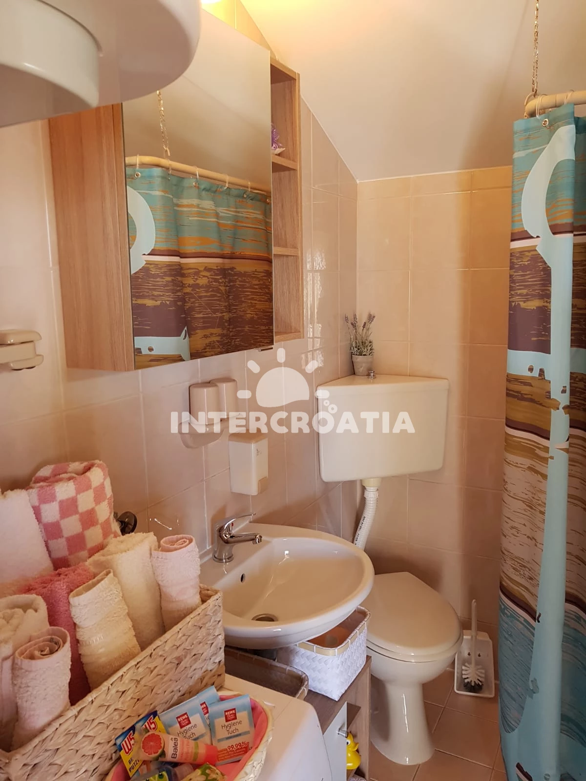Vzdálenosti: Moře 700 m, pláž 700 m (skalnatá, oblázková a betonové desky), restaurace 200 m, bar 200 m, supermarket 300 m, čerpací stanice 300 m, veřejná doprava 300 m, marina 650 m, ambulance 700 m, lékárna 750 m, banka 800 m, pošta 800 m, směnárna 800 m, centrum 800 m, trajekt (Šibenik) 15 km, letiště (Zadar) 60 km,
