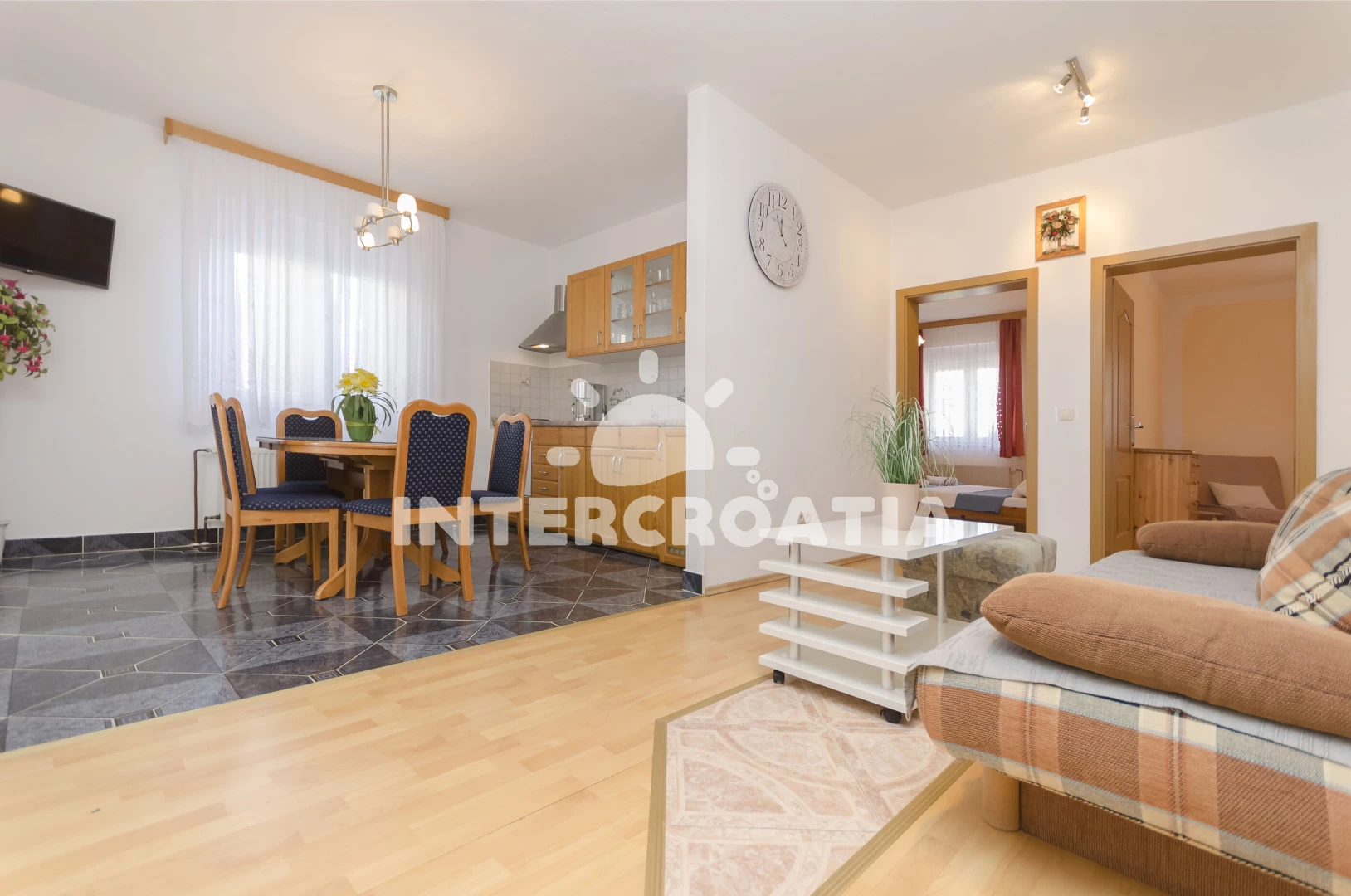 Vzdálenosti: Moře 500 m, pláž 600 m (oblázková a betonové desky), restaurace 300 m, supermarket 400 m, veřejná doprava 400 m, bar 400 m, centrum 1,4 km, směnárna 1,4 km, lékárna 1,4 km, ambulance 1,4 km, banka 1,4 km, pošta 1,5 km, trajekt (Šibenik) 13 km, park Plitvice 22 km, letiště (Zadar) 58 km,