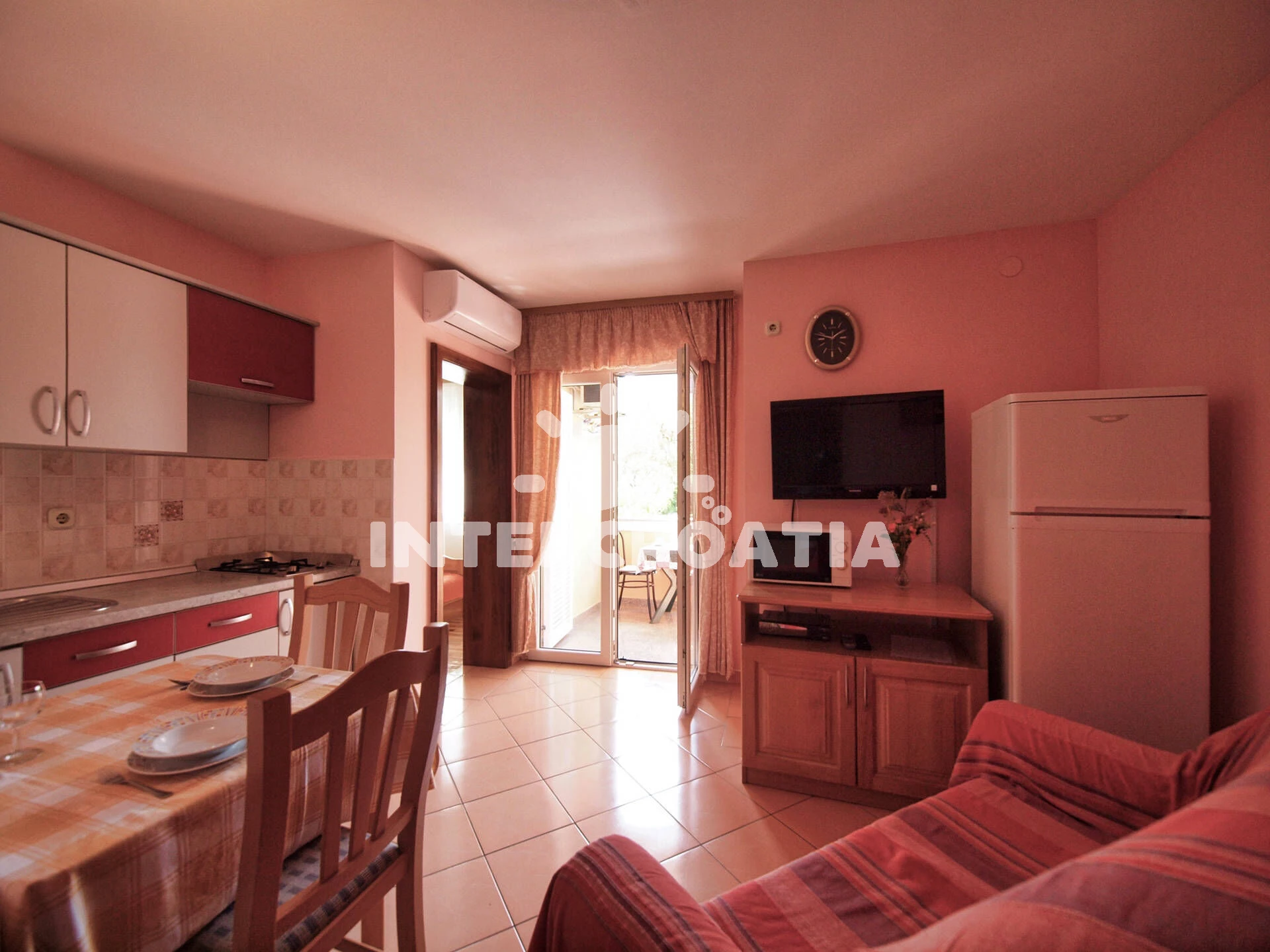 Vzdálenosti: Moře 30 m, pláž 30 m (oblázková a betonové desky), bar 100 m, supermarket 100 m, restaurace 100 m, tenisové kurty 150 m, potápění 150 m, veřejná doprava 200 m, směnárna 300 m, čerpací stanice 800 m, diskotéka 900 m, půjčovna kol 1 km, centrum 1 km, pošta 1,2 km, banka 1,2 km, ambulance 1,2 km, lékárna 1,2 km, marina 1,2 km, letiště (Zadar) 60,0 km,
