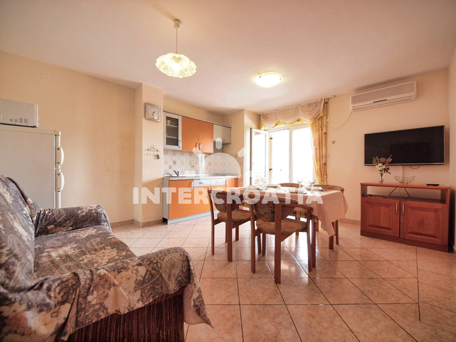 Vzdálenosti: Moře 30 m, pláž 30 m (oblázková a betonové desky), bar 100 m, supermarket 100 m, restaurace 100 m, tenisové kurty 150 m, potápění 150 m, veřejná doprava 200 m, směnárna 300 m, čerpací stanice 800 m, diskotéka 900 m, půjčovna kol 1 km, centrum 1 km, pošta 1,2 km, banka 1,2 km, ambulance 1,2 km, lékárna 1,2 km, marina 1,2 km, letiště (Zadar) 60,0 km,
