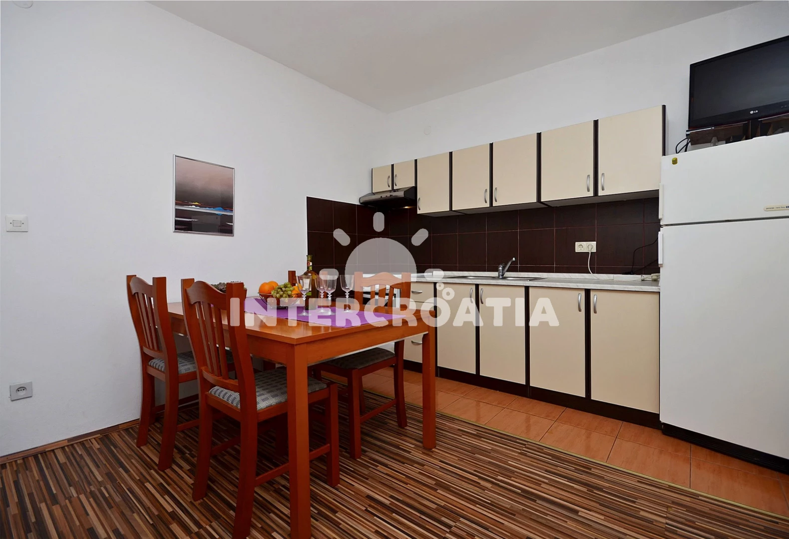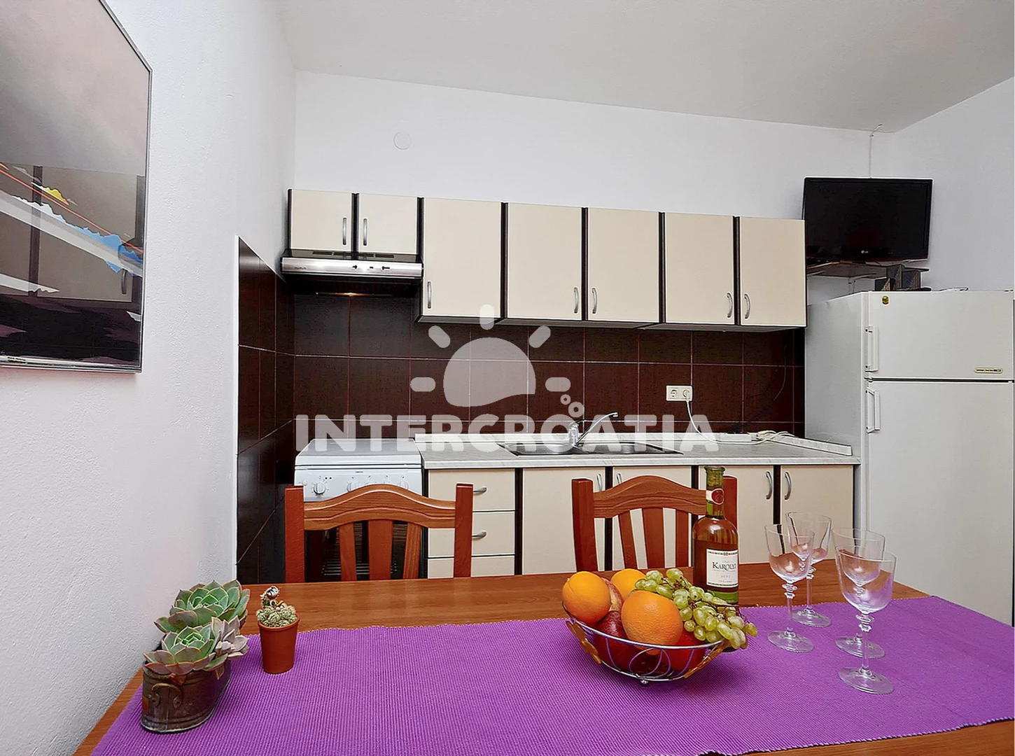 Vzdálenosti: restaurace 0 m, Moře 10 m, pláž 20 m (oblázková a větší kamení), bar 10 m, supermarket 200 m, tenisové kurty 350 m, centrum 800 m, půjčovna motorových člunů 800 m, pošta 1 km, banka 1,2 km, lékárna 1,5 km, ambulance 1,5 km, diskotéka 1,5 km, letiště (Zadar) 65 km, trajekt (Split) 84,9 km,