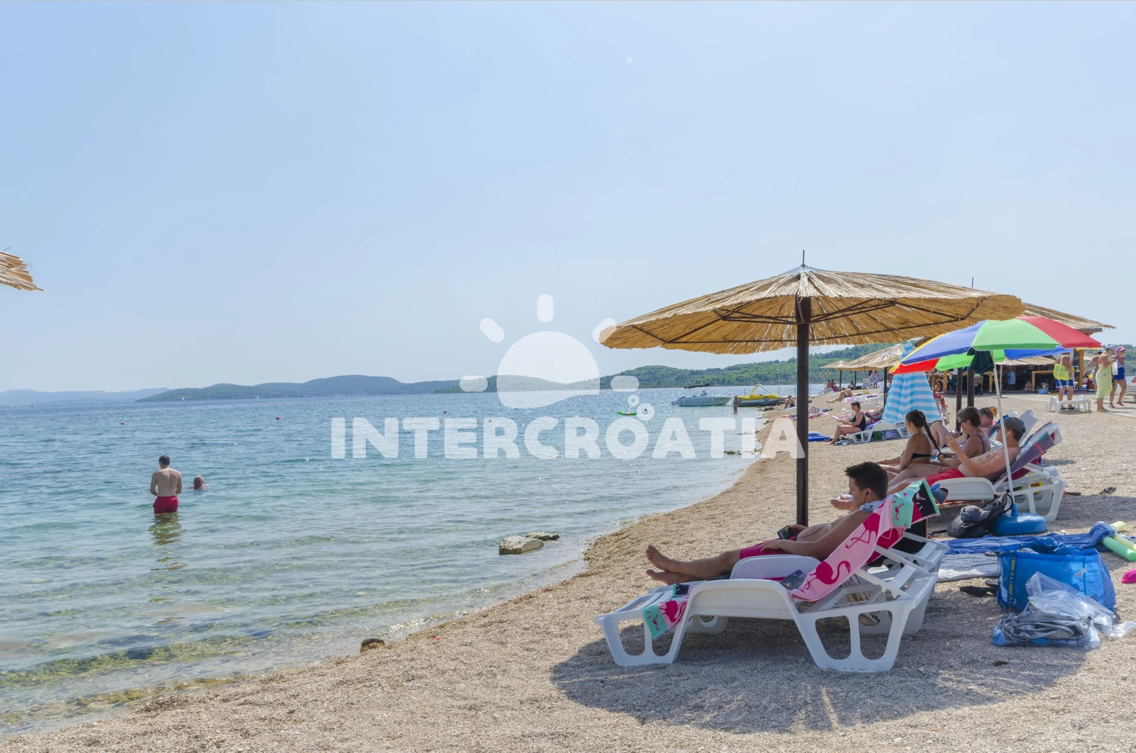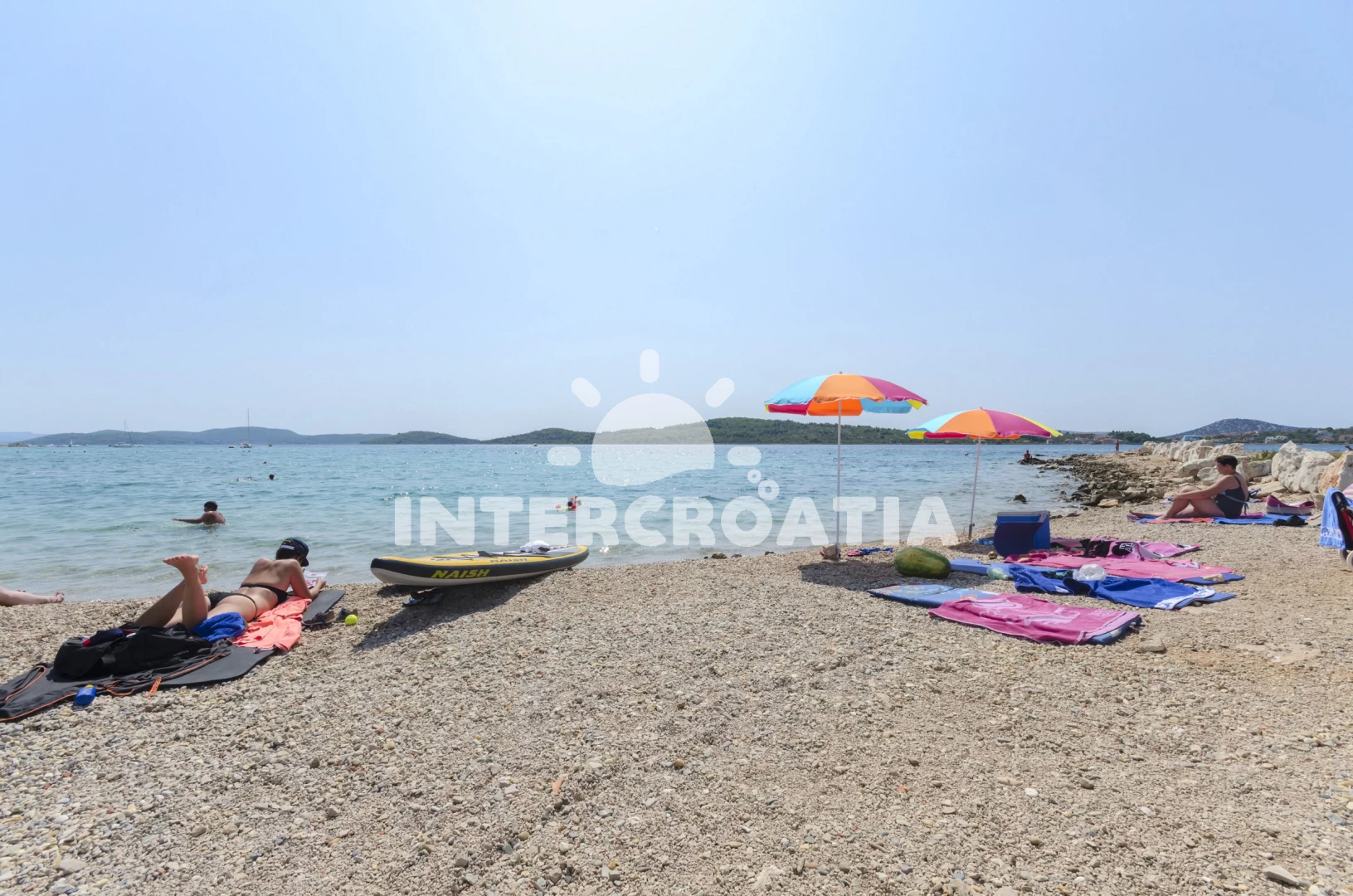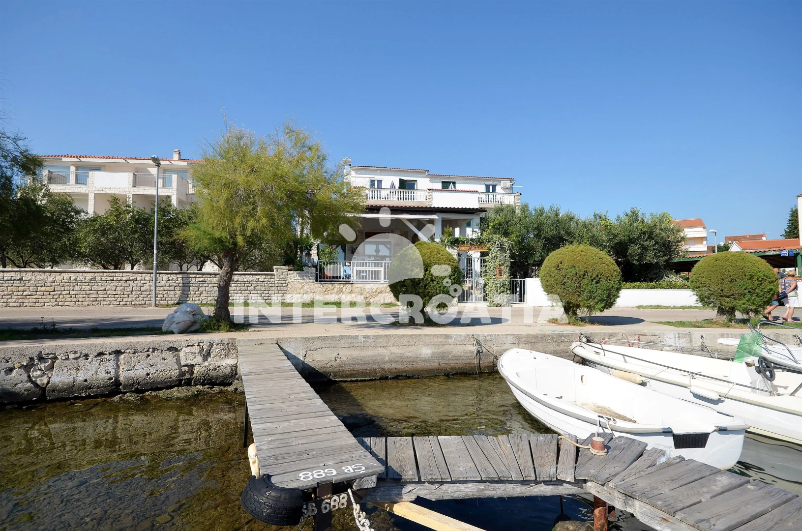 Vzdálenosti: restaurace 0 m, Moře 10 m, pláž 20 m (oblázková a větší kamení), bar 10 m, supermarket 200 m, tenisové kurty 350 m, centrum 800 m, půjčovna motorových člunů 800 m, pošta 1 km, banka 1,2 km, lékárna 1,5 km, ambulance 1,5 km, diskotéka 1,5 km, letiště (Zadar) 65 km, trajekt (Split) 84,9 km,
