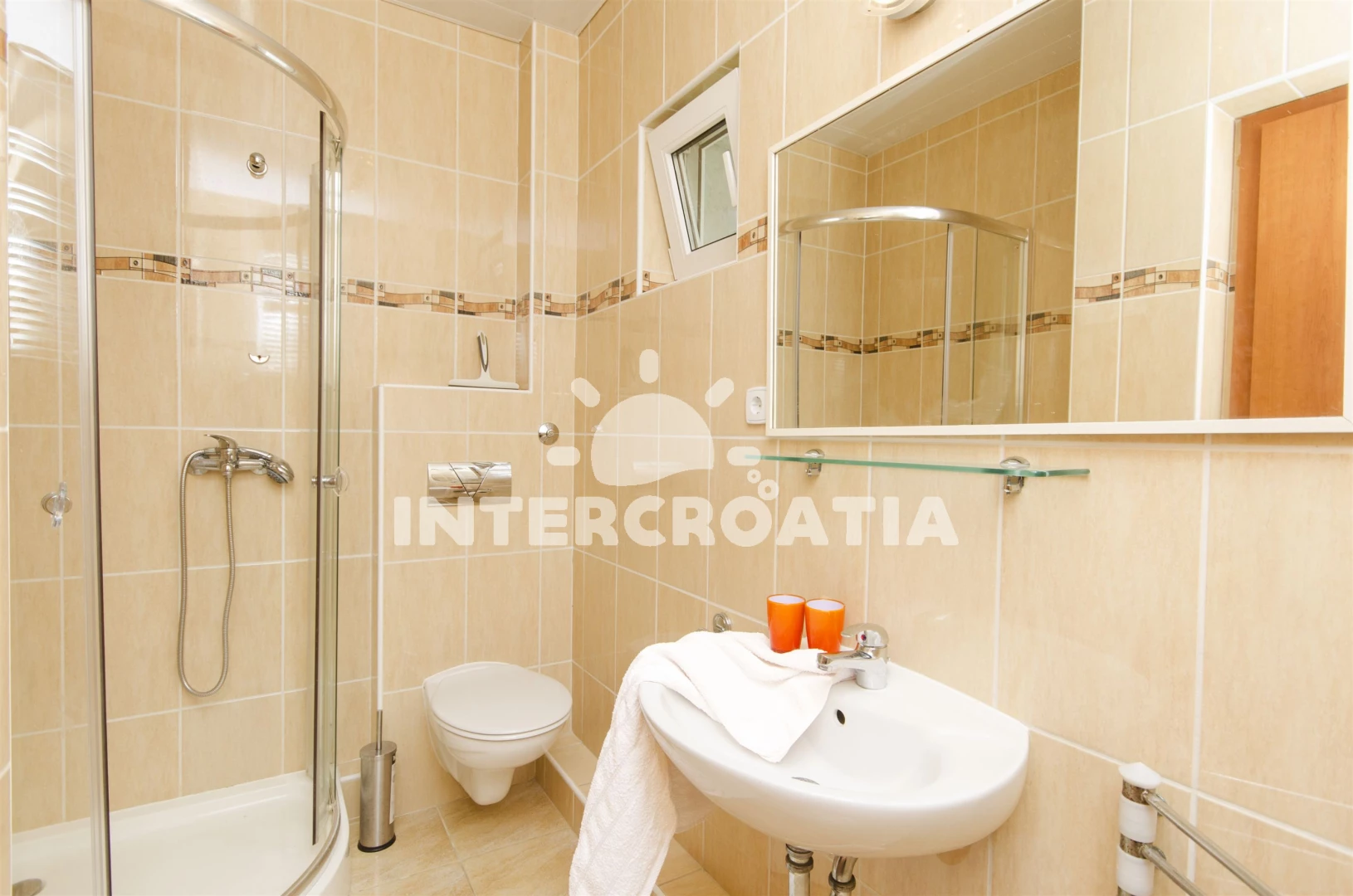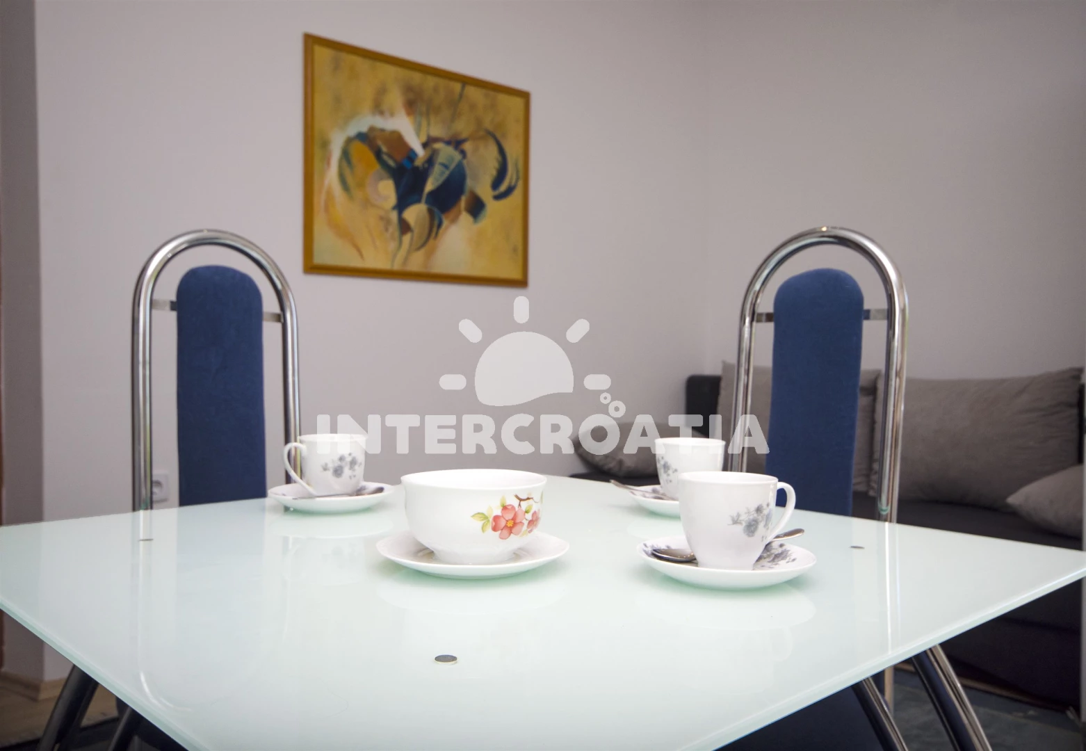 Vzdálenosti: Moře 200 m, pláž 290 m (písčitá, skalnatá, oblázková, větší kamení a betonové desky), centrum 15 m, bar 30 m, restaurace 30 m, supermarket 30 m, banka 320 m, pošta 320 m, lékárna 450 m, ambulance 500 m, marina 600 m, park Plitvice 25 km, letiště (Zadar) 65,0 km,