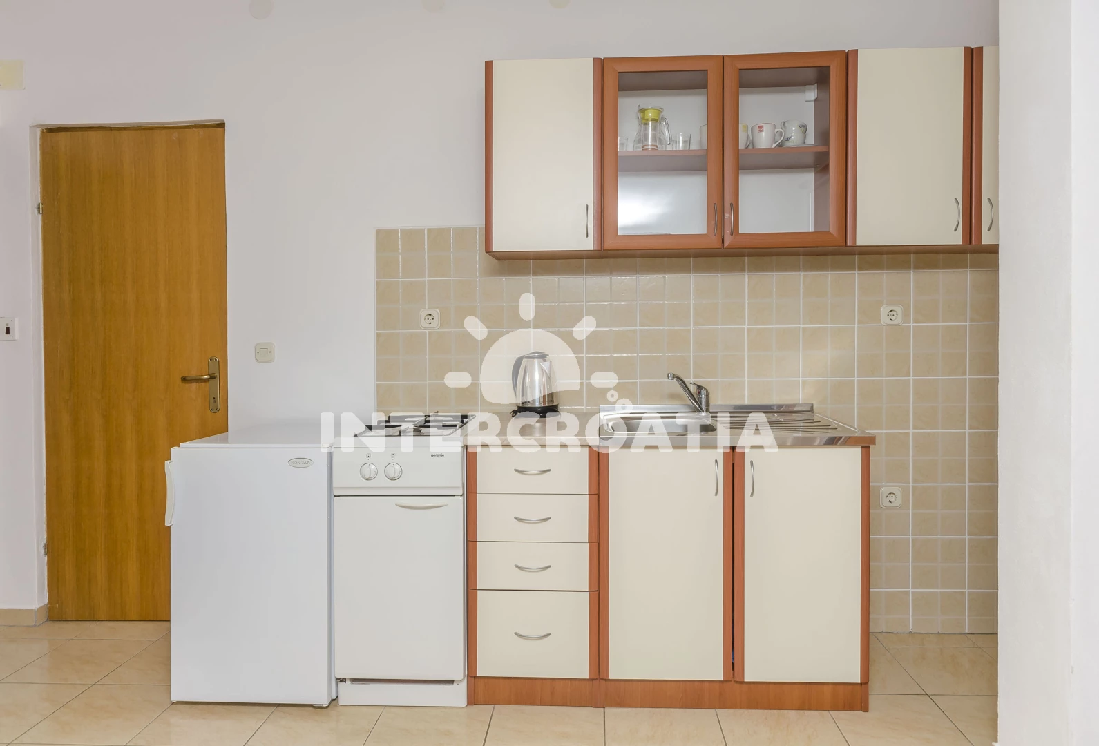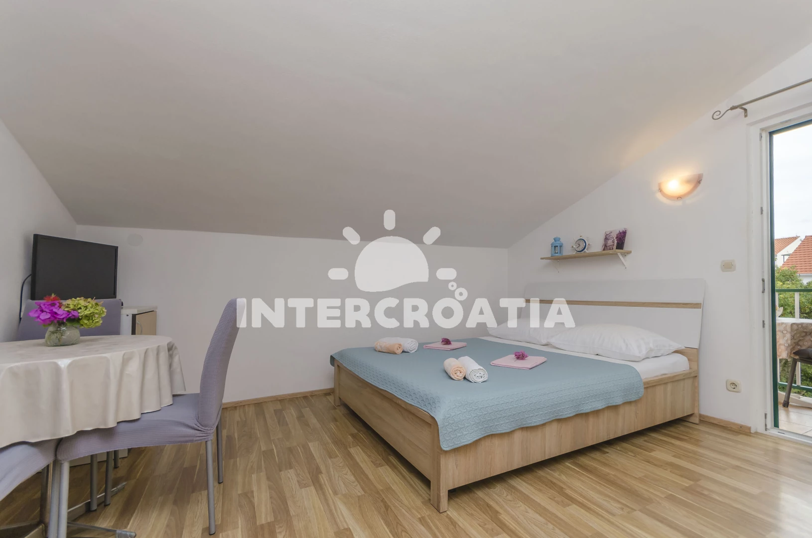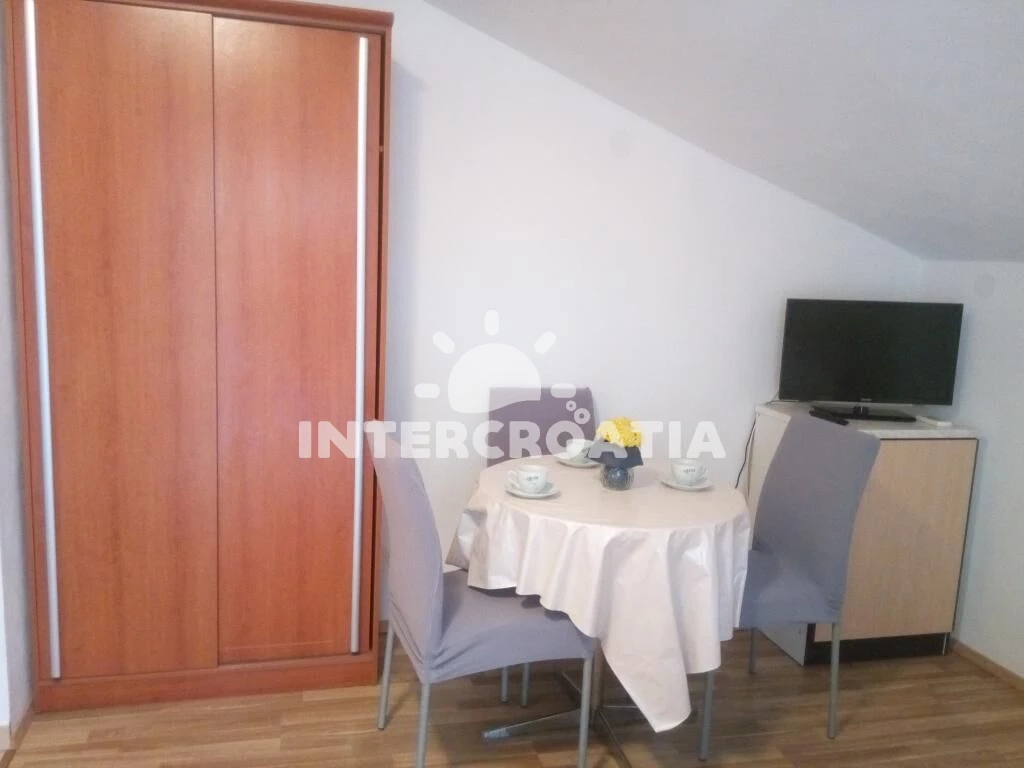 Vzdálenosti: Moře 650 m, pláž 700 m (oblázková a betonové desky), supermarket 450 m, veřejná doprava 500 m, restaurace 500 m, čerpací stanice 660 m, půjčovna kol 700 m, tenisové kurty 730 m, směnárna 900 m, lékárna 1,1 km, ambulance 1,1 km, marina 1,1 km, centrum 1,3 km, banka 1,4 km, diskotéka 1,4 km, park Plitvice 23 km,