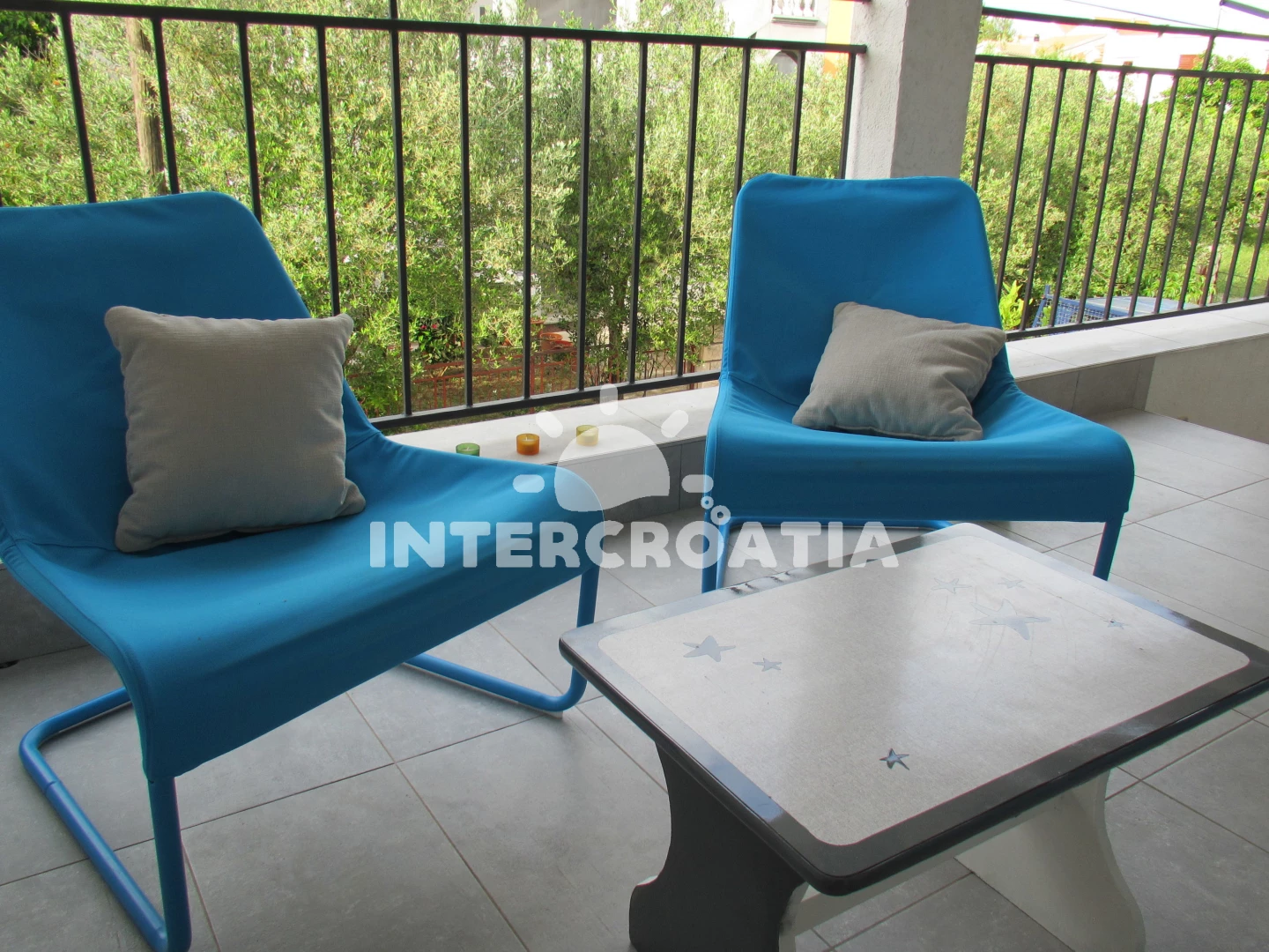 Vzdálenosti: Moře 500 m, pláž 600 m (oblázková a betonové desky), čerpací stanice 300 m, potápění 300 m, supermarket 300 m, veřejná doprava 400 m, banka 400 m, směnárna 400 m, lékárna 400 m, ambulance 400 m, půjčovna kol 400 m, bar 500 m, půjčovna motorových člunů 500 m, restaurace 500 m, diskotéka 600 m, marina 700 m, pošta 700 m, tenisové kurty 700 m, centrum 700 m, kotviště pro čluny 700 m, muzeum 9 km, park Plitvice 16 km,