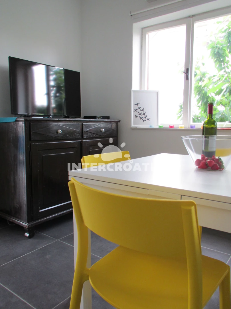 Apartmán se nachází 600 m od moře a pláže. Pláž je oblázková a betonové desky. U objektu je k dispozici společná zahrada s posezením a grilem. Parkování je před domem.
