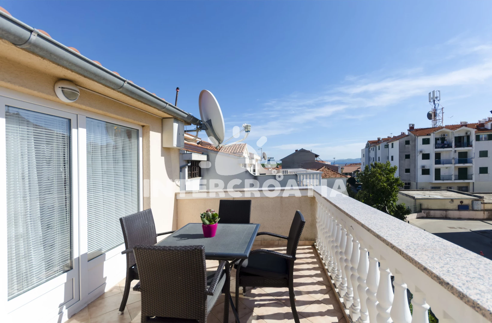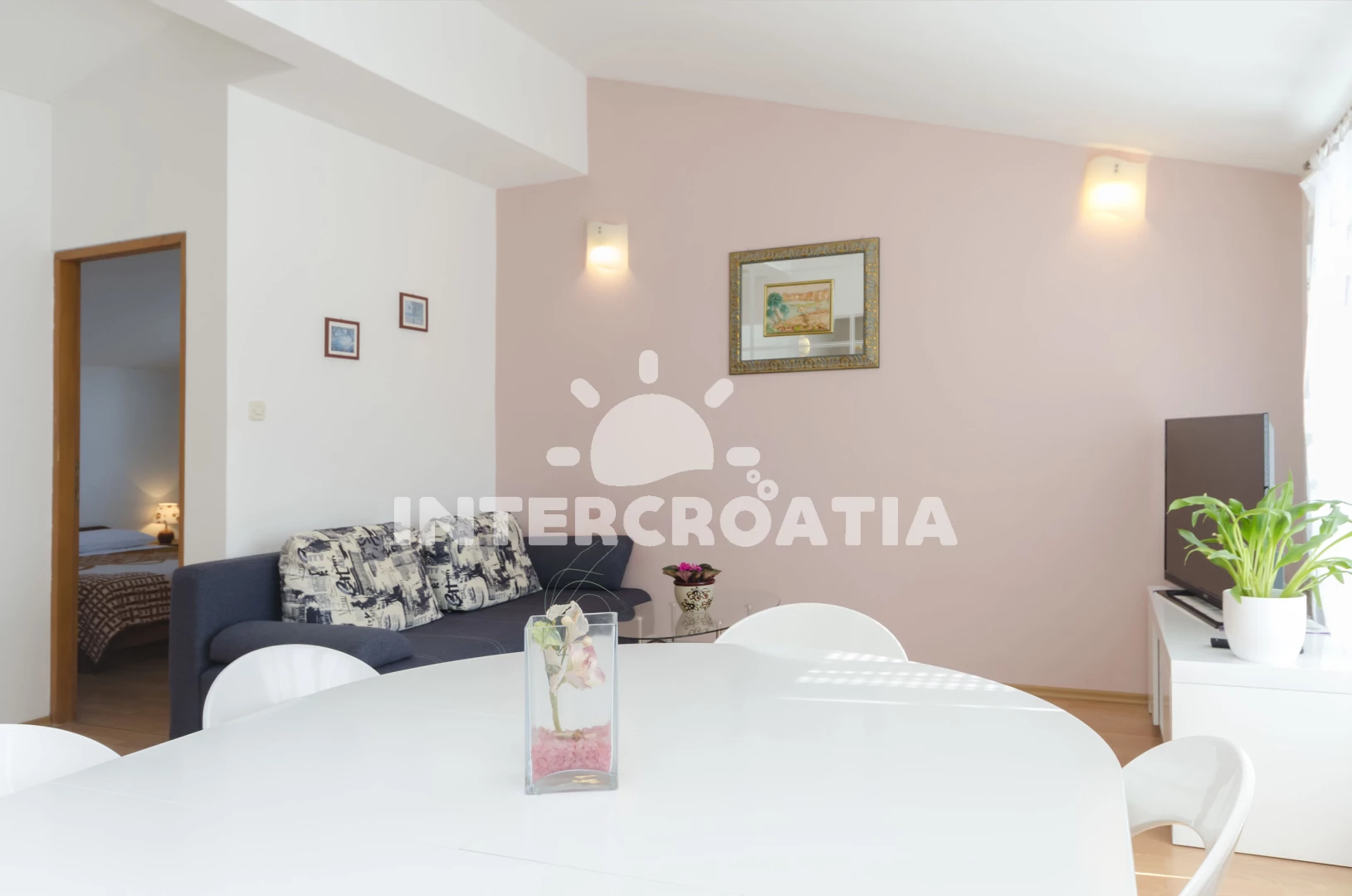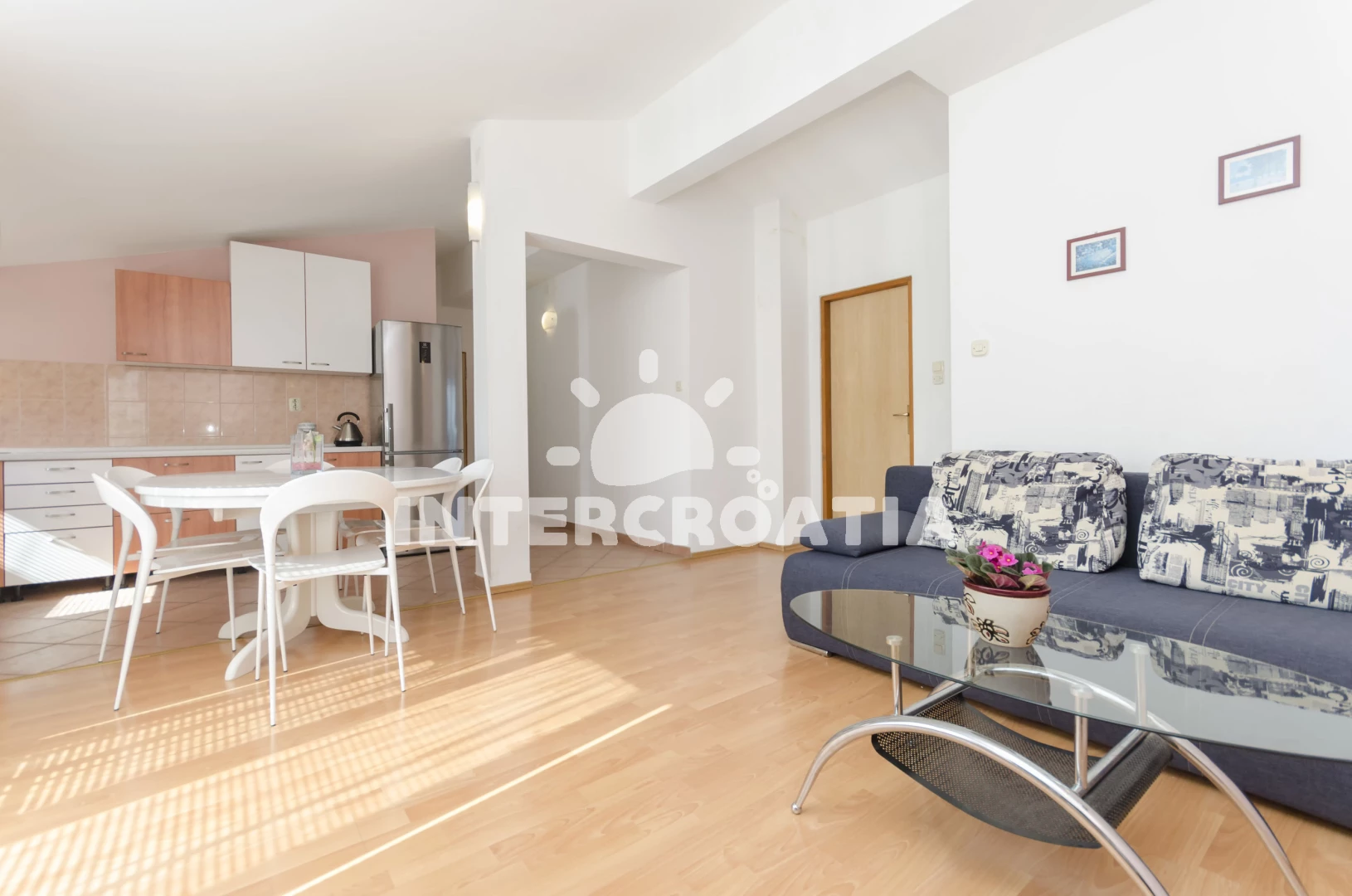 Vzdálenosti: Moře 370 m, pláž 750 m (oblázková a betonové desky), supermarket 200 m, restaurace 280 m, centrum 380 m, bar 500 m, lékárna 550 m, směnárna 550 m, banka 550 m, pošta 550 m, ambulance 550 m, veřejná doprava 600 m, park Plitvice 25 km, letiště (Zadar) 65 km,