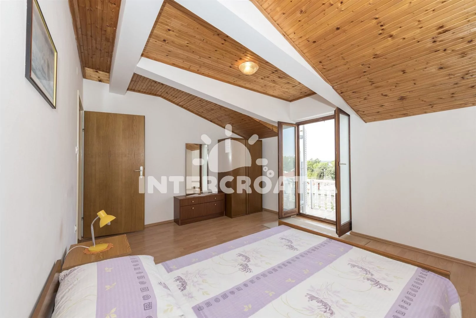 Dvoupatrový apartmánový dům s balkonem, výhledem na moře a poblíž pěkné oblázkové pláže.
