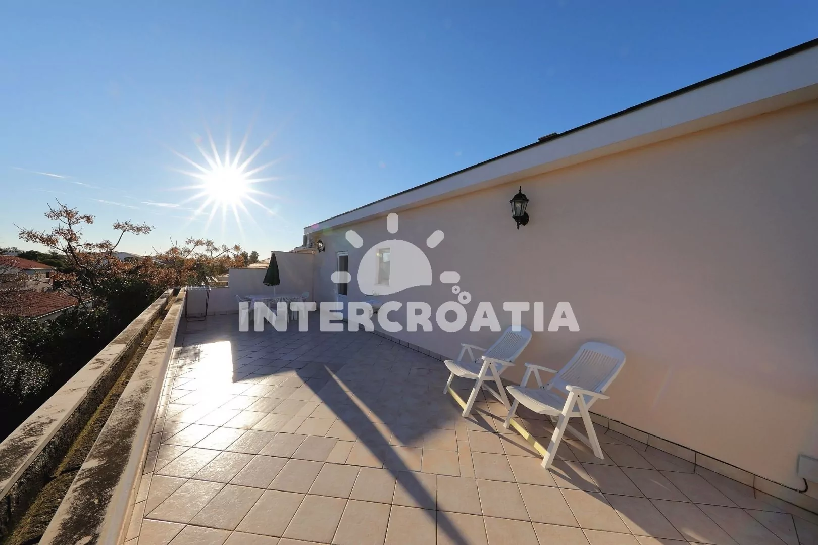 Dvoupatrový apartmánový dům se zahradou, grilem, nádherným výhledem na moře a pár kroků od pláže. Apartmány s lodžiemi a venkovním posezením. Parkovací místa u objektu.