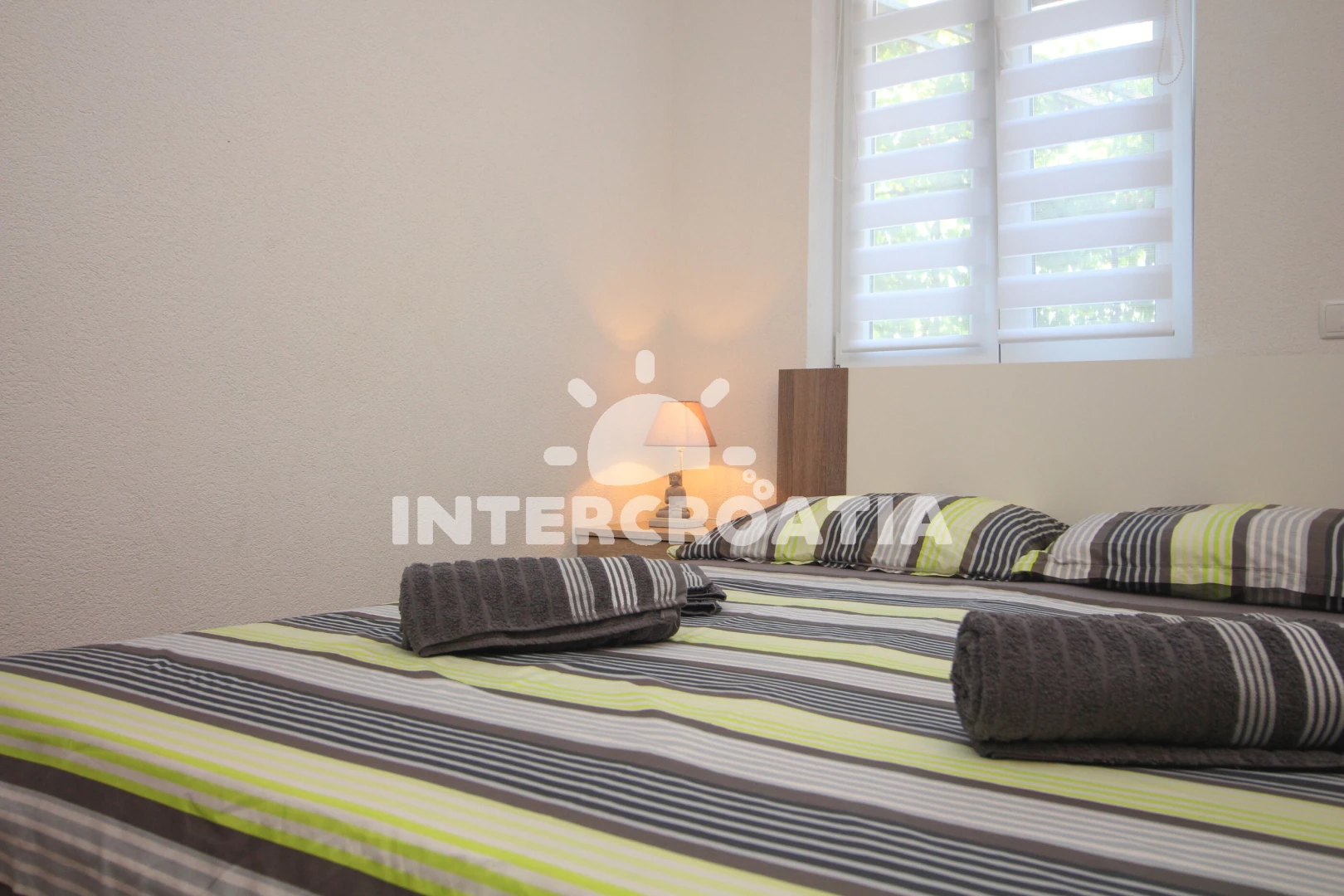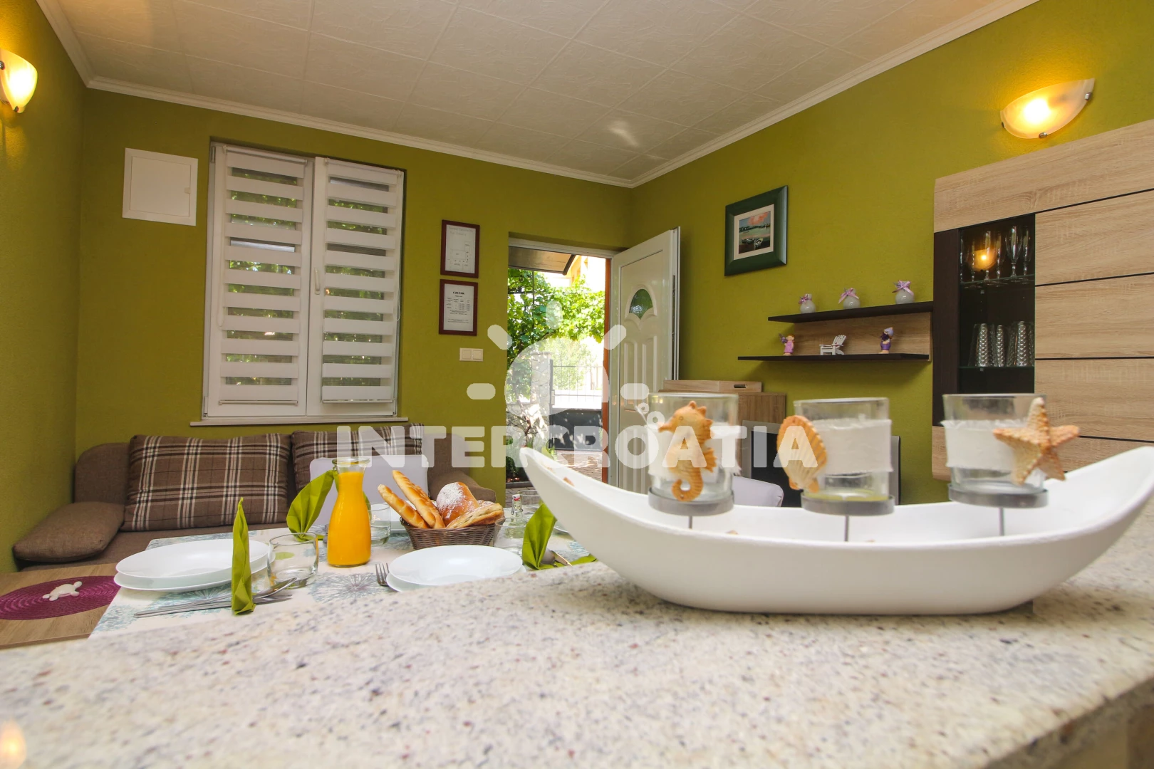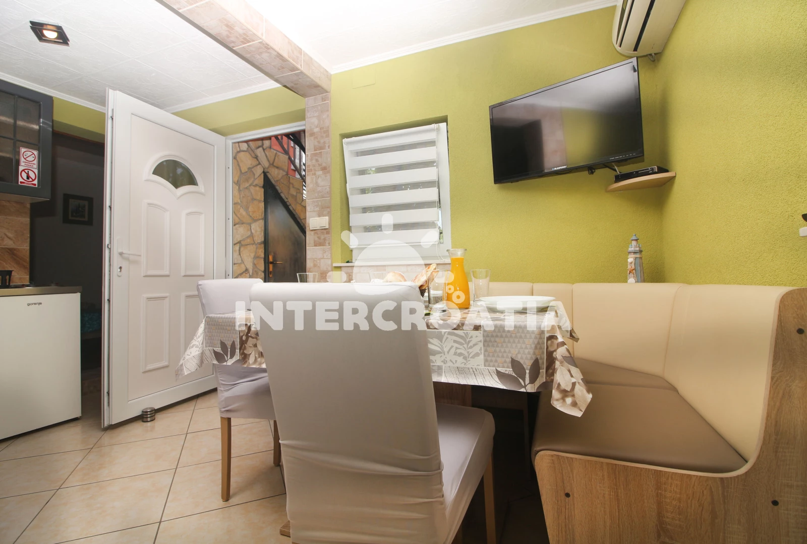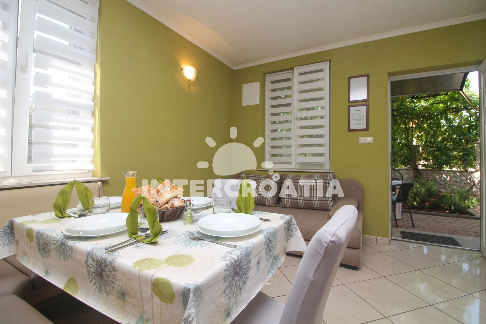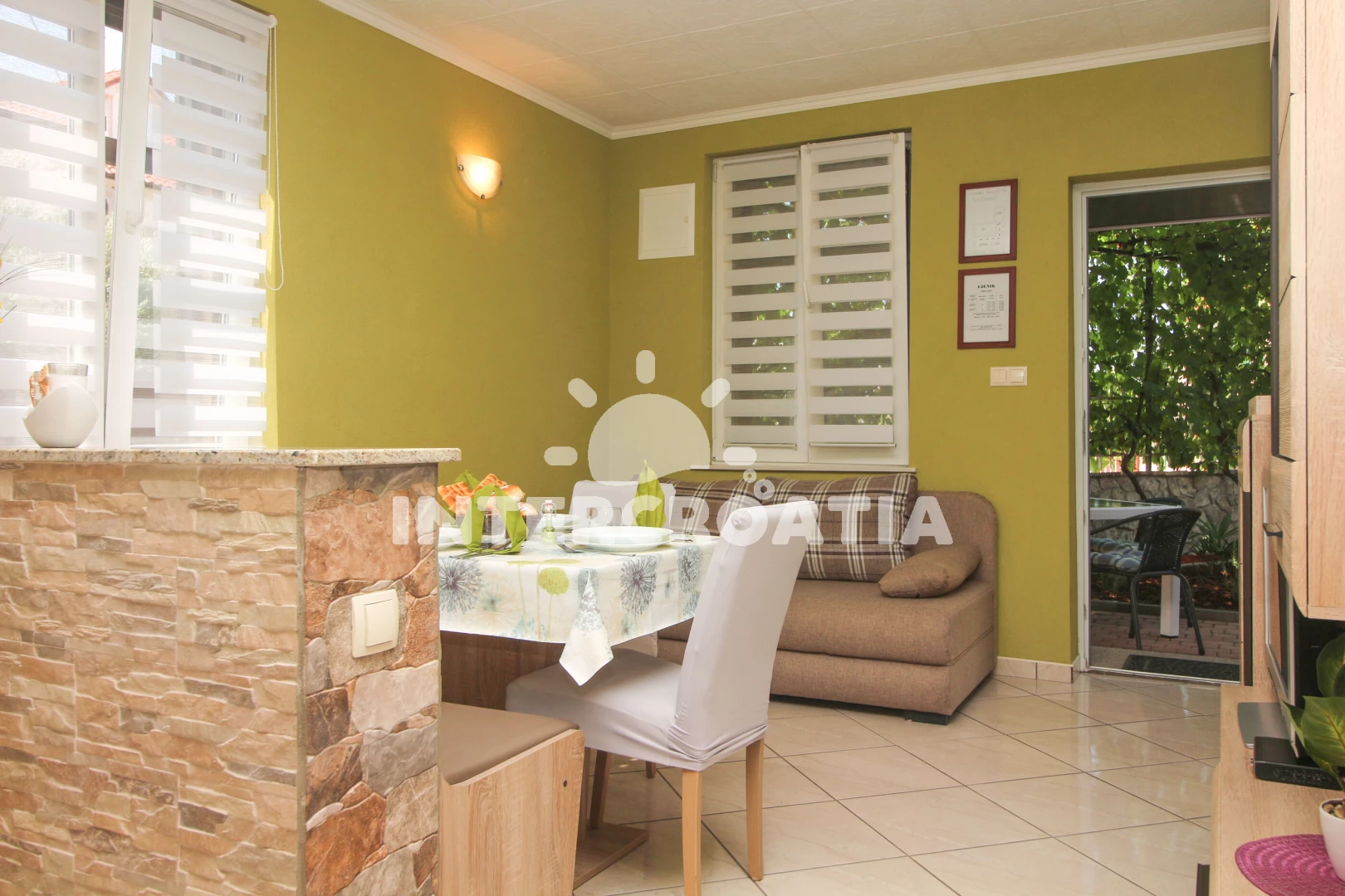 Apartmán se nachází 450 m od moře a pláže. Pláž je oblázková a betonové desky. U objektu je k dispozici společná zahrada s posezením a grilem. Parkování je před domem.