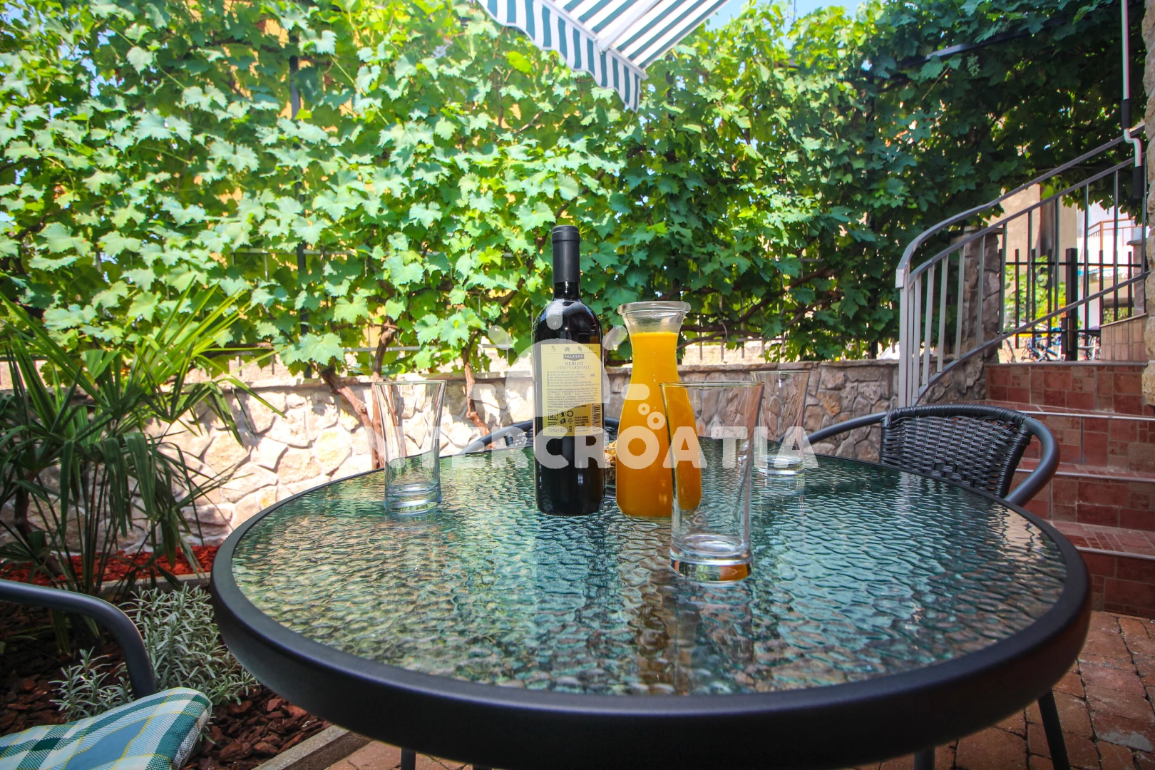 Apartmán se nachází 450 m od moře a pláže. Pláž je oblázková a betonové desky. U objektu je k dispozici společná zahrada s posezením a grilem. Parkování je před domem.