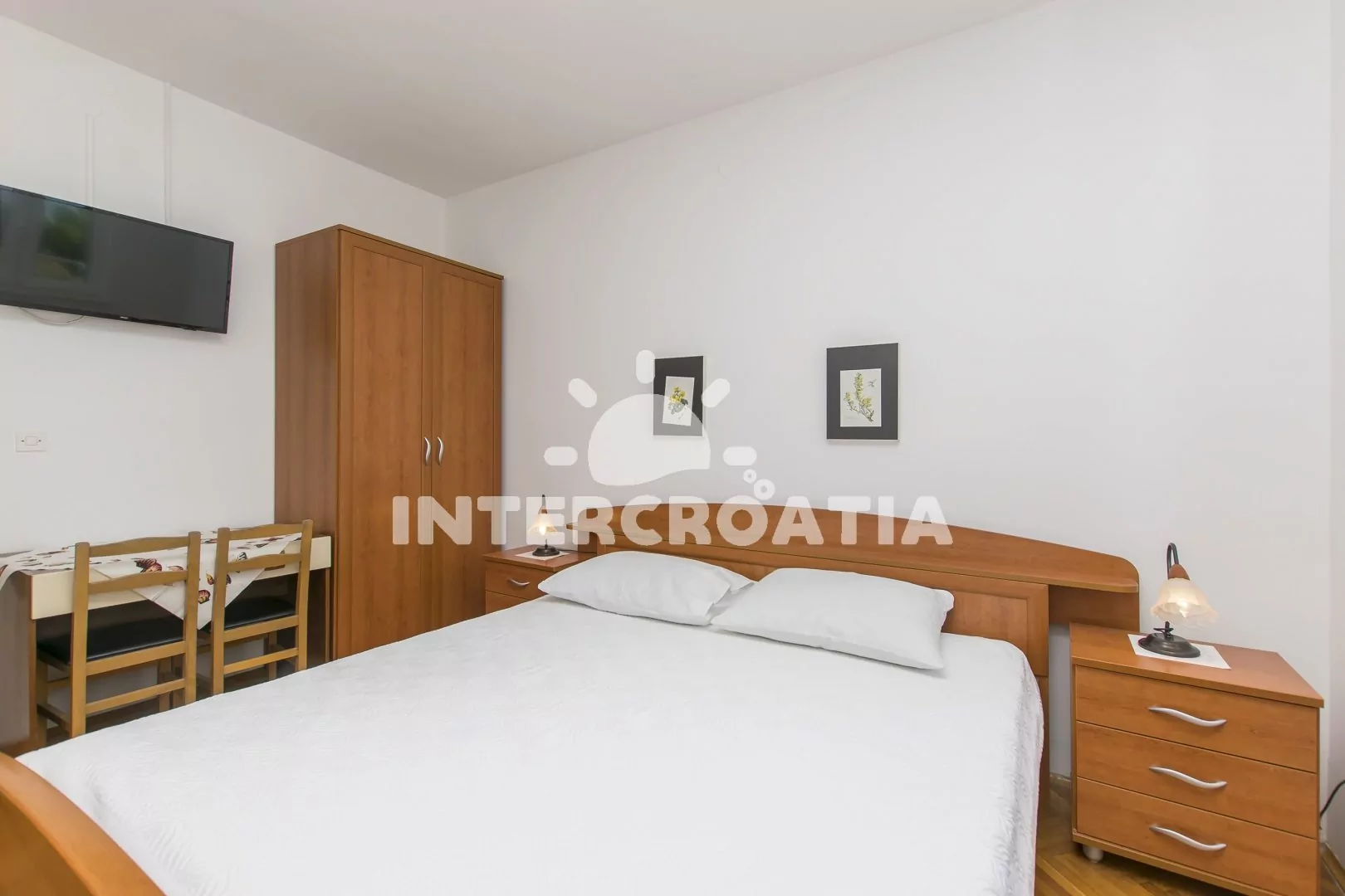 Apartmán (20 m2) typu studio s balkonem, posezením a výhledem na moře se nachází v 1. patře domu. Kuchyňská linka s dvouplotýnkovým vařičem, digestoří, rychlovarnou konvicí, nádobím a lednicí s mrazákem. Obývací místnost s televizí se satelitním programem, dvoulůžkem, klimatizací a vstupem na balkon. Koupelna se sprchovým koutem, umyvadlem a wc. Hostům je k dispozici parkování u objektu zdarma.