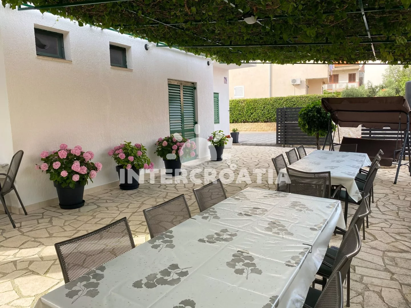 Skvěle umístěný apartmánový dům pouze 50 m od moře a 150 m od oblázkové pláže. Dům se nachází v klidné ulici a nabízí ubytování v několika klimatizovaných apartmánech, s lodžiemi a venkovním posezením. K dispozici je společná terasa s pergolou, posezením a grilem. Dále venkovní sprcha a dlážděné parkoviště pro automobily.