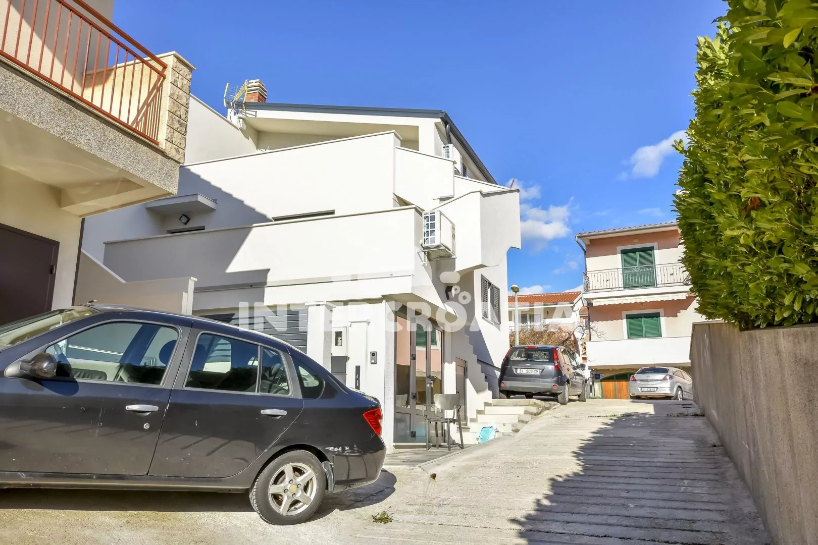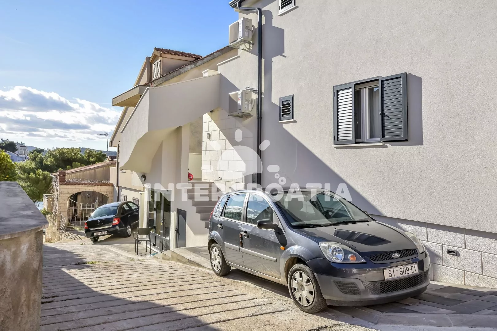 Výborně umístěný apartmánový dům jen pár kroků od moře. Dům se nachází v klidné ulici a je z něj krásný výhled na moře. K dispozici je ubytování ve 2 moderně zařízených a klimatizovaných apartmánech s lodžiemi a venkovním posezením. Parkovací místa pro automobily u domu.