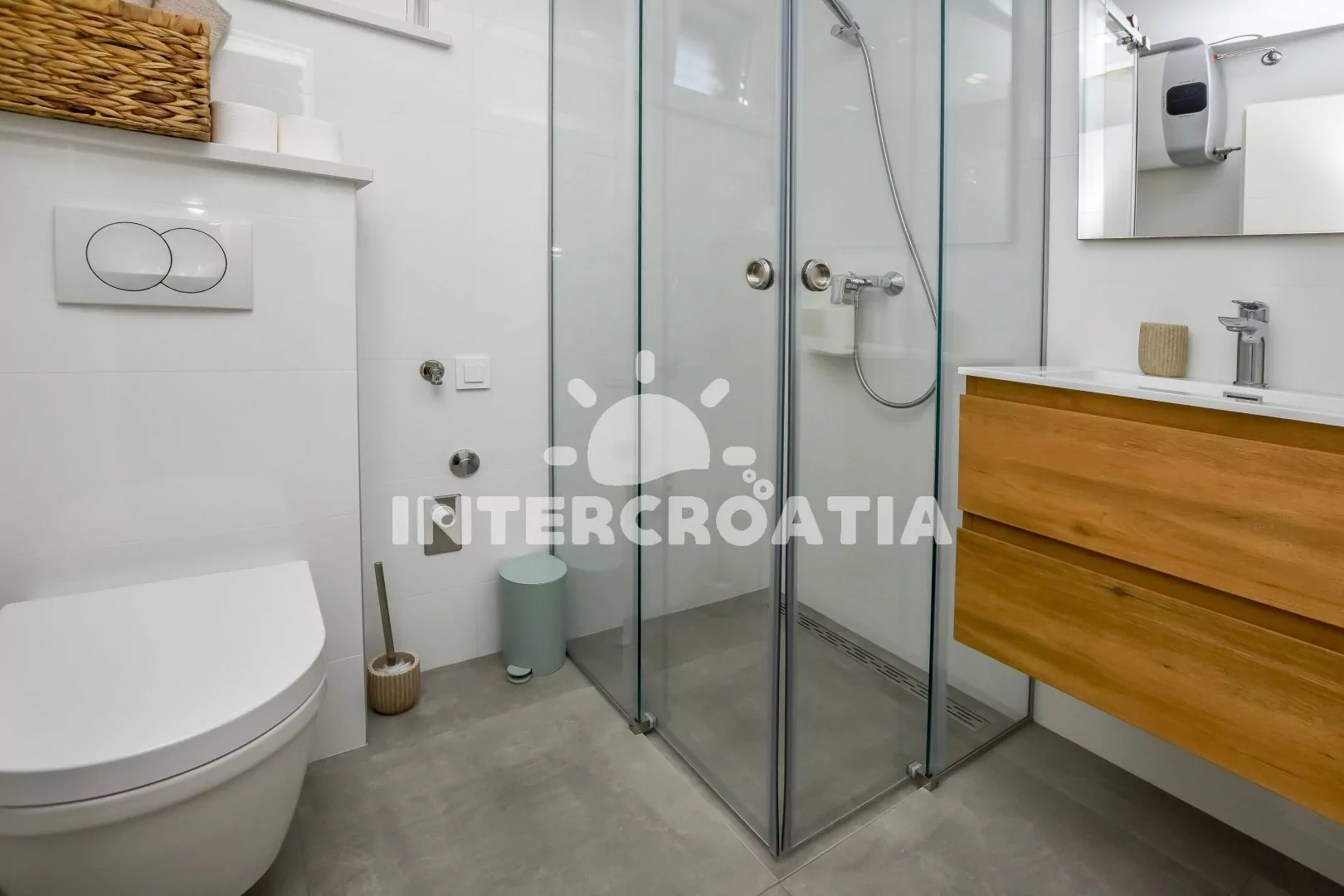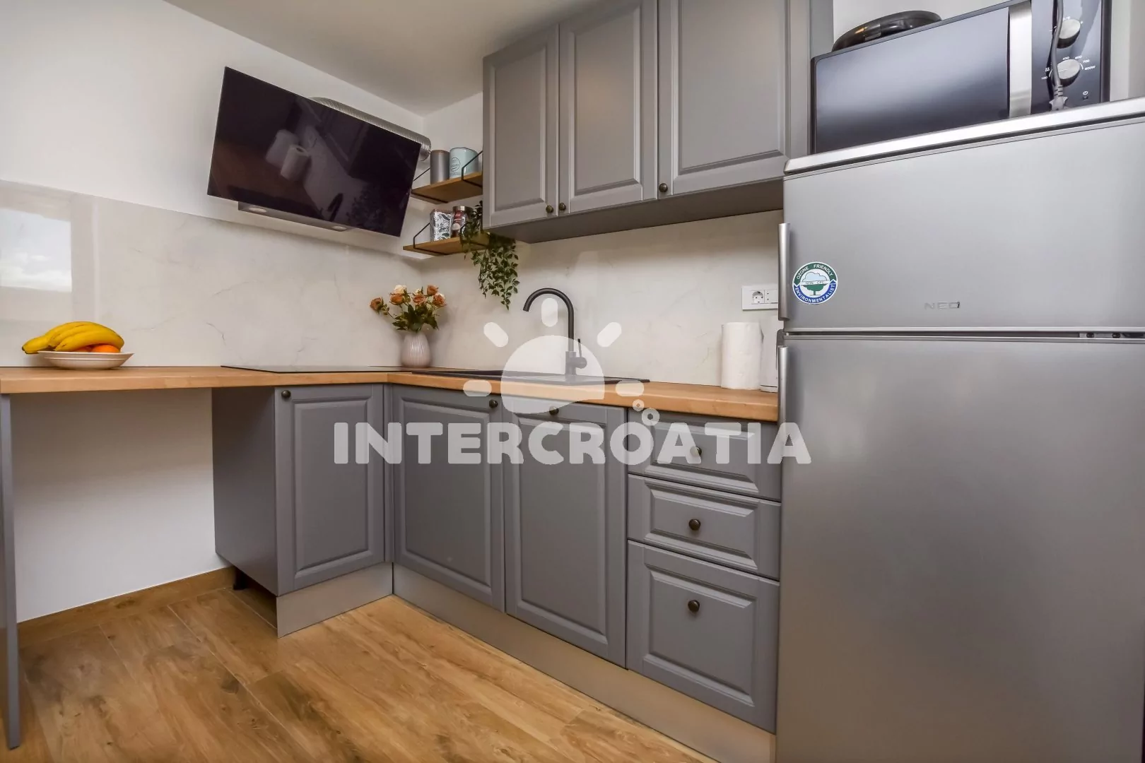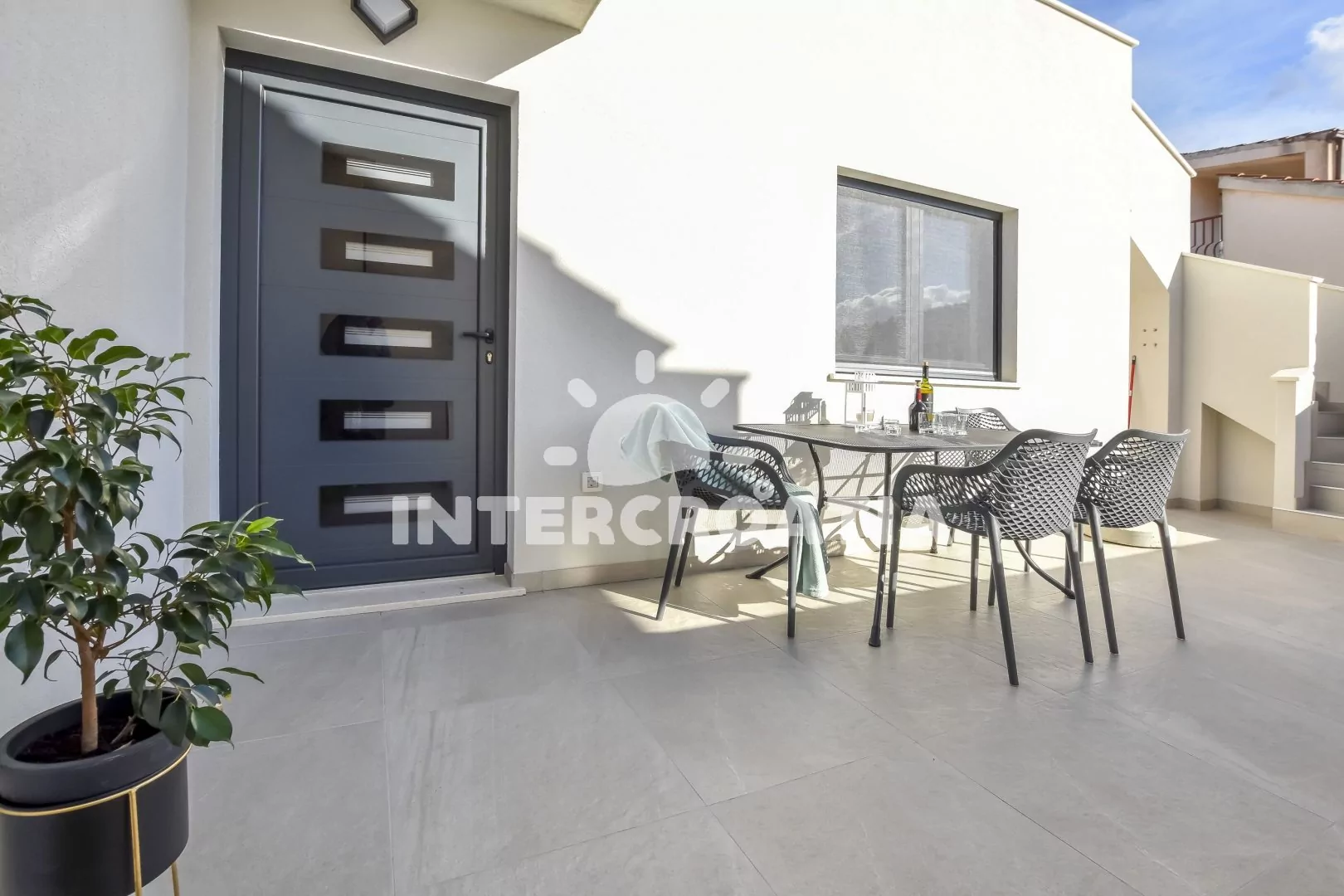 Vzdálenosti: Moře a betonová pláž 20 m, supermarket 200 m, veřejná doprava 400 m, centrum, restaurace, bar 500 m, banka, trajekt, čerpací stanice 20 km, letiště 70 km.