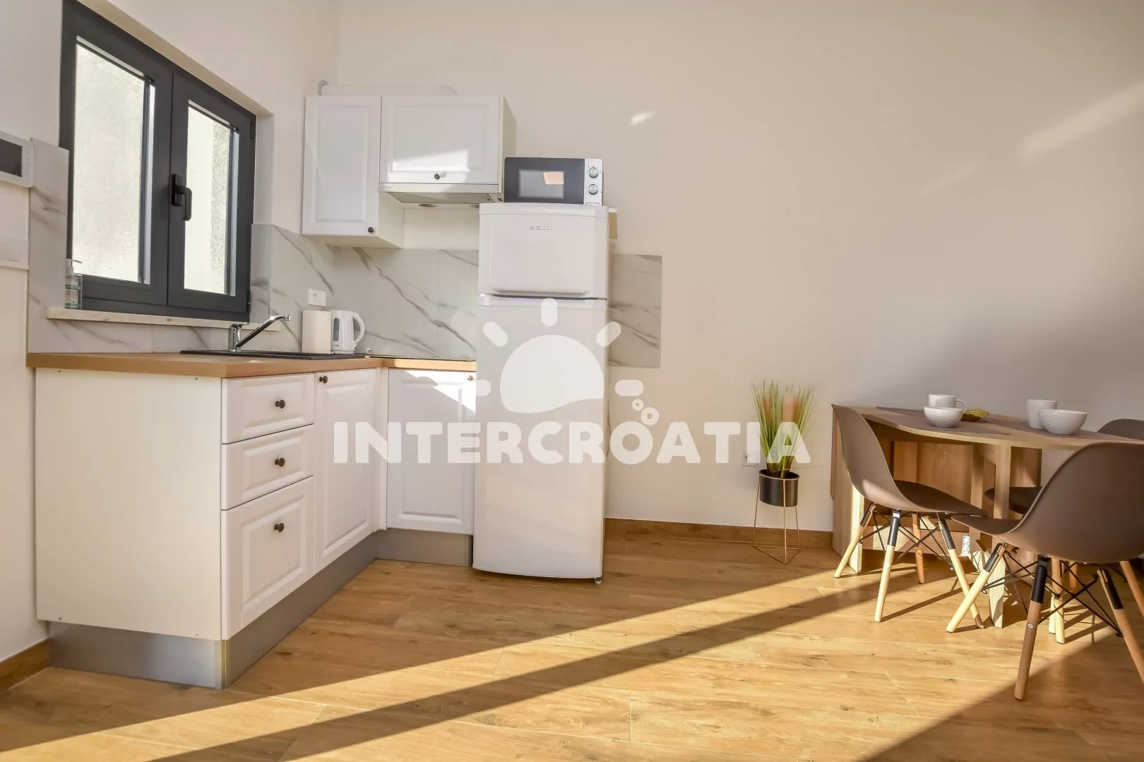 Vzdálenosti: Moře a betonová pláž 20 m, supermarket 200 m, veřejná doprava 400 m, centrum, restaurace, bar 500 m, banka, trajekt, čerpací stanice 20 km, letiště 70 km.