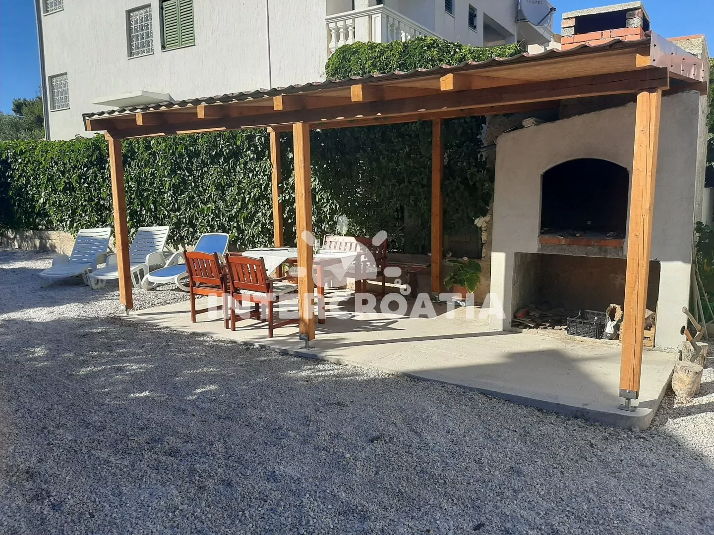 Dům se nachází přímo u břehu moře a pláže s betonovými moly, po 90 m pěší chůzí dojdete na písčito-oblázkovou pláž. Dům nabízí ubytování ve 3 klimatizovaných apartmánech s lodžiemi a venkovním posezením. K dispozici je společná terasa s pergolou a zděným grilem. U domu parkovací místa pro automobily.