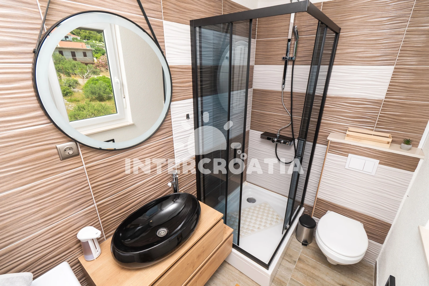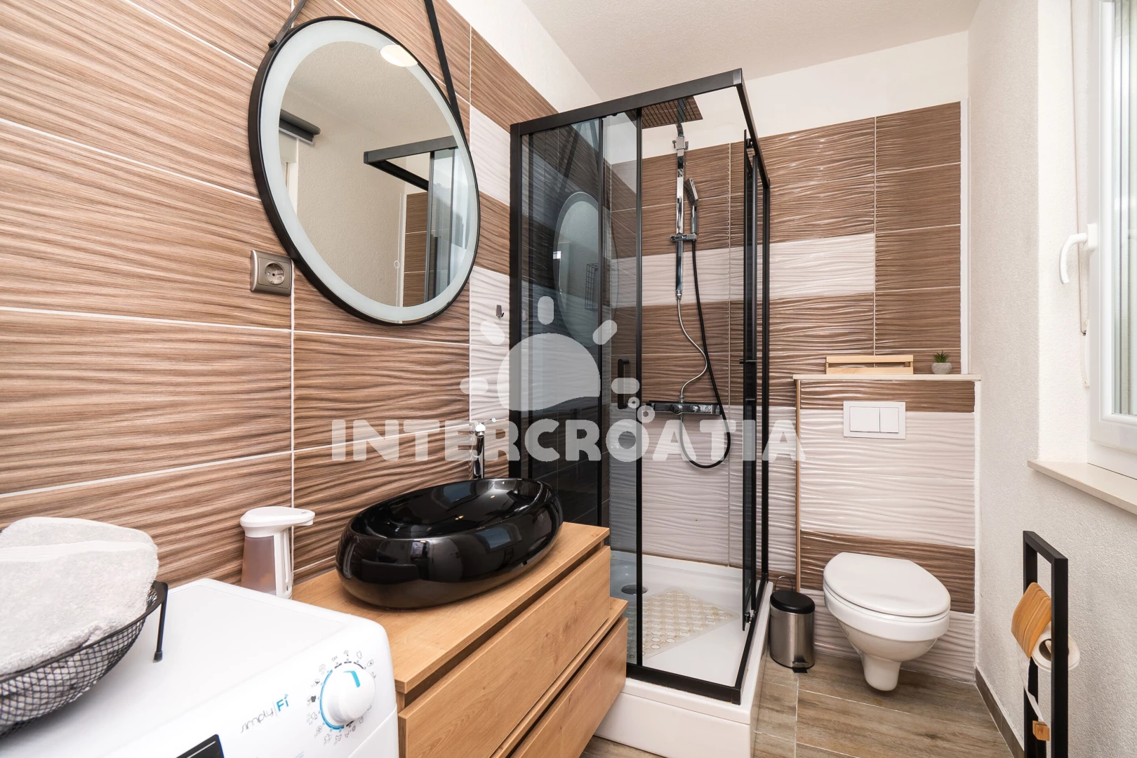 Vzdálenosti: Moře 500 m, pláž 550 m (písčitá a oblázková), veřejná doprava 300 m, supermarket 300 m, restaurace 500 m, bar 500 m, centrum 550 m, ambulance 3,3 km, lékárna 3,5 km, trajekt (Šibenik) 10,5 km, banka 11,8 km, park Plitvice 21,5 km, letiště (Split) 45 km,