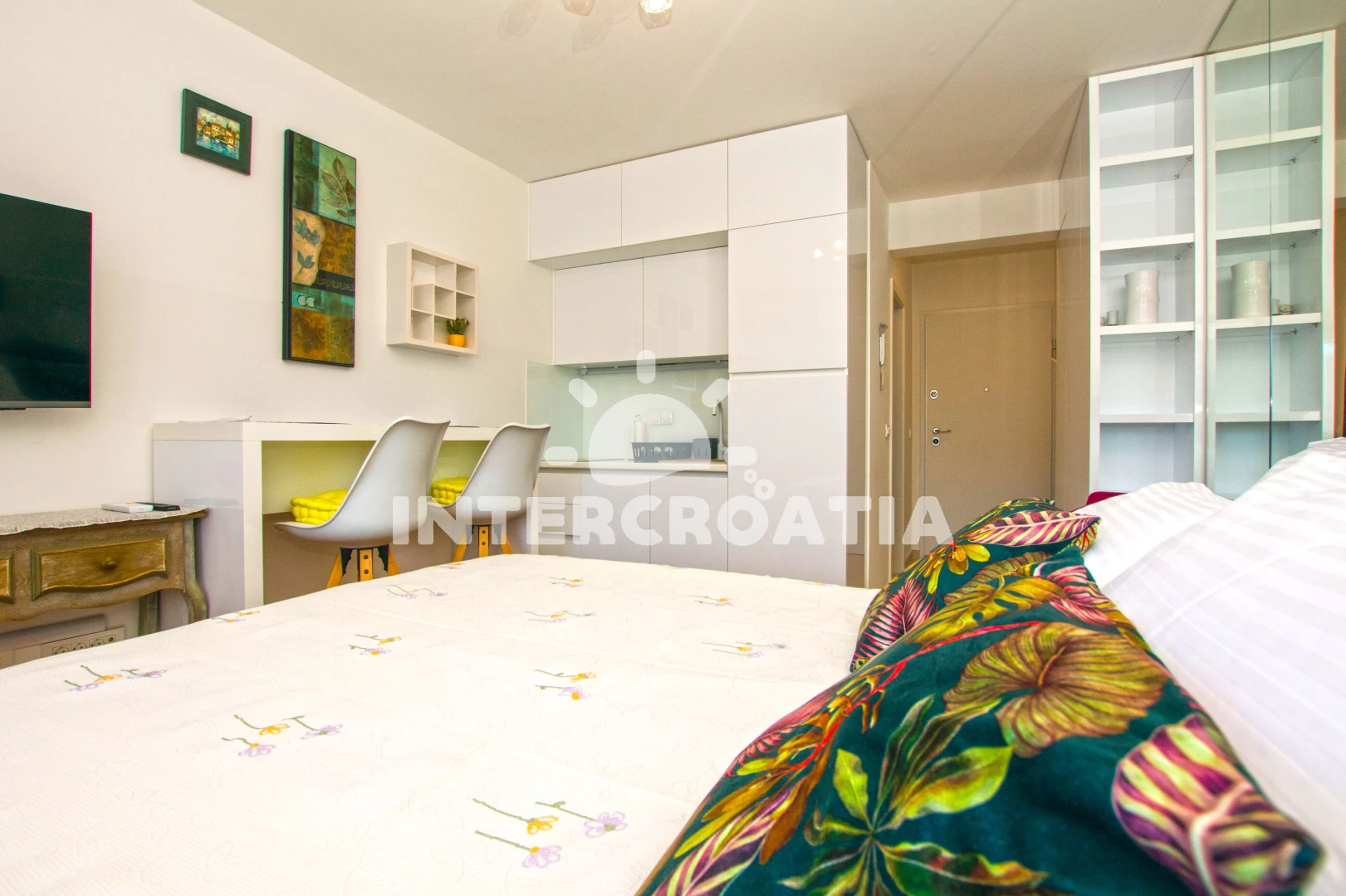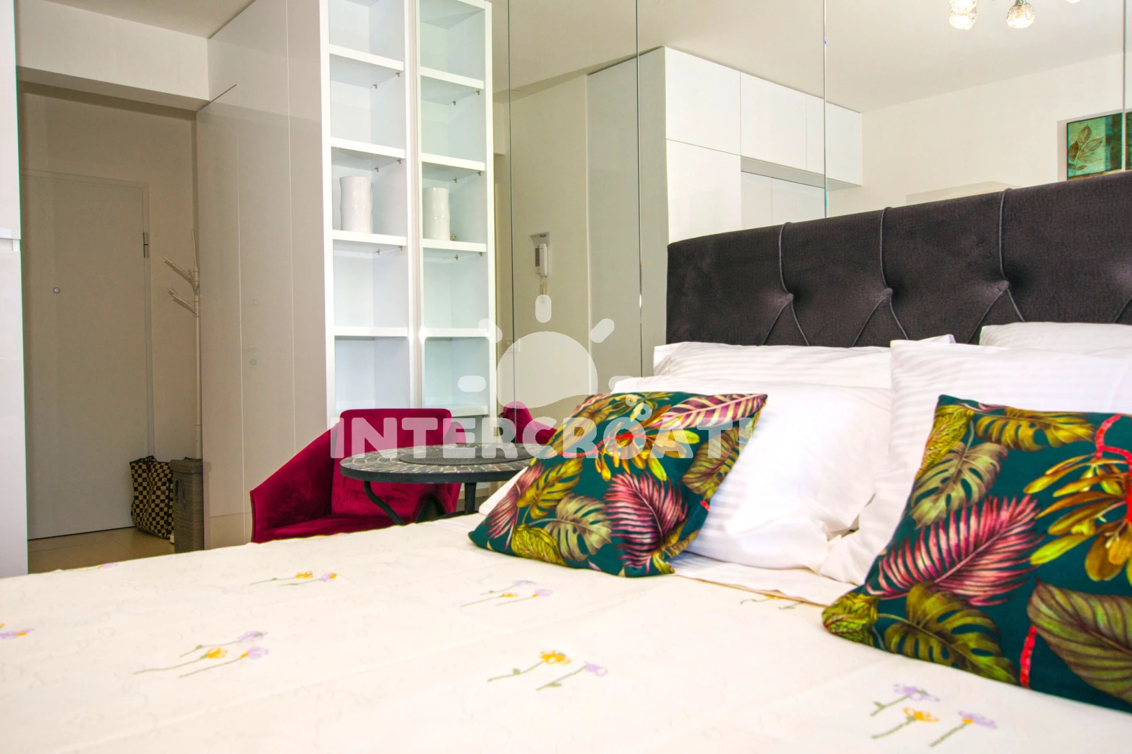 Apartmán (30 m2) s balkonem. Nachází se ve 4. nebo vyšším patře objektu. Apartmán má 1 ložnici a je vhodný pro až 2 osoby. Kuchyňská linka je vybavena varnou deskou, kávovarem, myčkou na nádobí, nádobím, lednicí. K dispozici televize. Ložnice s dvoulůžkem. Koupelna se sprchovým koutem, umyvadlem, WC.