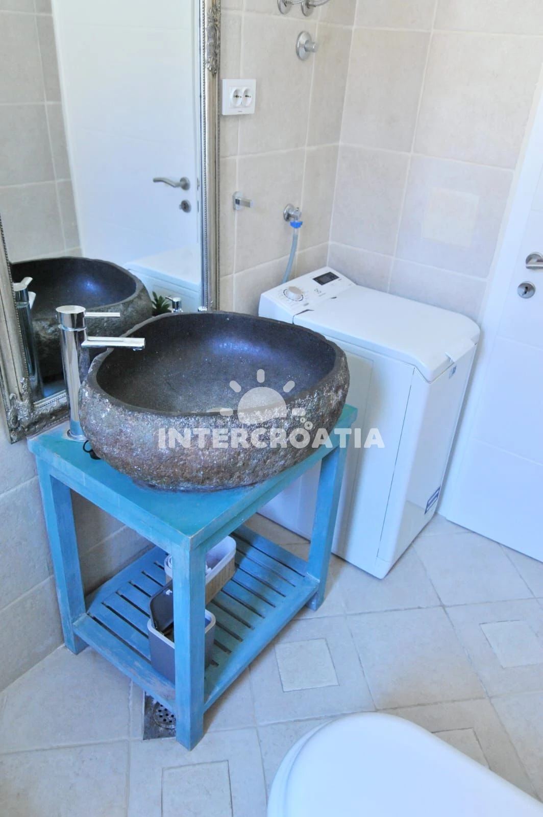 Vzdálenosti: Moře 50 m, pláž 300 m (oblázková a betonové desky), bar 250 m, supermarket 300 m, veřejná doprava 300 m, lékárna 300 m, ambulance 300 m, pošta 400 m, restaurace 400 m, centrum 500 m, banka 950 m, muzeum 1,2 km, marina 1,9 km, potápění 2,9 km, tenisové kurty 3 km, trajekt (Zadar) 4 km, letiště (Zadar) 12 km, park Plitvice 25 km,