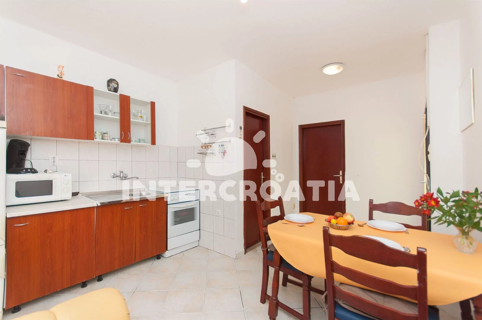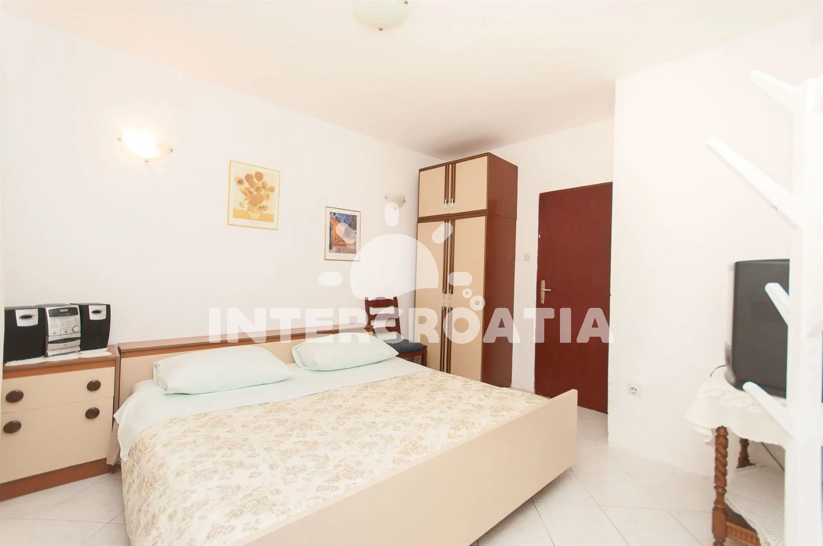 V Severní Dalmácii, 11,4 km severozápadně od malé vesničky Sveti Petar a 10,5 km na jihovýchod od přímořského městečka Petrčane. Apartmán se nachází 400 m pěší chůze od krásné písčito-oblázkové pláže.