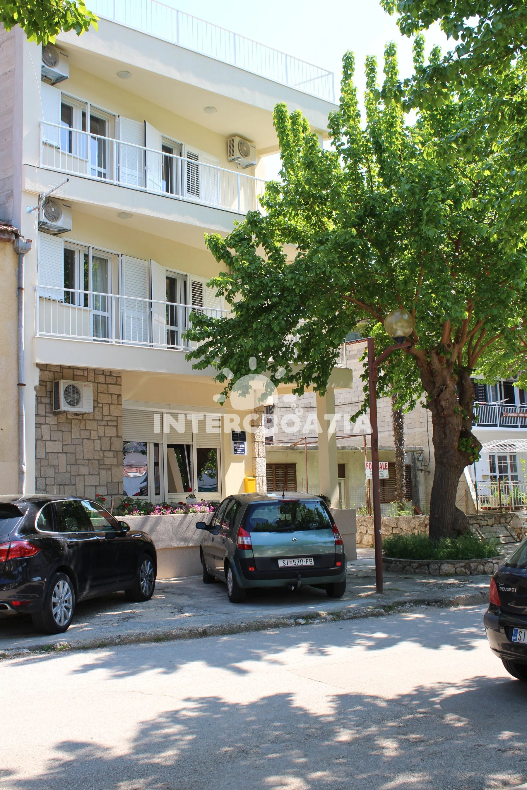 Dům se nachází přímo u břehu moře a v klidné ulici obce, oblázková pláž s betonovými moly je 800 m pěší chůzí. Apartmány jsou klimatizované a disponují lodžiemi s venkovním posezením. Parkovací místa pro automobily jsou 50 - 150 m od domu.