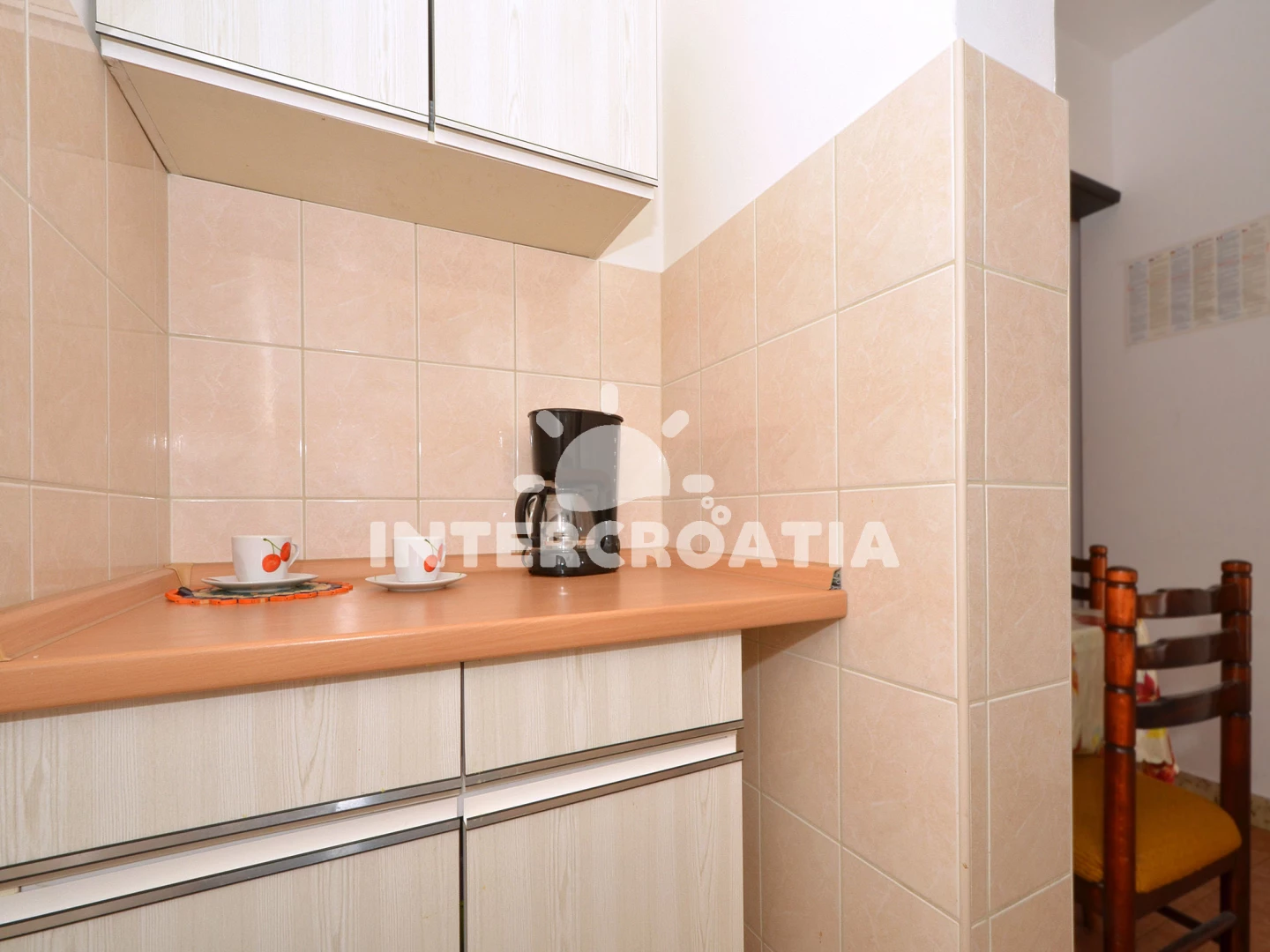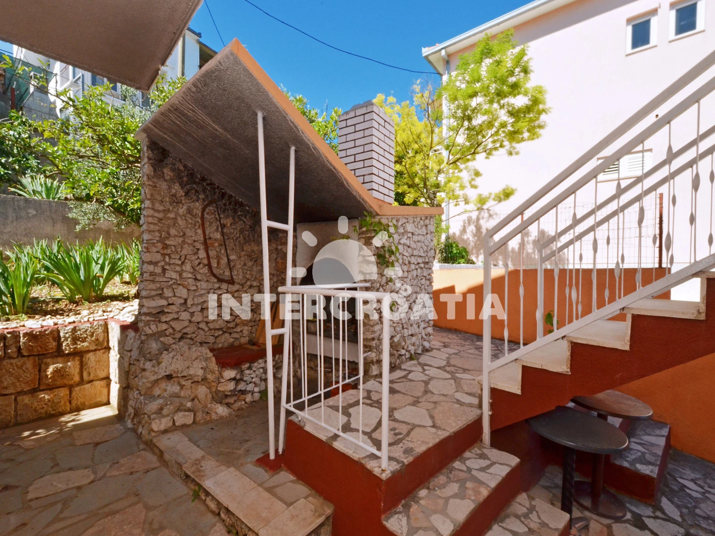 Apartmán se nachází 20 m od moře a pláže. Pláž je oblázková a betonové desky. U objektu je k dispozici společná zahrada s posezením a grilem. Parkování je před domem.