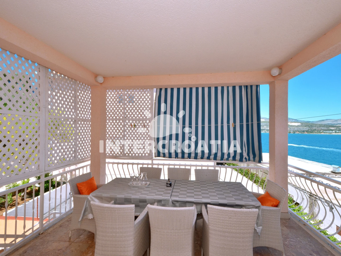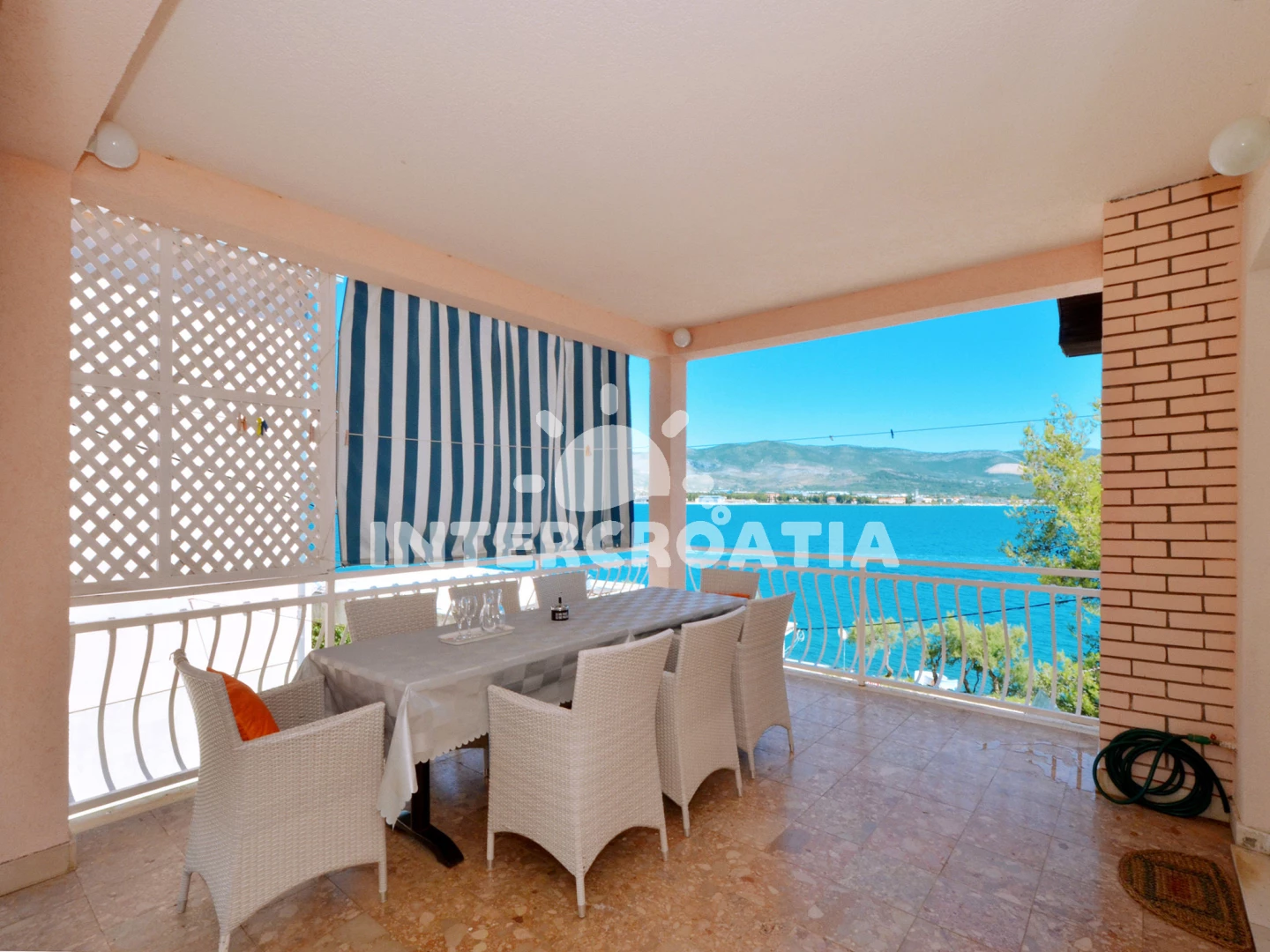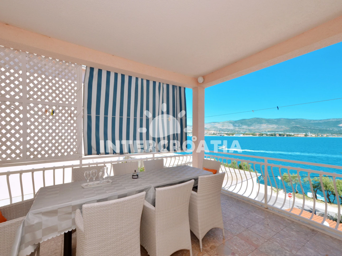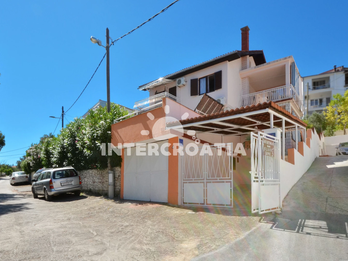 Vzdálenosti: Moře 20 m, pláž 20 m (oblázková a betonové desky), kotviště pro čluny 100 m, bar 100 m, restaurace 200 m, supermarket 300 m, půjčovna kol 500 m, centrum 3 km, marina 4 km, pošta 4 km, směnárna 4 km, muzeum 4 km, banka 4 km, lékárna 4 km, ambulance 4 km, čerpací stanice 4 km, letiště (Split) 10 km, trajekt (Split) 30 km,
