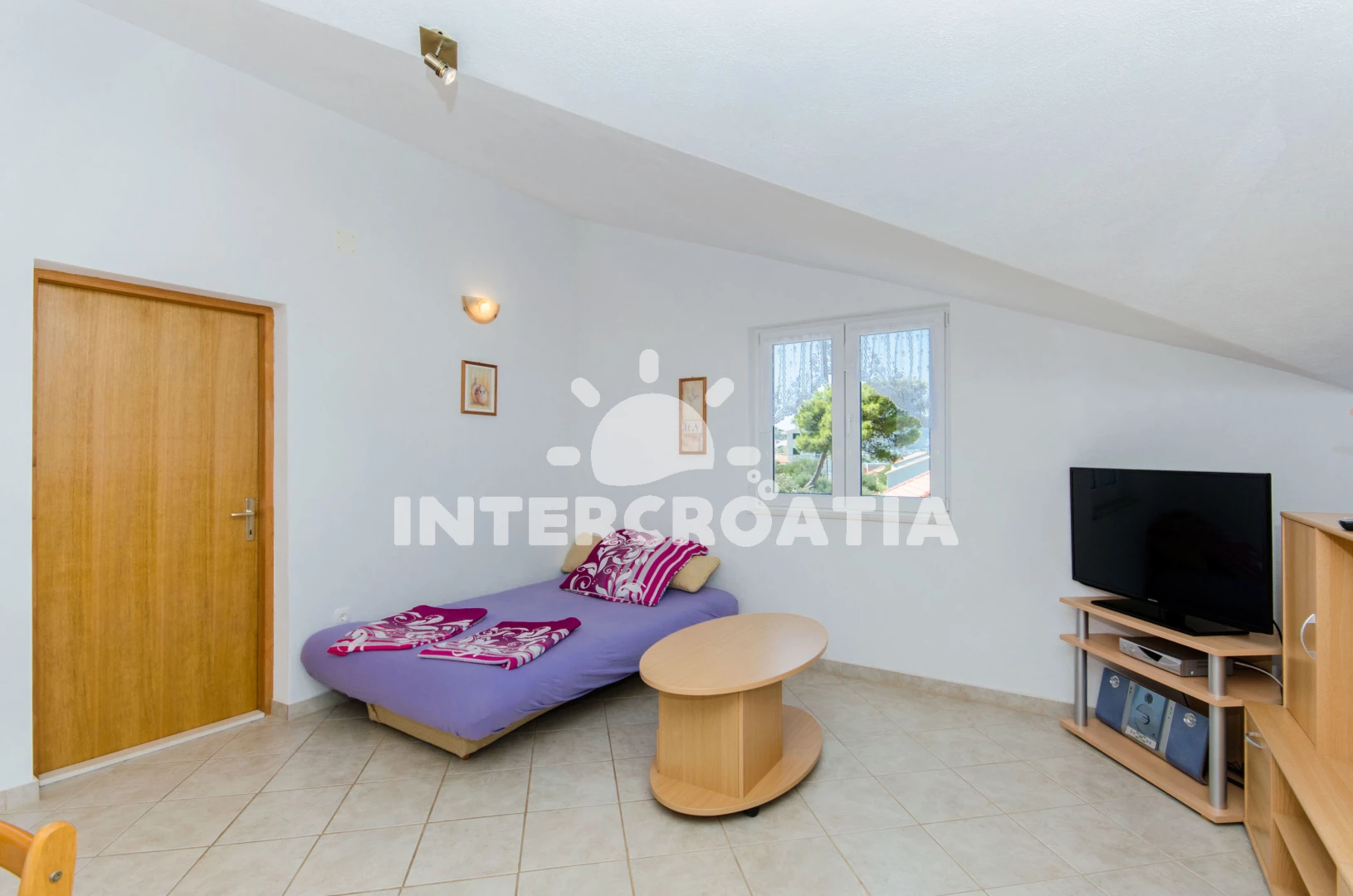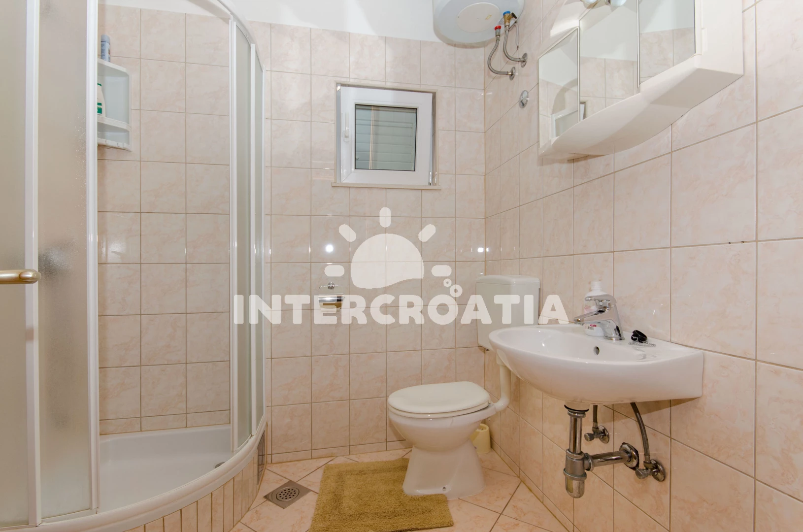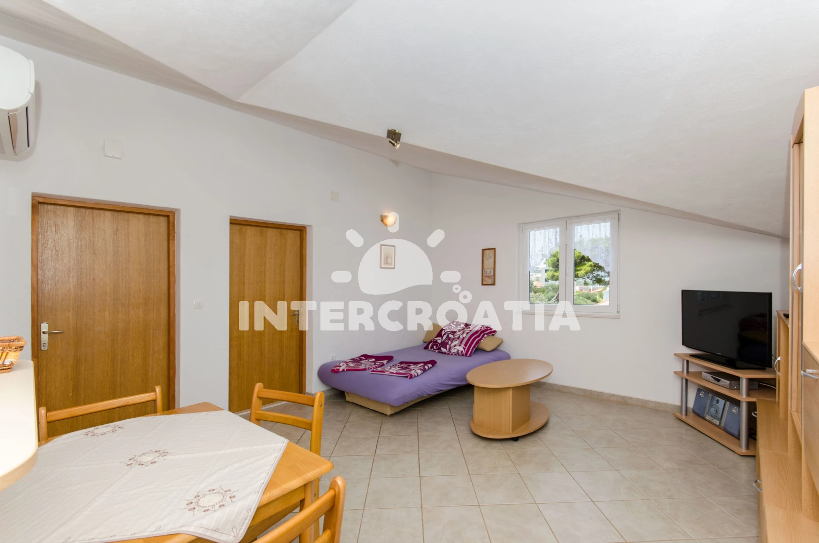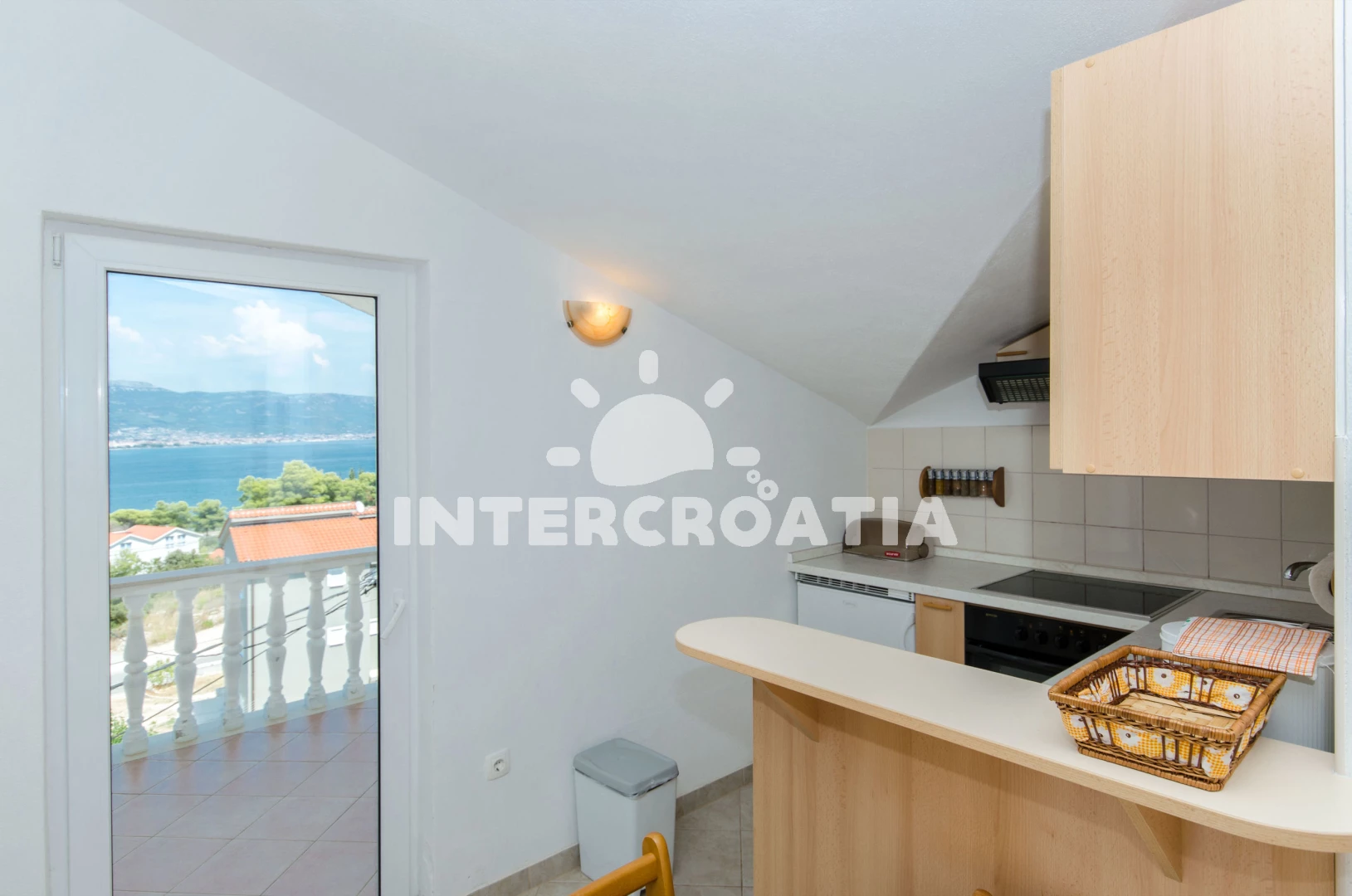 A very good apartment, well-equipped kitchen and great power shower. Really faboulous private balcony with views up and down the coast. You can see the airport in the distance so it would be great for anyone with an interest in plane spotting! It is close to everything - beach, cafes, bus stop to Trogir, the supermarket. Also just a short walk up the hill to Zedno where the hiking trails start.