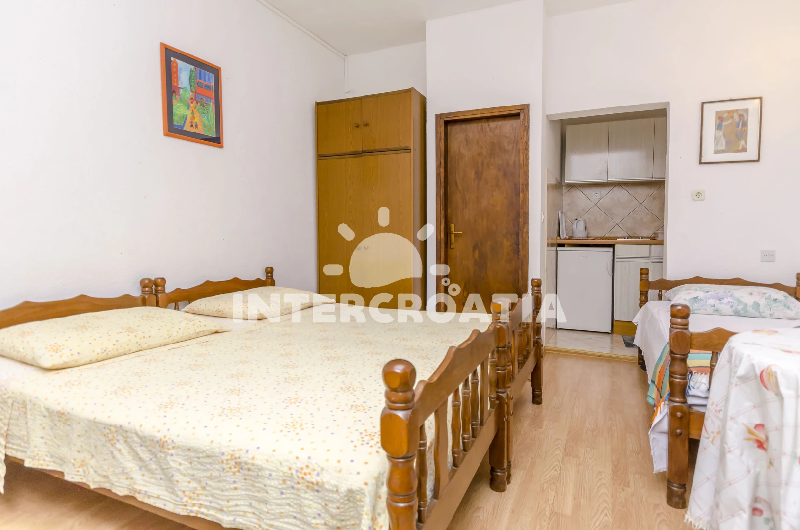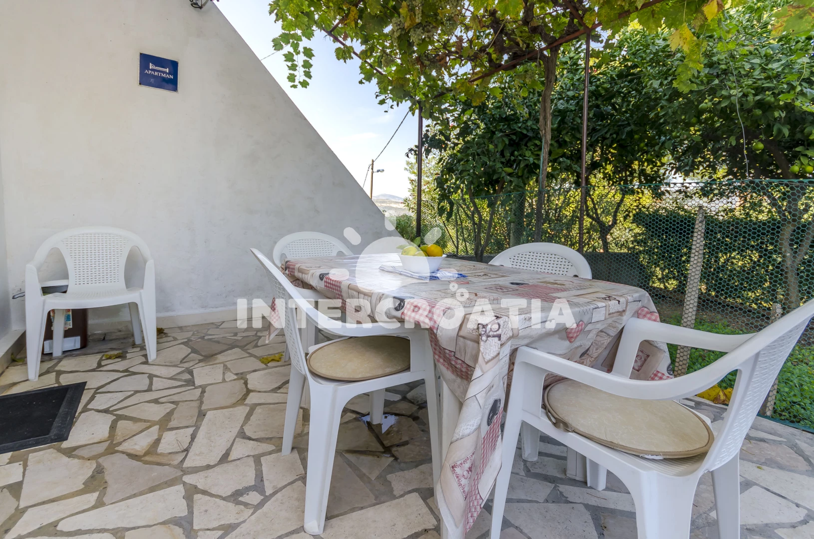 Apartmán se nachází 70 m od moře a pláže. Pláž je oblázková a betonové desky. U objektu je k dispozici společná zahrada s posezením a grilem. Parkování je 50m - 150 m od domu.