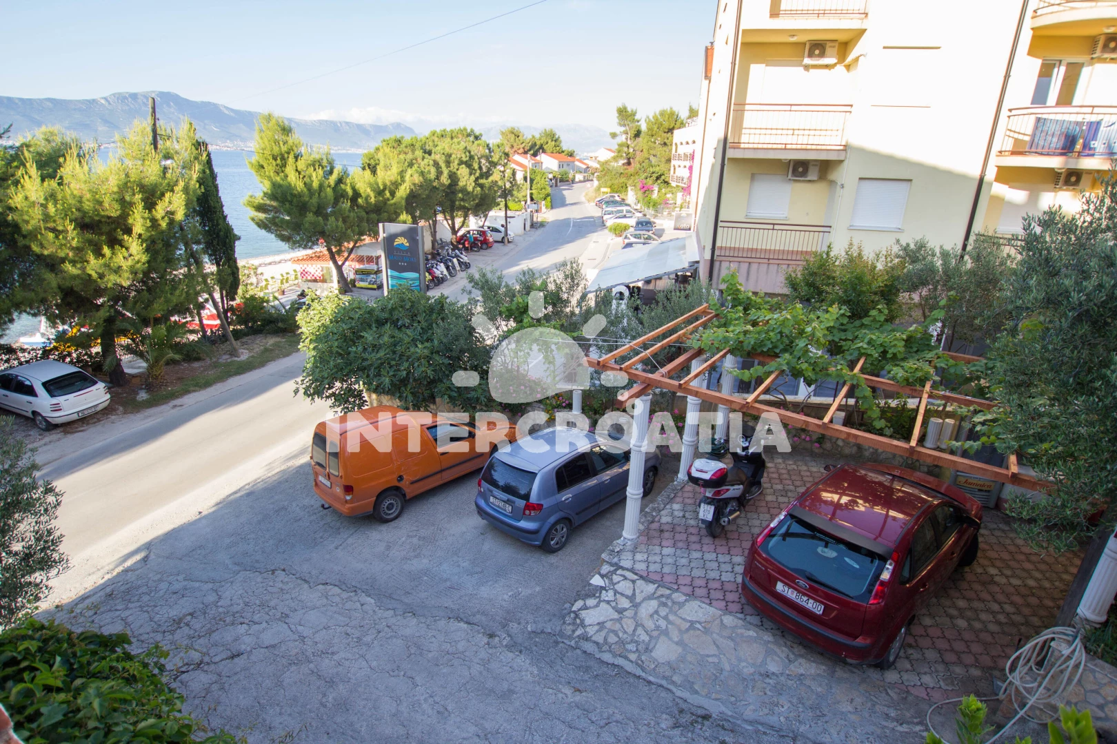 Vzdálenosti: Moře 10 m, pláž 10 m (oblázky), lékárna 10 m, veřejná doprava 10 m, supermarket 10 m, bar 10 m, restaurace 10 m, čerpací stanice 3 km, banka 3 km, centrum 3 km, letiště 8 km,