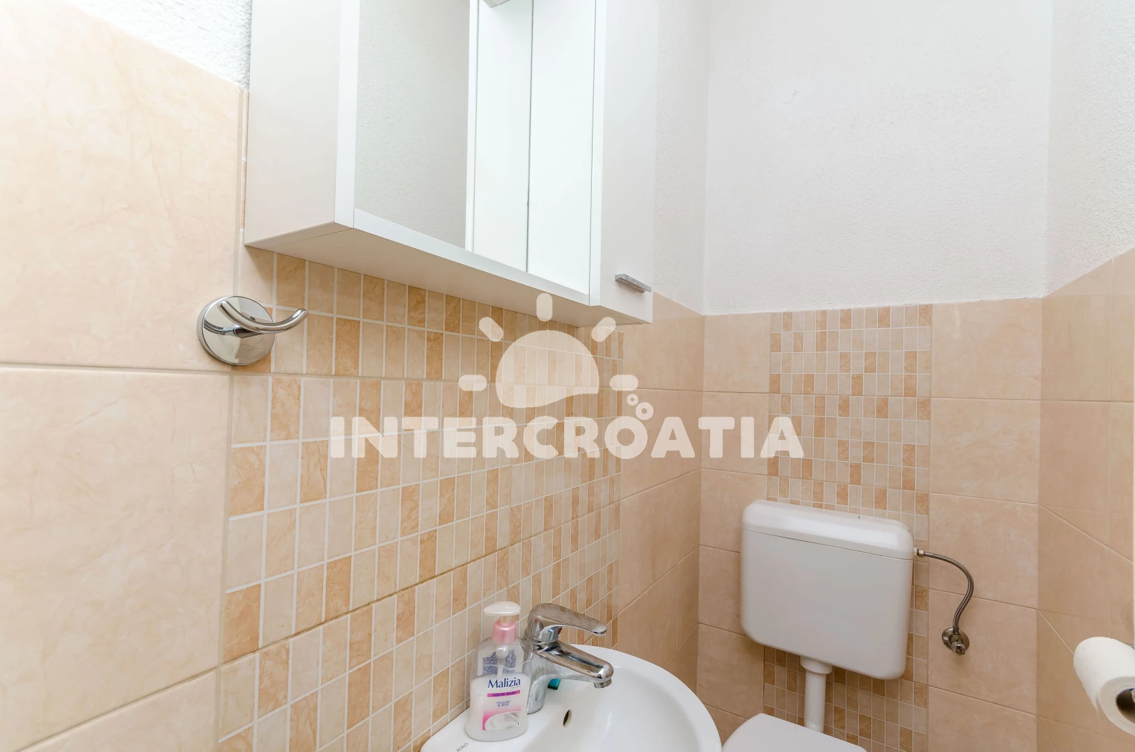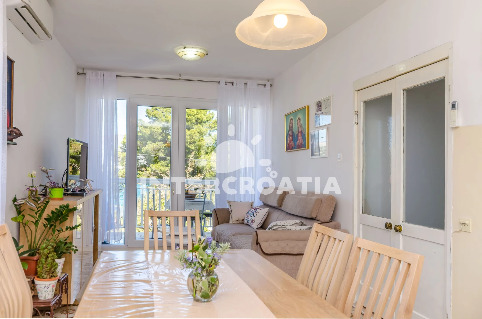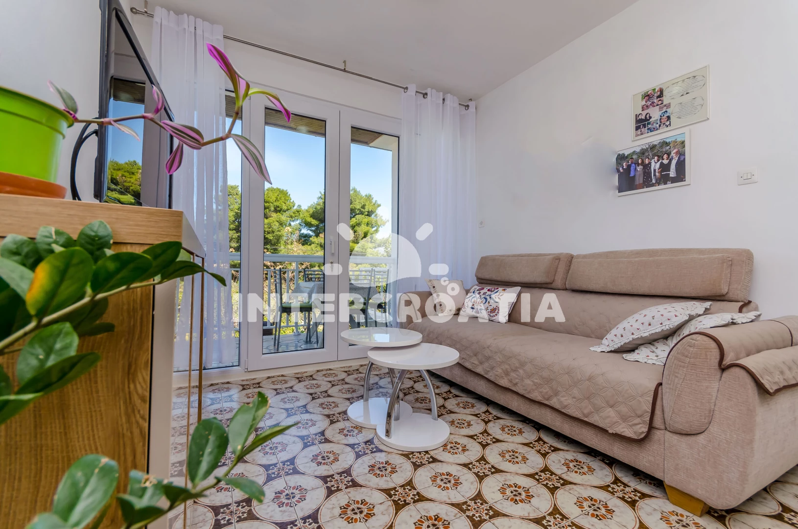 Vzdálenosti: Moře 50 m, pláž 50 m (oblázková a betonové desky), bar 100 m, restaurace 100 m, supermarket 100 m, veřejná doprava 100 m, centrum 3,1 km, letiště (Split) 7 km,
