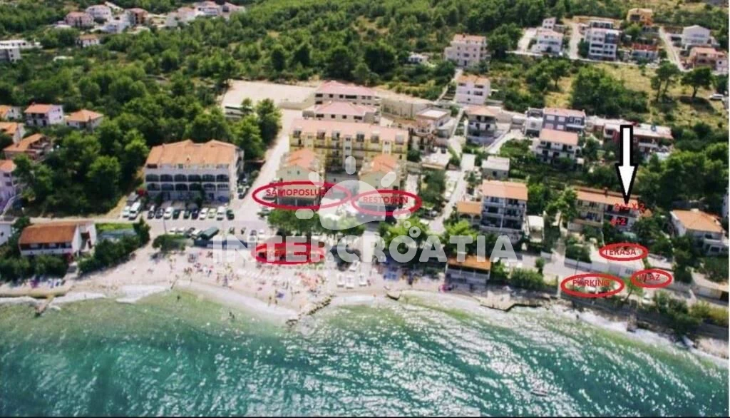 Vzdálenosti: Moře 10 m, pláž 10 m (oblázky), supermarket 10 m, bar 10 m, restaurace 20 m, lékárna 50 m, veřejná doprava 50 m, půjčovna kol 50 m, pošta 2 km, diskotéka 3 km, muzeum 3 km, centrum 4 km, letiště (Split) 10 km,