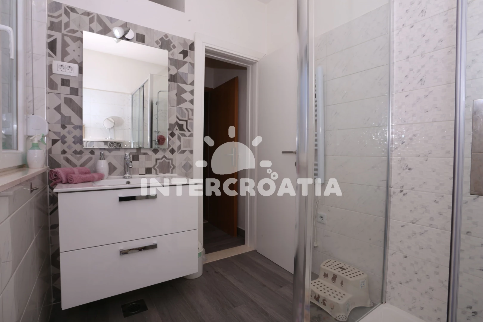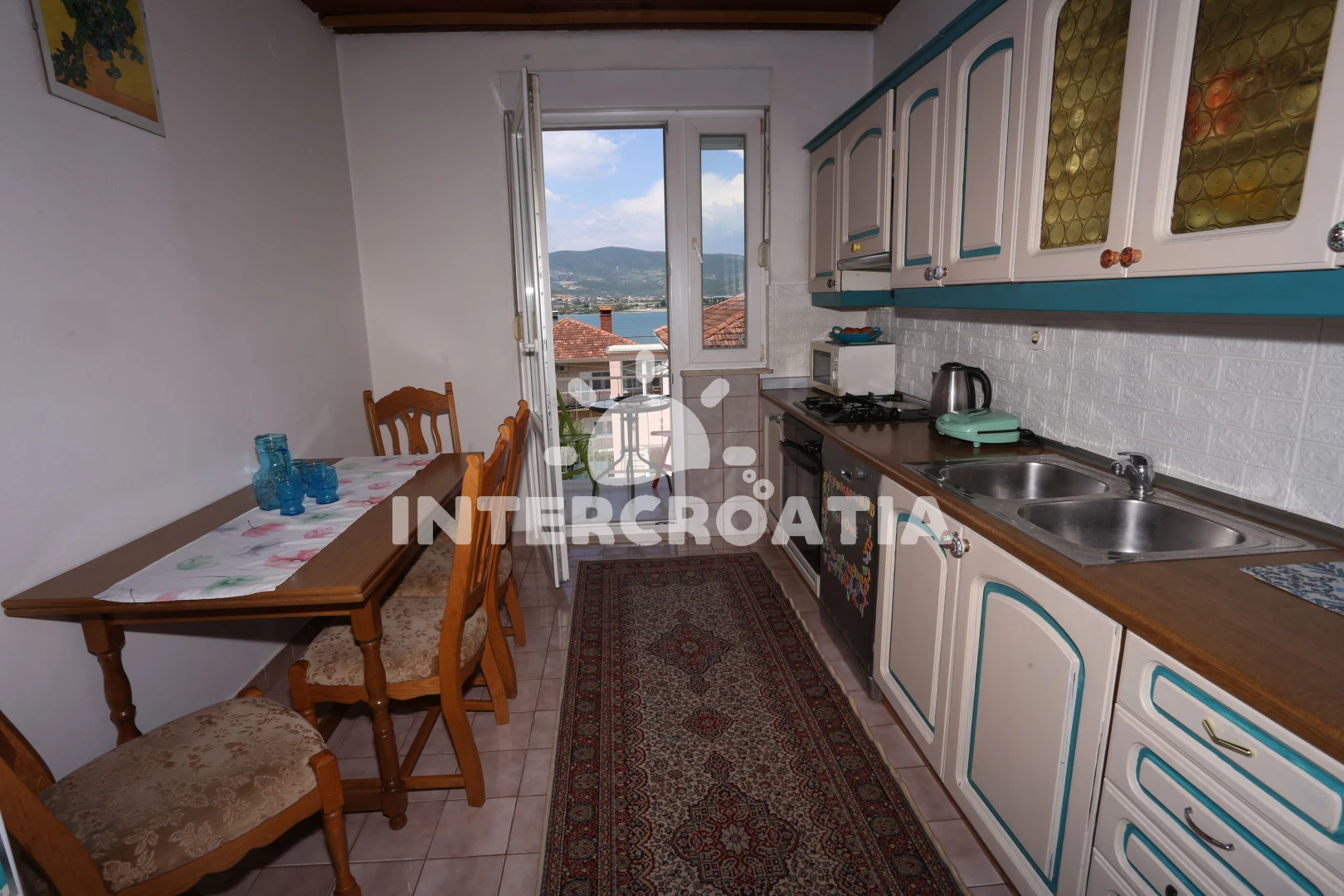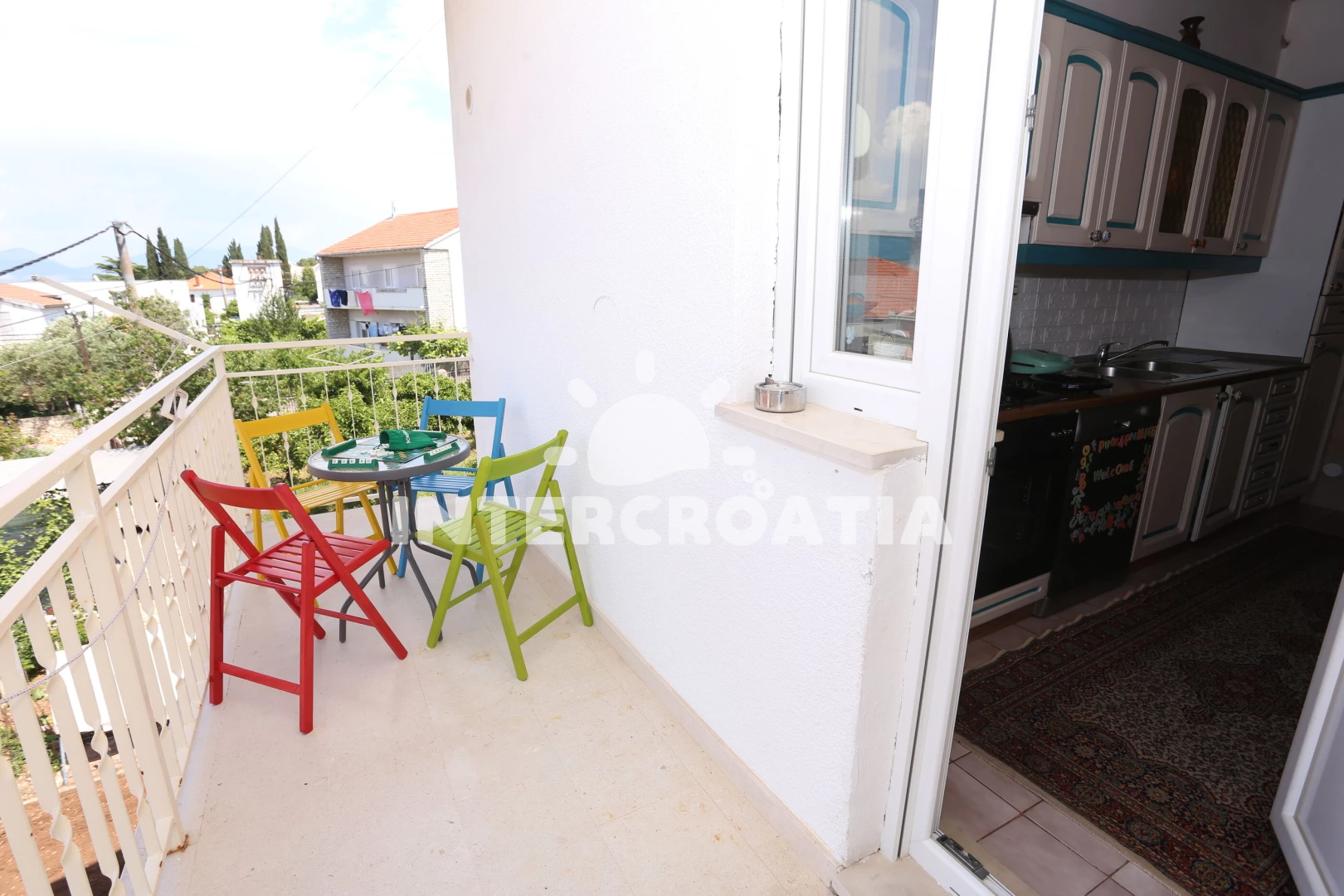 Vzdálenosti: Moře 60 m, pláž 60 m (oblázky), supermarket 400 m, veřejná doprava 400 m, bar 400 m, restaurace 400 m, centrum 3 km, letiště (Split) 7 km,