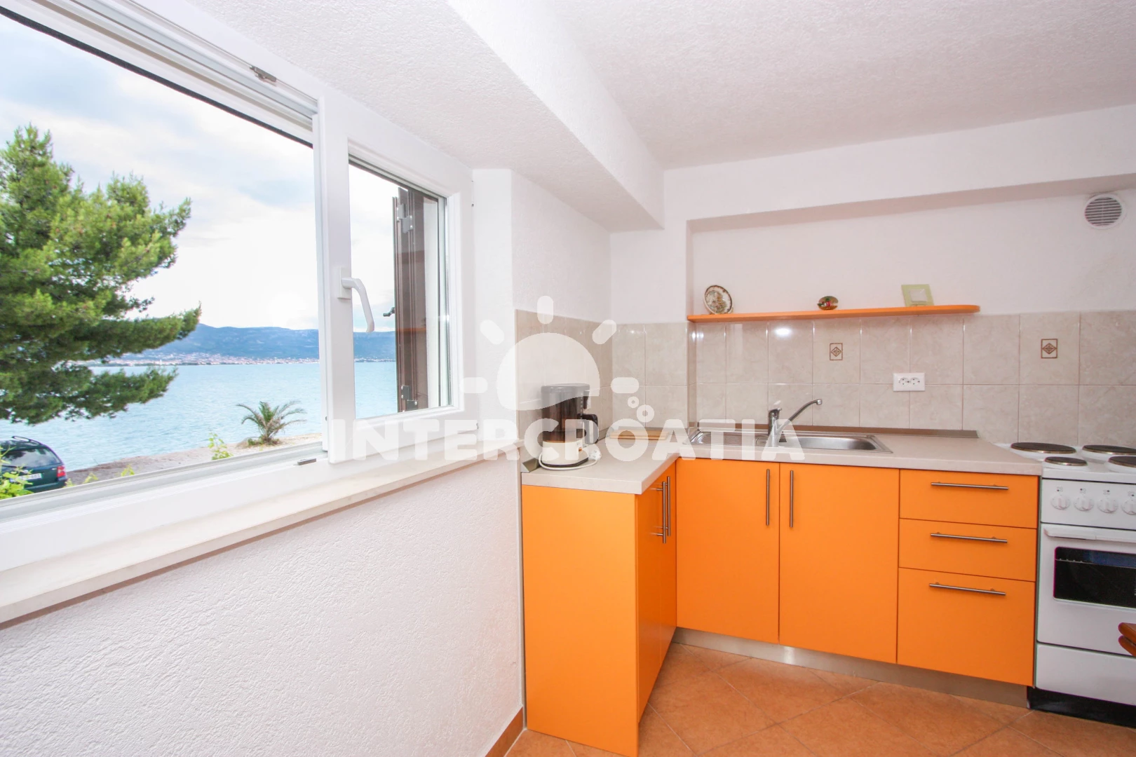 Vzdálenosti: Moře 15 m, pláž 15 m (oblázková a betonové desky), restaurace 15 m, kotviště pro čluny 150 m, veřejná doprava 200 m, směnárna 200 m, supermarket 200 m, půjčovna motorových člunů 200 m, bar 1,5 km, ambulance 3,5 km, centrum 3,5 km, banka 3,5 km, potápění 3,5 km, pošta 3,5 km, čerpací stanice 3,5 km, půjčovna kol 3,5 km, muzeum 3,5 km, diskotéka 3,5 km, lékárna 3,5 km, marina 3,5 km, tenisové kurty 4 km, trajekt (Trogir) 4 km, letiště (Split) 4,5 km, park Plitvice 65 km,