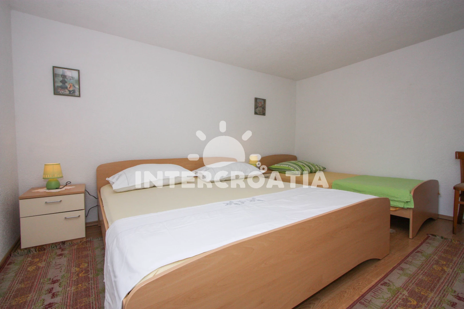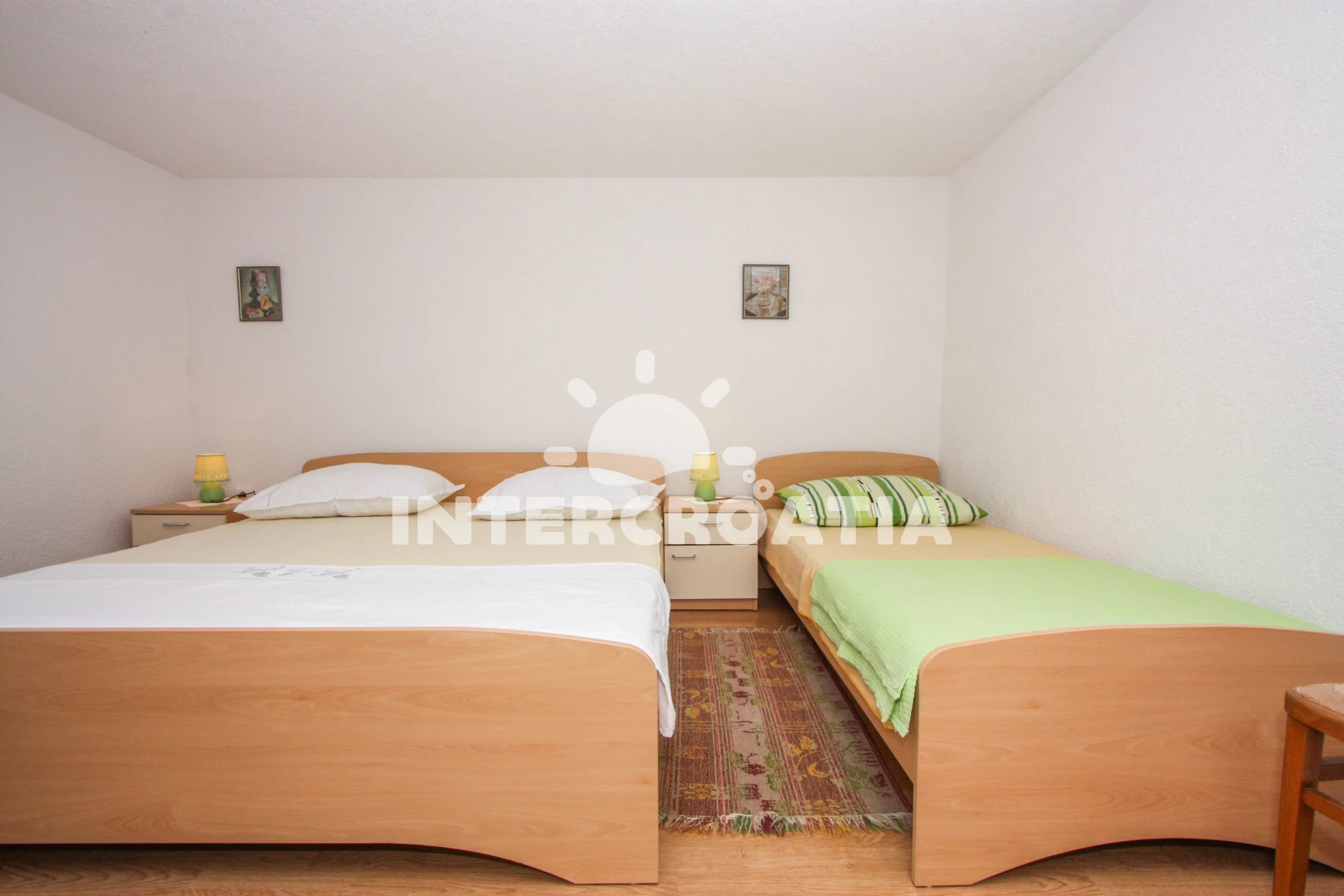Apartmán se nachází 15 m od moře a pláže. Pláž je oblázková a betonové desky. U objektu je k dispozici společná zahrada s posezením a grilem. Parkování je před domem.