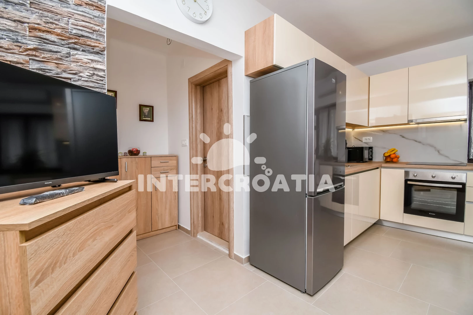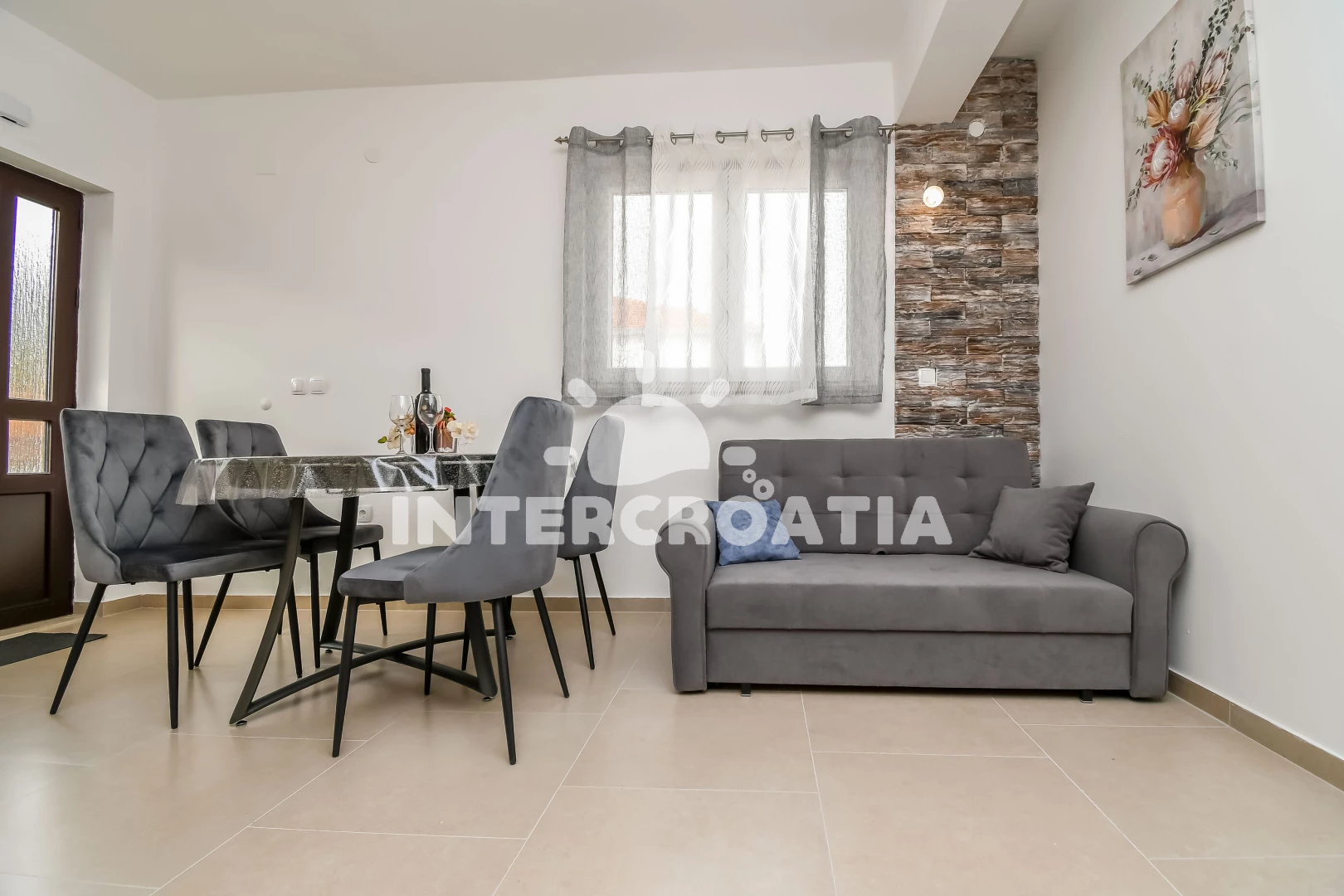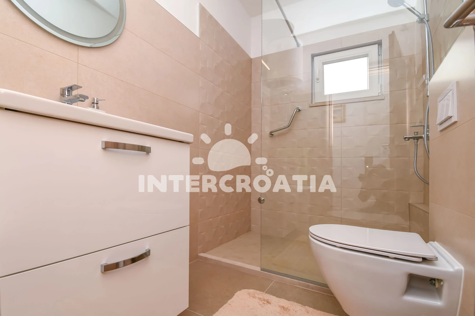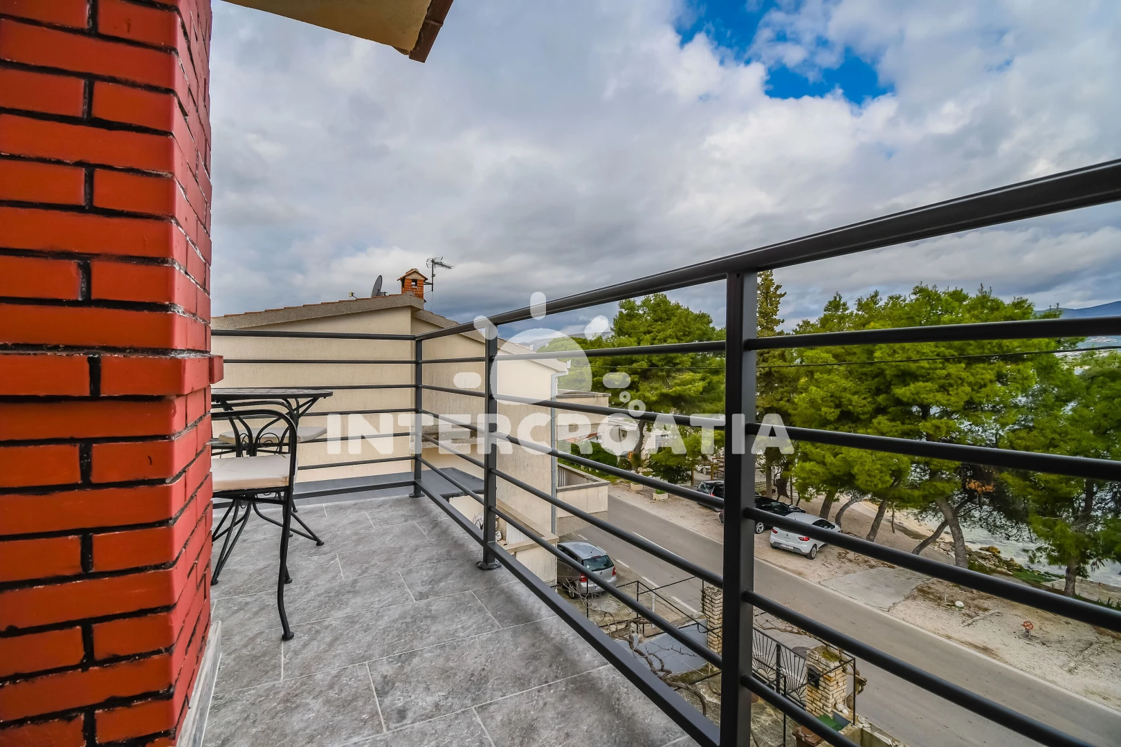 Vzdálenosti: Moře 15 m, pláž 15 m (oblázková a betonové desky), restaurace 15 m, supermarket 150 m, veřejná doprava 200 m, směnárna 200 m, půjčovna motorových člunů 200 m, bar 1,5 km, pošta 3,5 km, diskotéka 3,5 km, půjčovna kol 3,5 km, banka 3,5 km, lékárna 3,5 km, ambulance 3,5 km, centrum 3,5 km, muzeum 3,5 km, čerpací stanice 3,5 km, potápění 3,5 km, marina 3,5 km, tenisové kurty 4 km, trajekt (Trogir) 4 km, letiště (Split) 4,5 km, park Plitvice 65 km,
