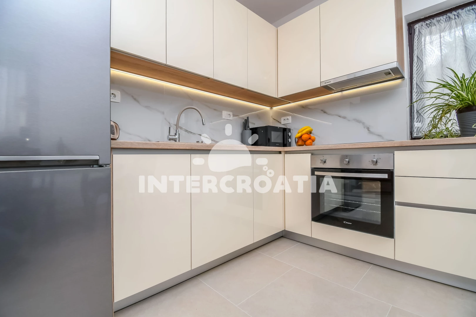 Apartmán se nachází 15 m od moře a pláže. Pláž je oblázková a betonové desky. U objektu je k dispozici společná zahrada s posezením a grilem. Parkování je před domem.