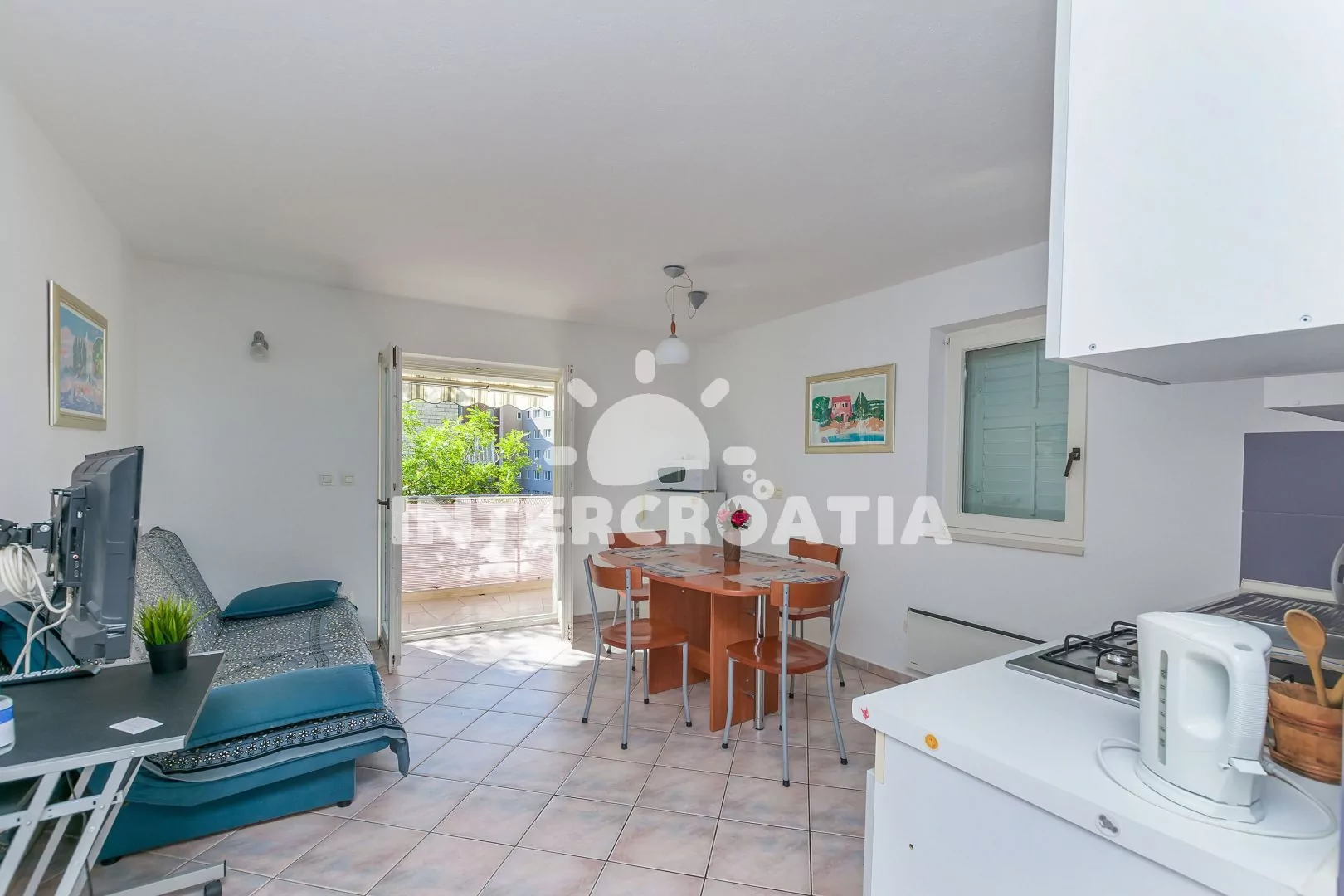 Vzdálenosti: Moře 200 m, centrum 500 m, supermarket, veřejná doprava 200 m, ambulance 300 m, lékárna 450 m, směnárna 400 m, trajekt 50 km, letiště 70 km.