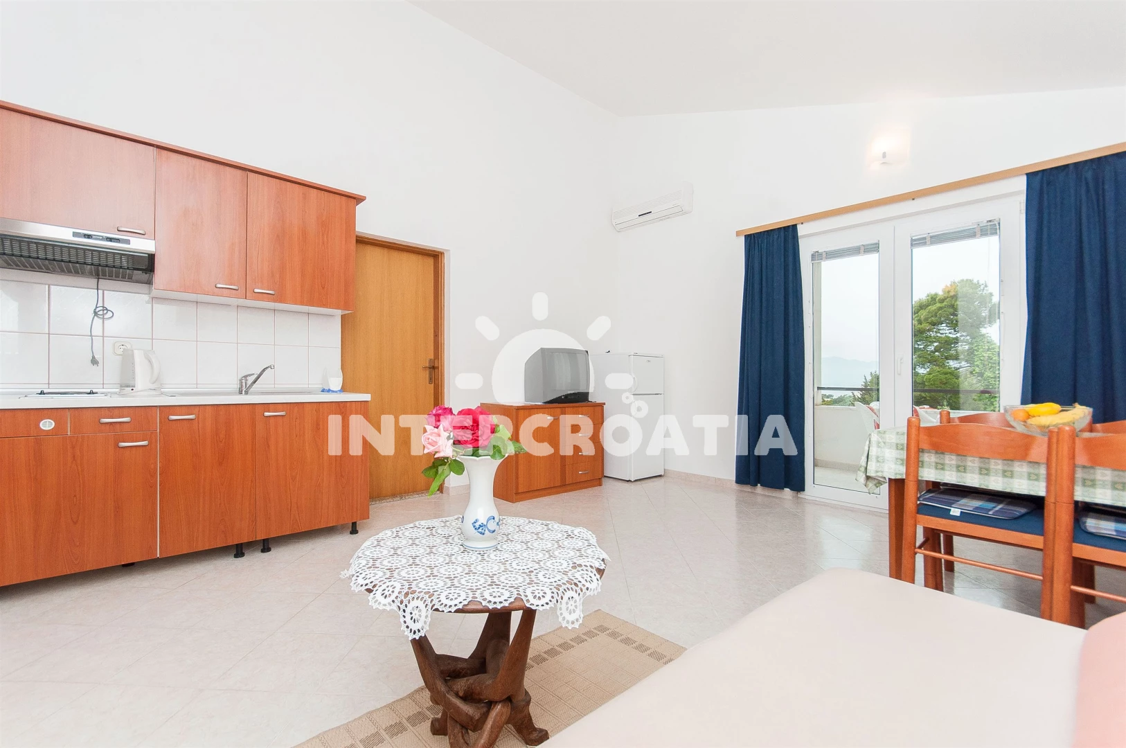Vzdálenosti: Moře 50 m, pláž 200 m (oblázky), restaurace 100 m, bar 100 m, supermarket 100 m, centrum 100 m, kotviště pro čluny 200 m, marina 200 m, potápění 200 m, veřejná doprava 300 m, směnárna 800 m, diskotéka 4 km, muzeum 4 km, lékárna 4 km, ambulance 4 km, čerpací stanice 4 km, tenisové kurty 4 km, mini golf 4 km, banka 4 km, pošta 4 km, trajekt (Makarska) 4 km, letiště (Split) 70 km,