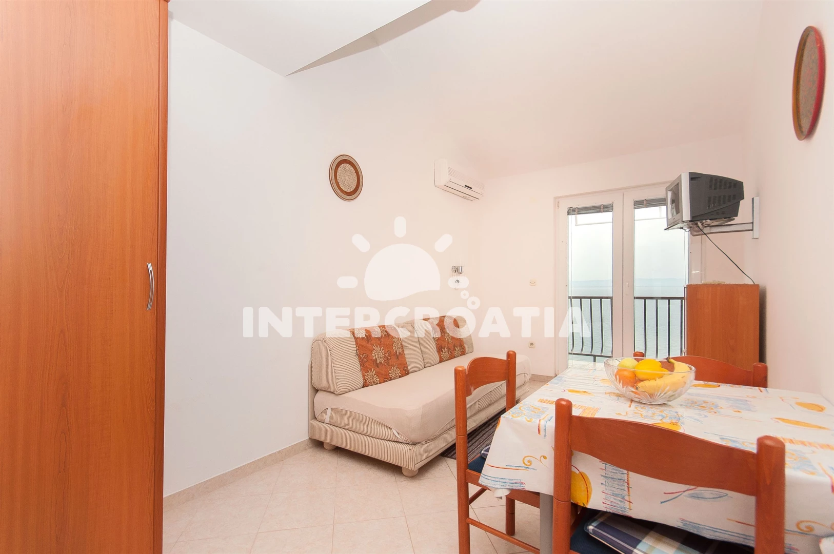 Apartmán (35 m2) s balkonem, a výhledem na moře. Nachází se ve 2. patře objektu. Apartmán má 1 ložnici a je vhodný pro až 3 osoby. Kuchyňská linka je vybavena varnou deskou, kávovarem, nádobím, lednicí, mrazákem. V obývací místnosti je rozložitelná pohovka (extra lůžko pro 1 osobu). K dispozici televize se satelitním programem, žehlička. Ložnice s dvoulůžkem. Koupelna se sprchovým koutem, umyvadlem, fénem a WC. Hostům je k dispozici parkování u objektu zdarma.