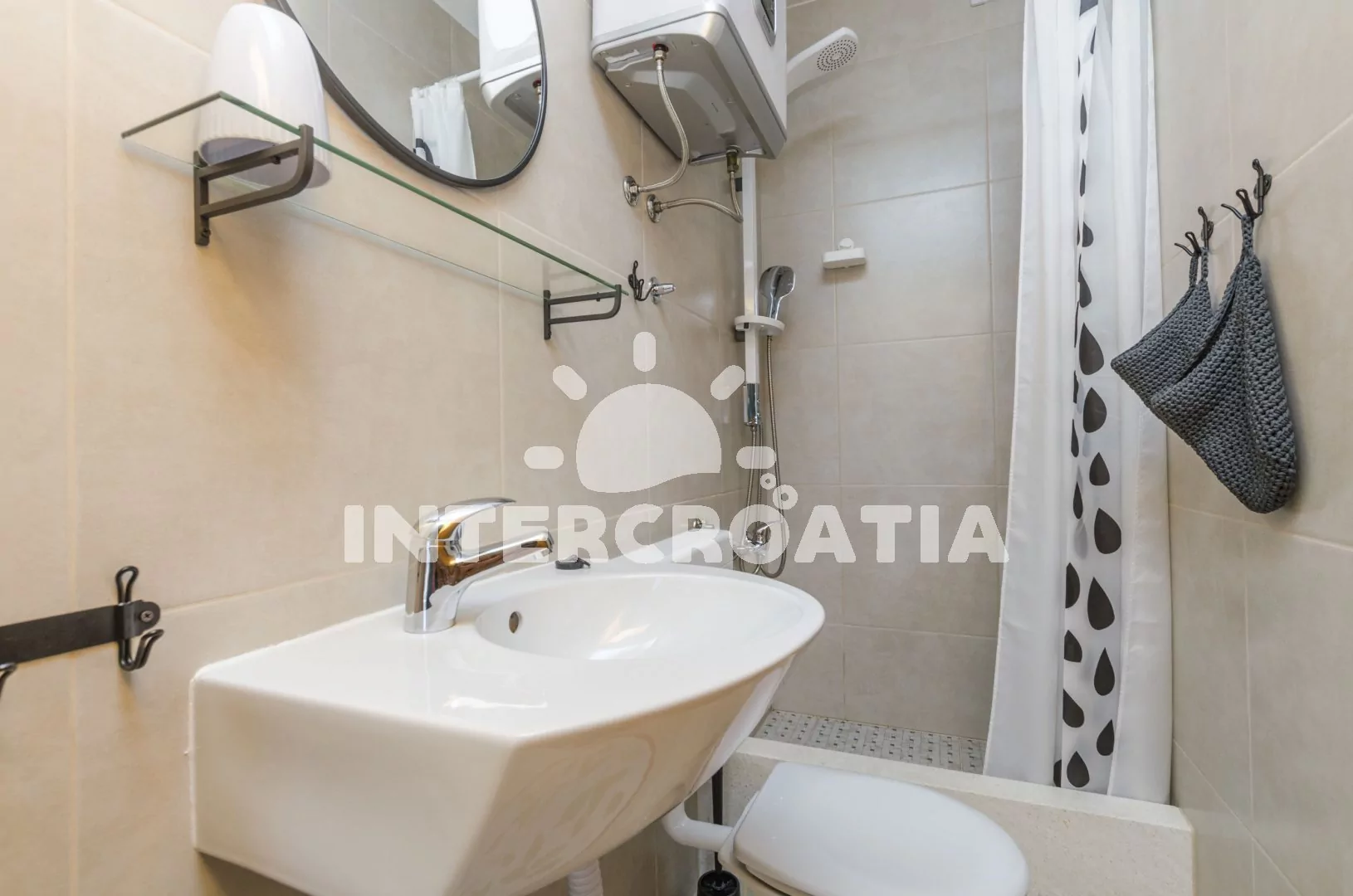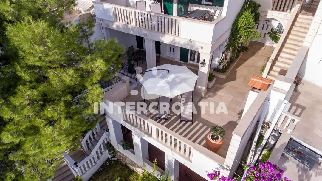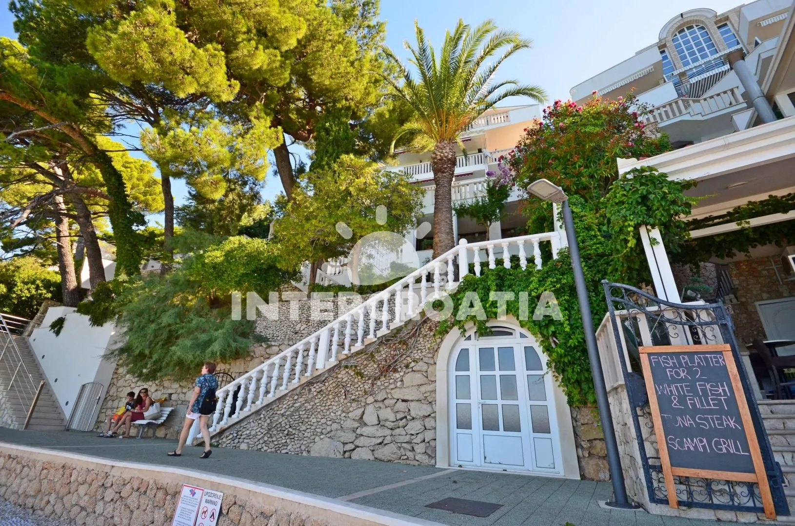 Vzdálenosti: Moře 10 m, pláž (písčitá, oblázková, skalnatá) 20 m, centrum 50 m, market 100 m, pošta 200 m, lékárna 150 m, nemocnice 100 m, restaurace 20 m, směnárna 400 m, banka 200 m, přístav 50 m, kotviště pro čluny 50 m, půjčovna kol 100 m, půjčovna motorových člunů 50 m, bar 30 m, čerpací stanice 15 km, trajekt (Split), letiště (Split).