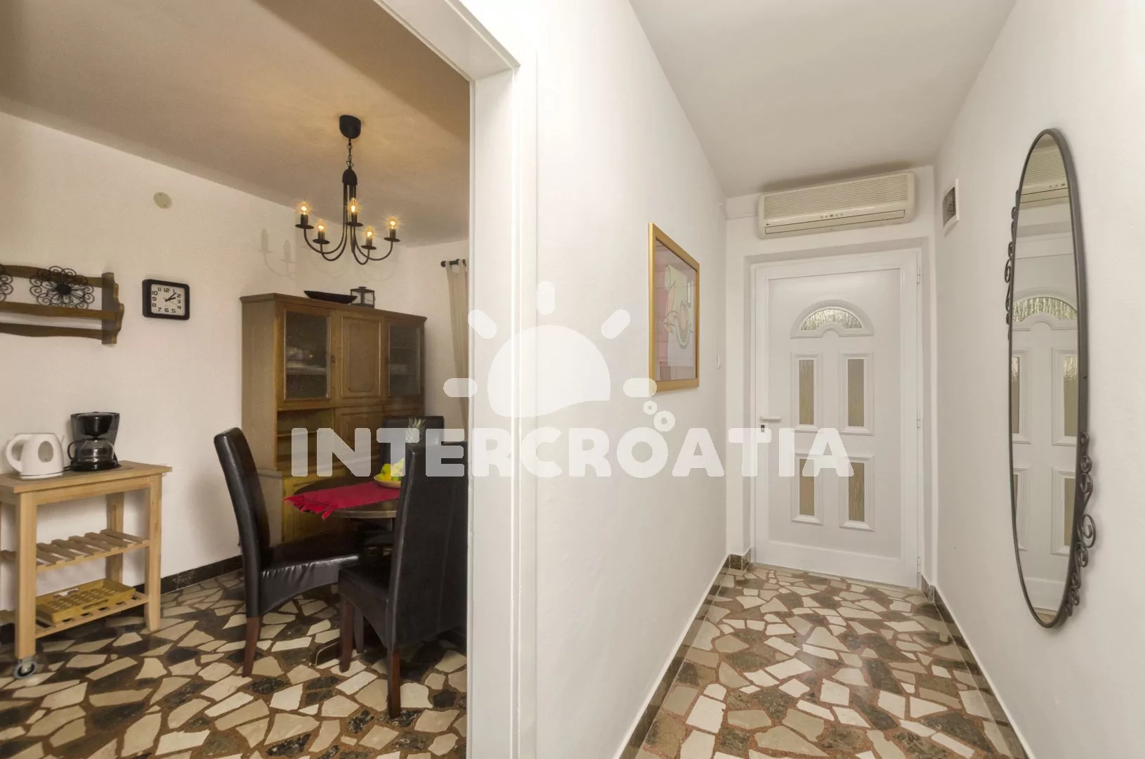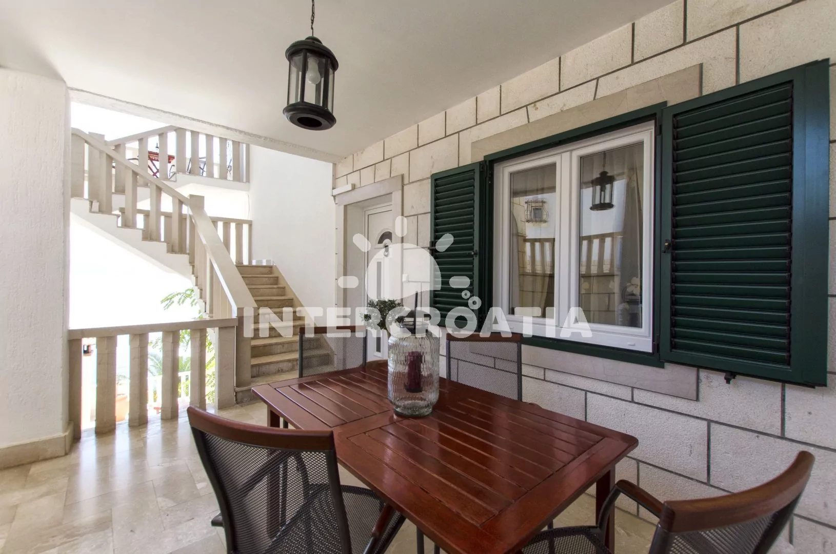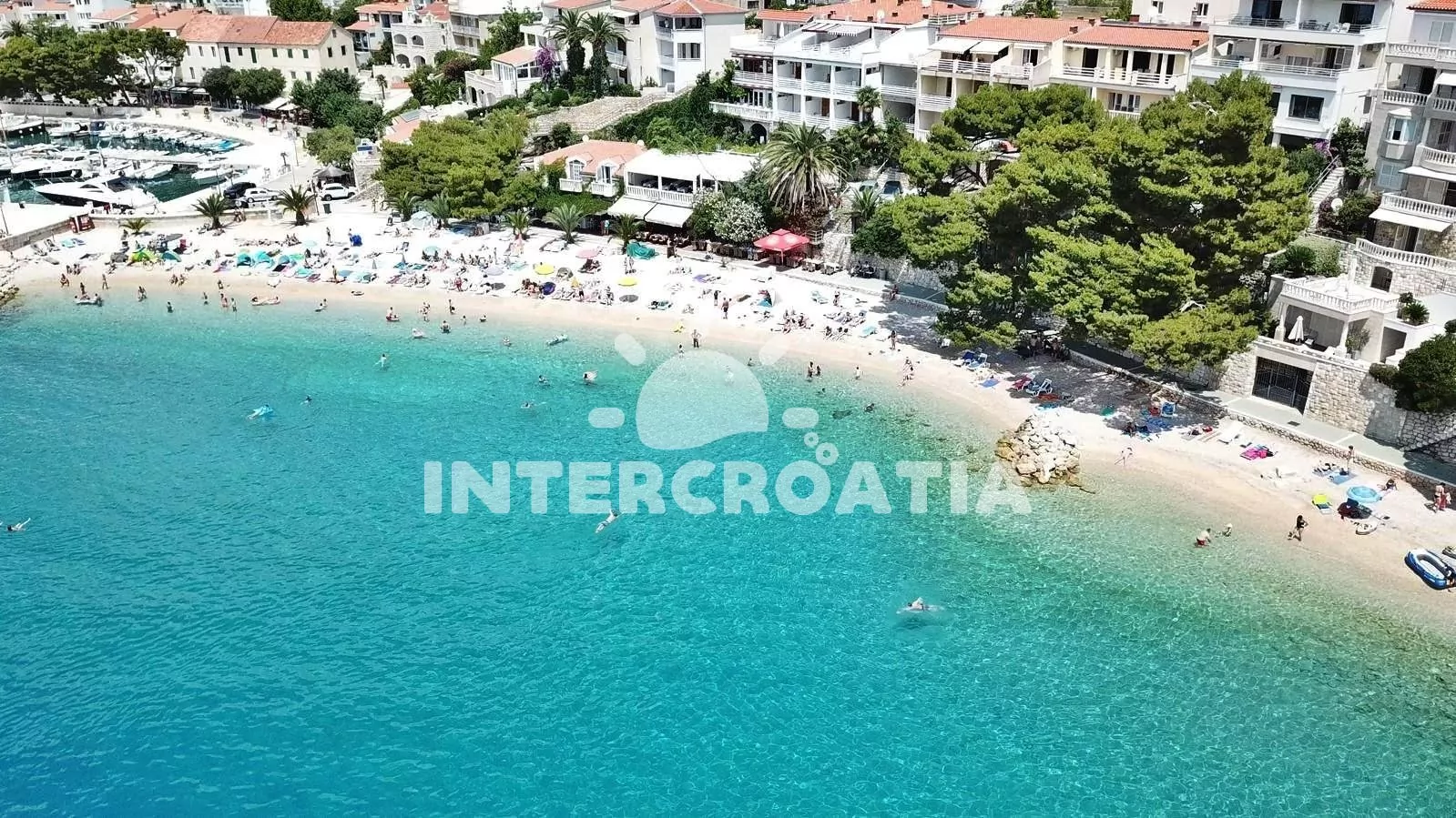 Vzdálenosti: Moře 10 m, pláž (písčitá, oblázková, skalnatá) 20 m, centrum 50 m, market 100 m, pošta 200 m, lékárna 150 m, nemocnice 100 m, restaurace 20 m, směnárna 400 m, banka 200 m, přístav 50 m, kotviště pro čluny 50 m, půjčovna kol 100 m, půjčovna motorových člunů 50 m, bar 30 m, čerpací stanice 15 km, trajekt (Split), letiště (Split).