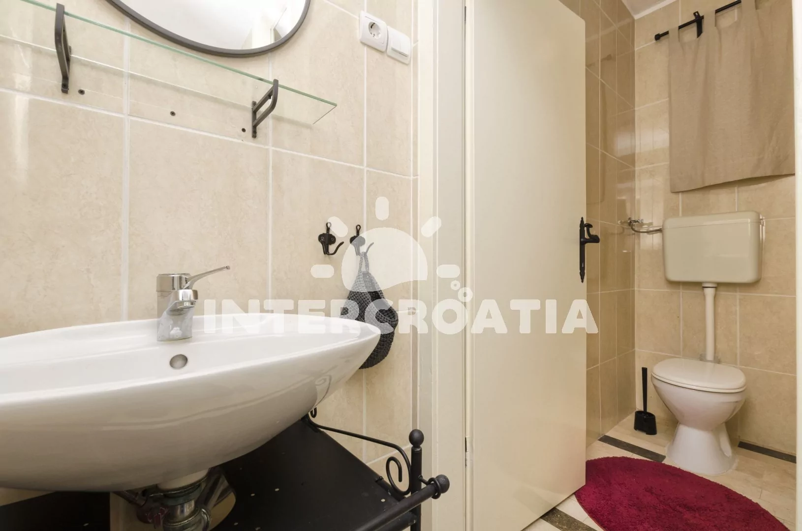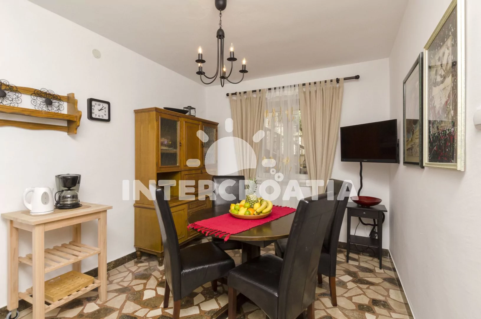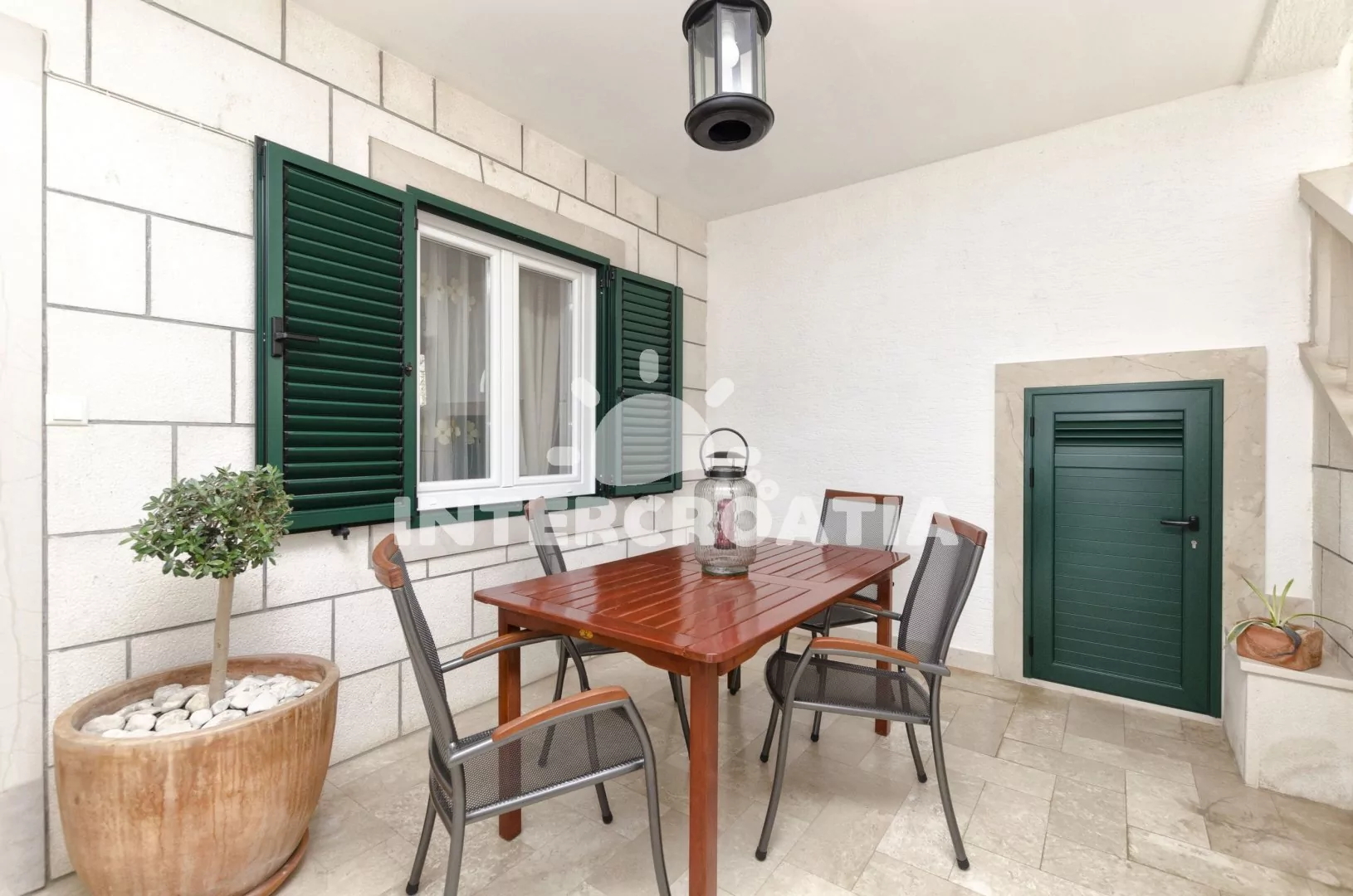 Vzdálenosti: Moře 10 m, pláž (písčitá, oblázková, skalnatá) 20 m, centrum 50 m, market 100 m, pošta 200 m, lékárna 150 m, nemocnice 100 m, restaurace 20 m, směnárna 400 m, banka 200 m, přístav 50 m, kotviště pro čluny 50 m, půjčovna kol 100 m, půjčovna motorových člunů 50 m, bar 30 m, čerpací stanice 15 km, trajekt (Split), letiště (Split).