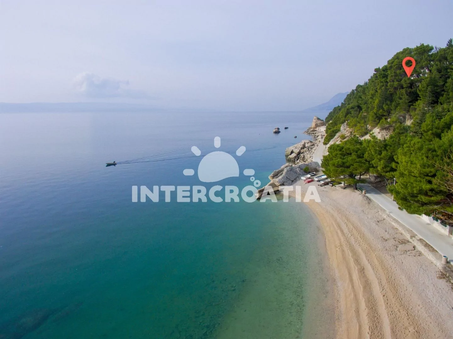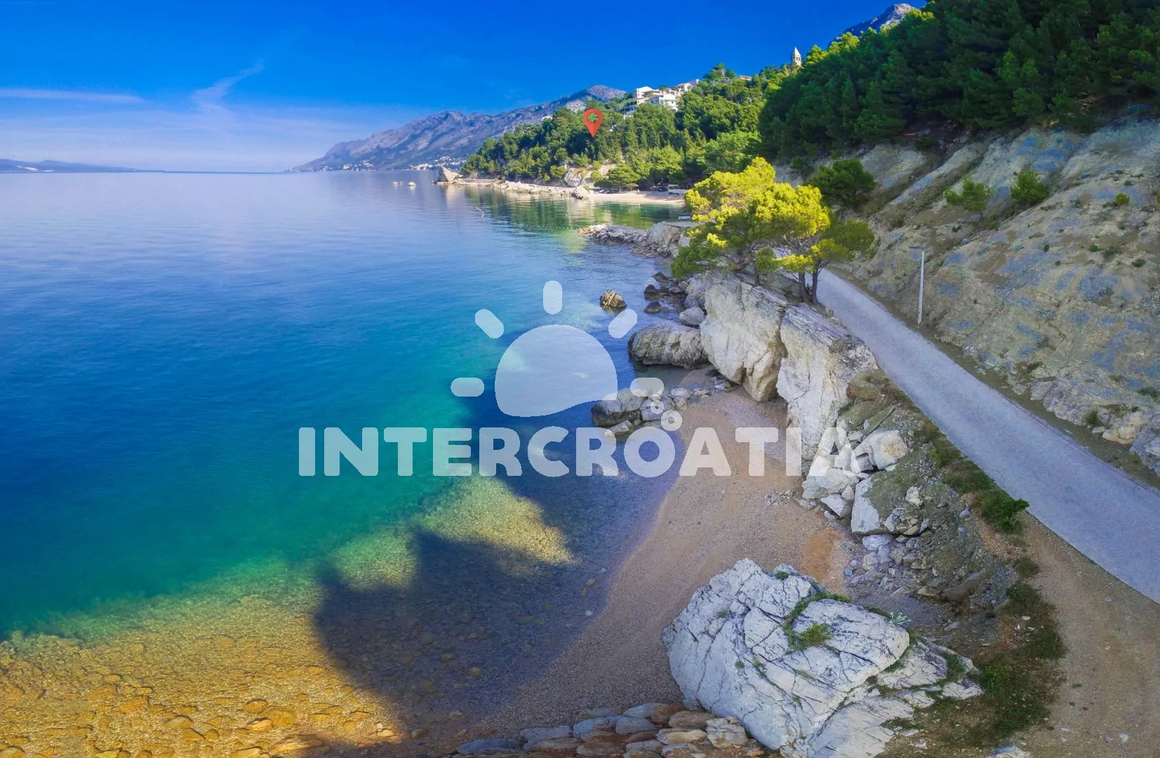Ve Střední Dalmácie, na Makarské riviéře, 5 km severozápadním směrem od městečka Baška Voda a 24 km jižně od městečka a přístavu Omiš. Apartmán se nachází 30 m od moře.