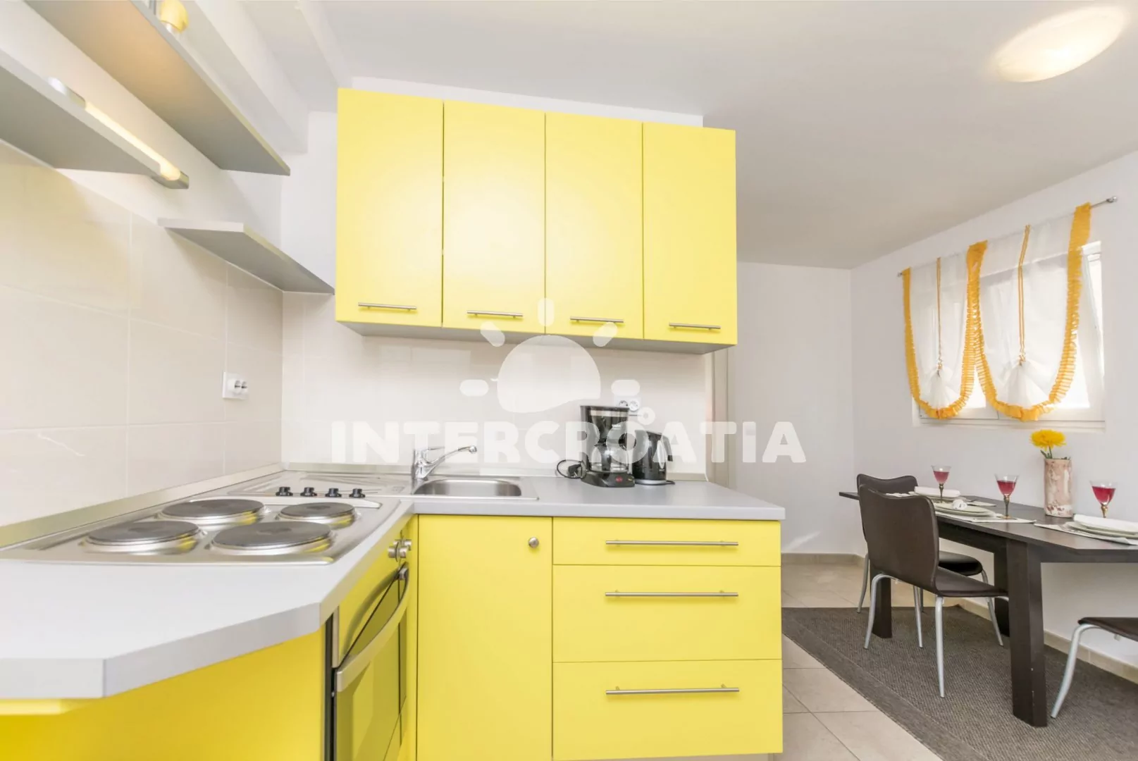 Apartmán s moderním zařízením pro 4 osoby se nachází v prvním patře domu. Kuchyň je vybavena kuchyňskou linkou, nádobím, sporákem, horkovzdušnou troubou, kávovarem, rychlovarnou konvicí, chladničkou…