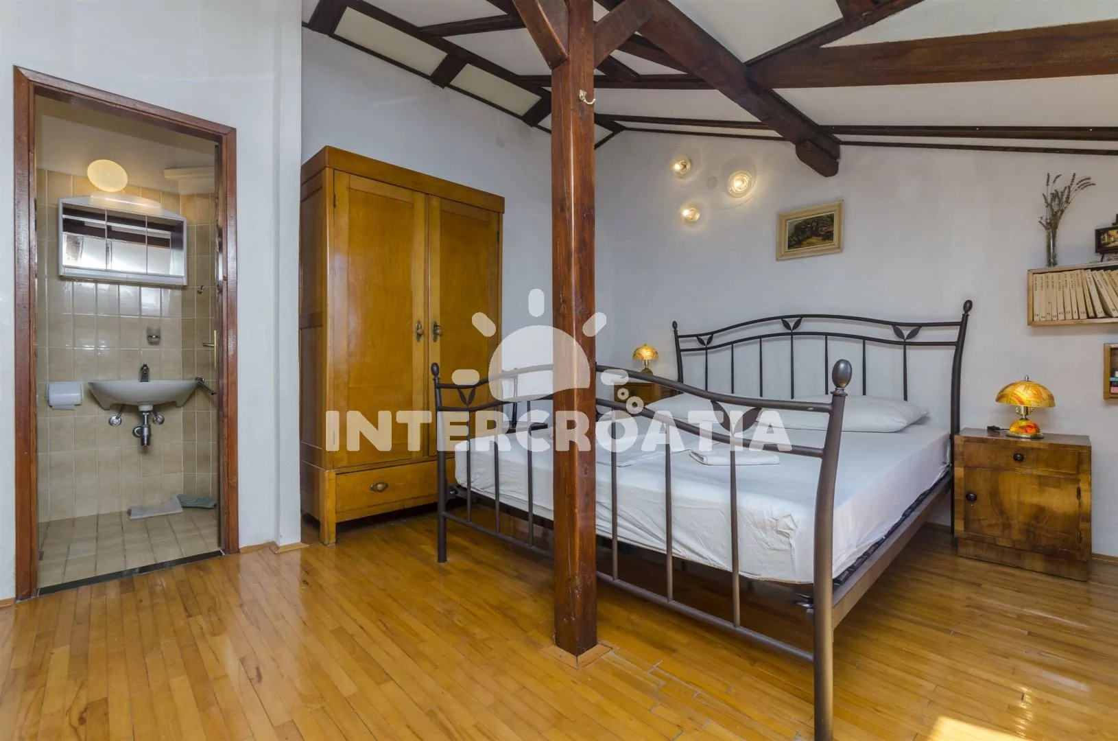 Dvoupokojový apartmán s výhledem na moře, se nachází v 2. patře a je vhodný pro 2 až 3 osoby. Obývací místnost je spojena s kuchyňským koutem. Kuchyňská linka se sporákem, troubou, rychlovarnou konvicí, kávovarem, nádobím a lednicí s mrazákem. Obývací místnost s jídelním stolem pro 4 osoby, televizí se satelitním programem, DVD přehrávačem, klimatizací a rozložitelným lůžkem (extra lůžko pro 1 osobu). Ložnice je vybavena jedním dvoulůžkem. Koupelna se sprchovým koutem, umyvadlem, fénem a wc. Hostům je k dispozici parkování u objektu zdarma.