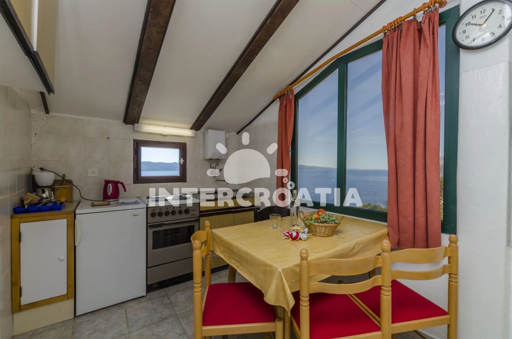 Dvoupokojový apartmán s výhledem na moře, se nachází v 2. patře a je vhodný pro 2 až 3 osoby. Obývací místnost je spojena s kuchyňským koutem. Kuchyňská linka se sporákem, troubou, rychlovarnou…