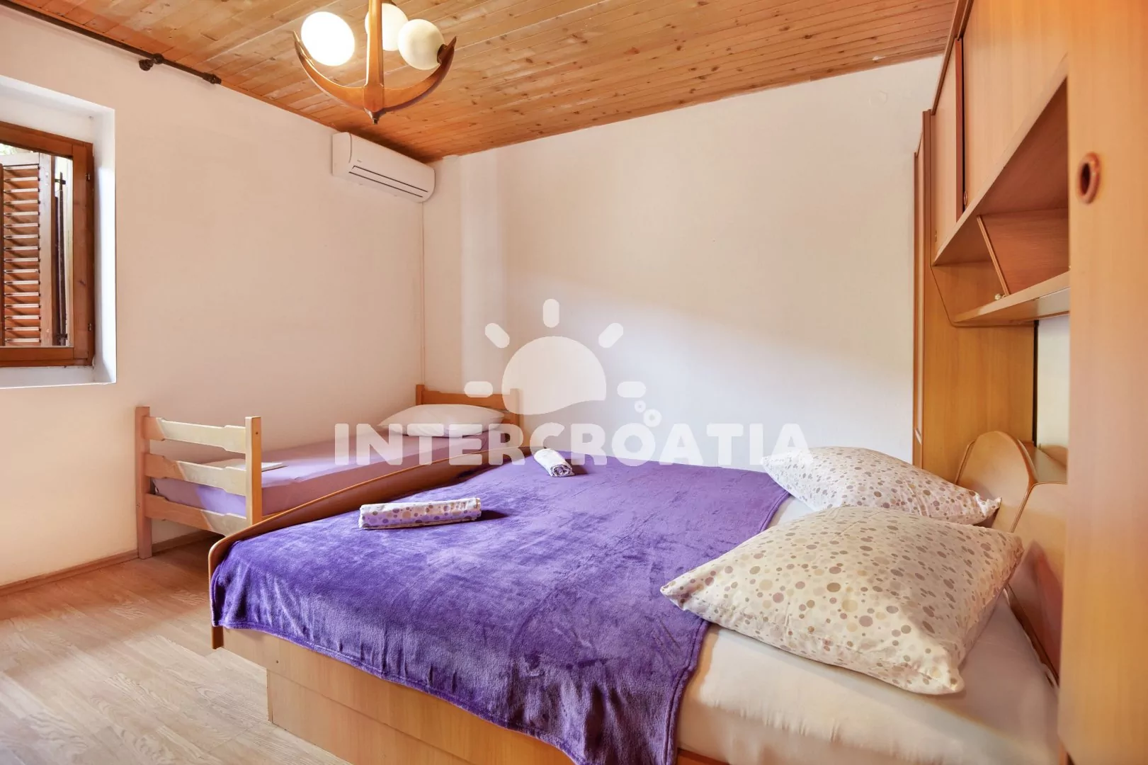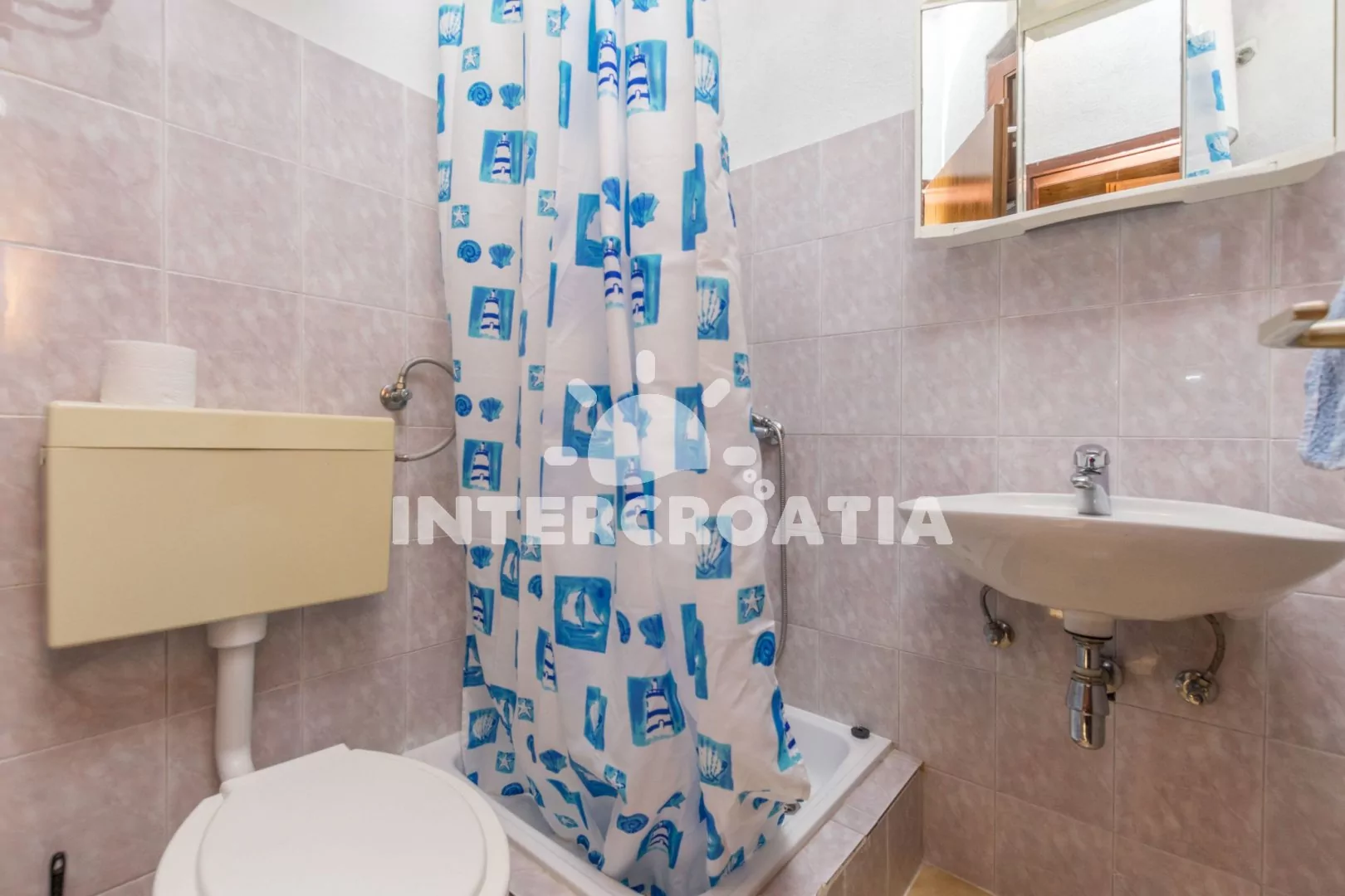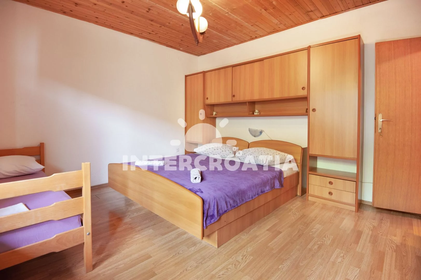Apartmán pro 3 osoby s balkonem a výhledem na moře, se nachází v prvním patře domu. Kuchyňská linka s elektrickým dvouplotýnkovým sporákem, digestoří, rychlovarnou konvicí nádobím a lednicí. Ložnice je vybavena jedním dvoulůžkem, jednou přistýlkou a vstupem na balkon. Koupelna se sprchovým koutem umyvadlem a wc. K dispozici venkovní posezení na balkoně.
